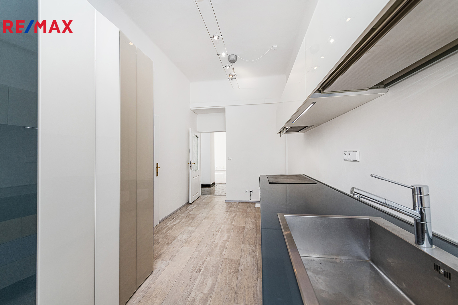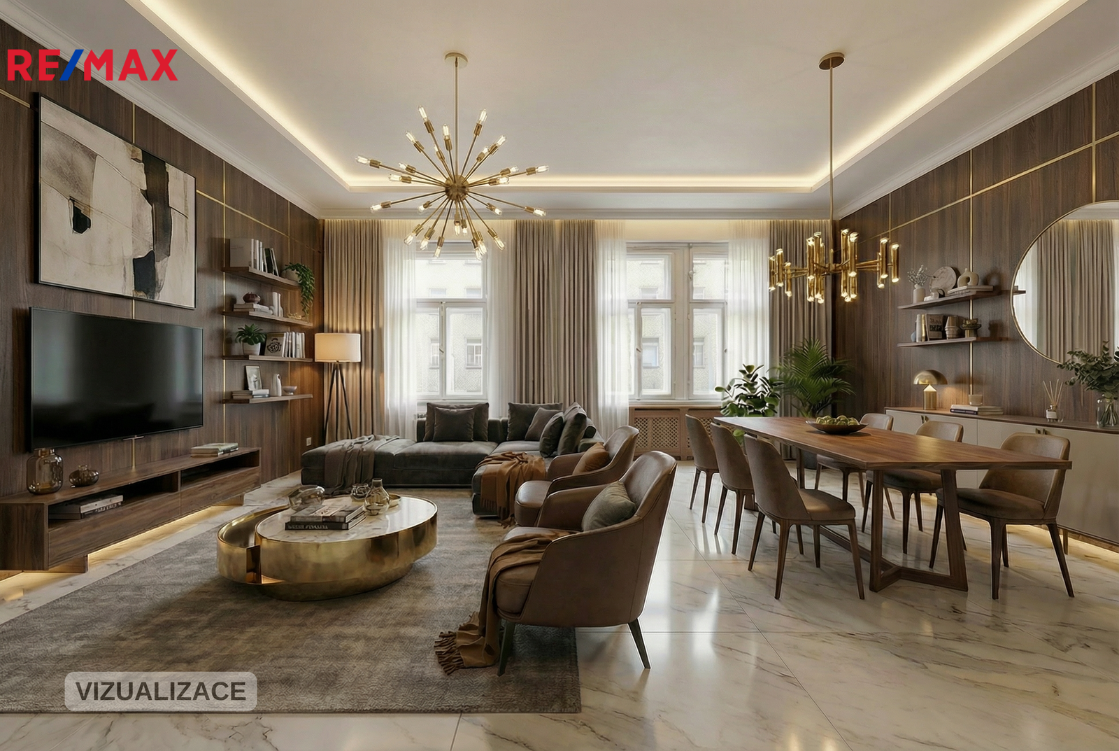 Nabízíme k prodeji prostornou bytovou jednotku o dispozici 3+1 a podlahové ploše cca 110 m², situovanou ve 3. nadzemním podlaží cihlového domu s výtahem v ulici Malá Štěpánská, Praha 2 – Nové Město.