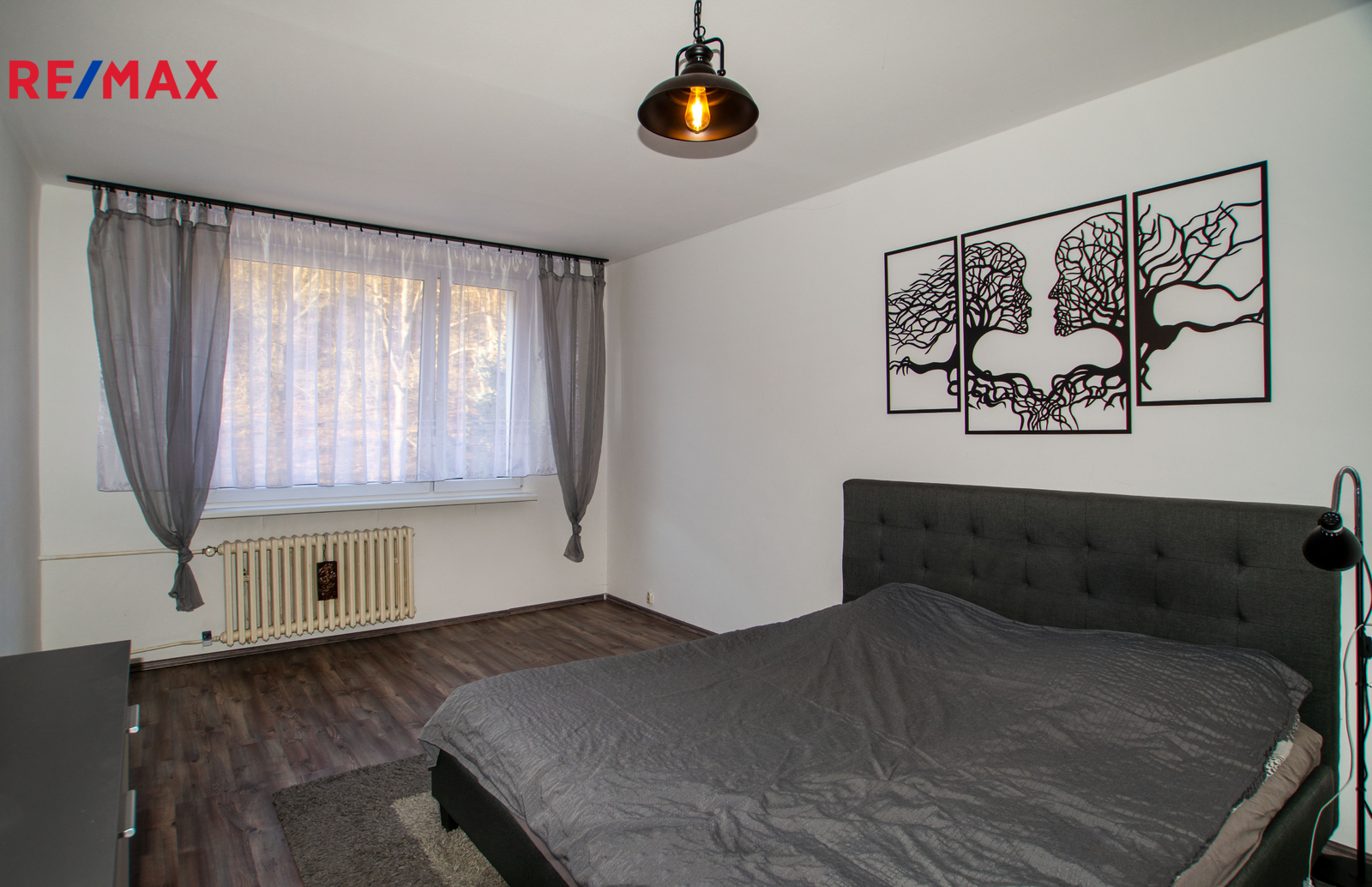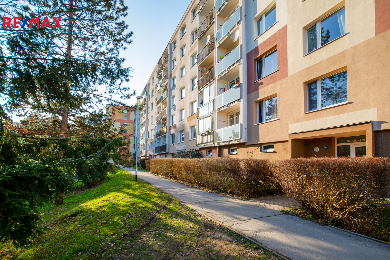 Byt se dvěma samostatnými pokoji a jedním balkonem se nachází ve čtvrtém patře panelového domu v ulici Na Pěšině v Děčíně - Bynově.