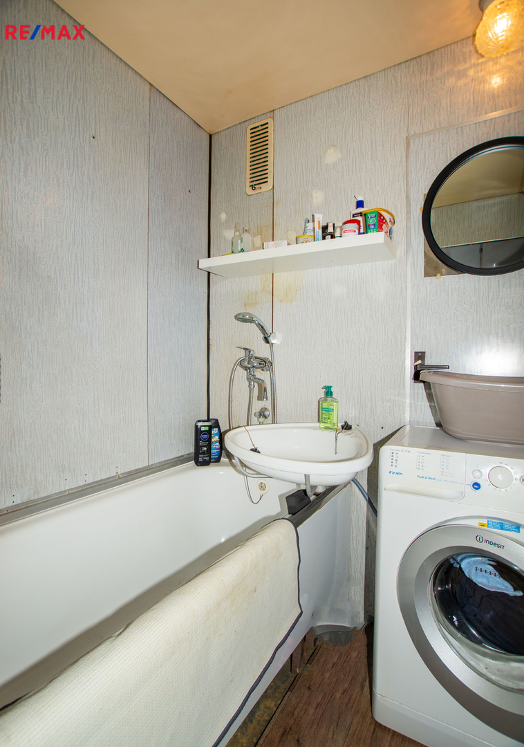 Byt má samostatnou koupelnu, WC se vstupem z předsíně, komoru a již zmíněný balkon. Okna v bytě jsou již plastová.
