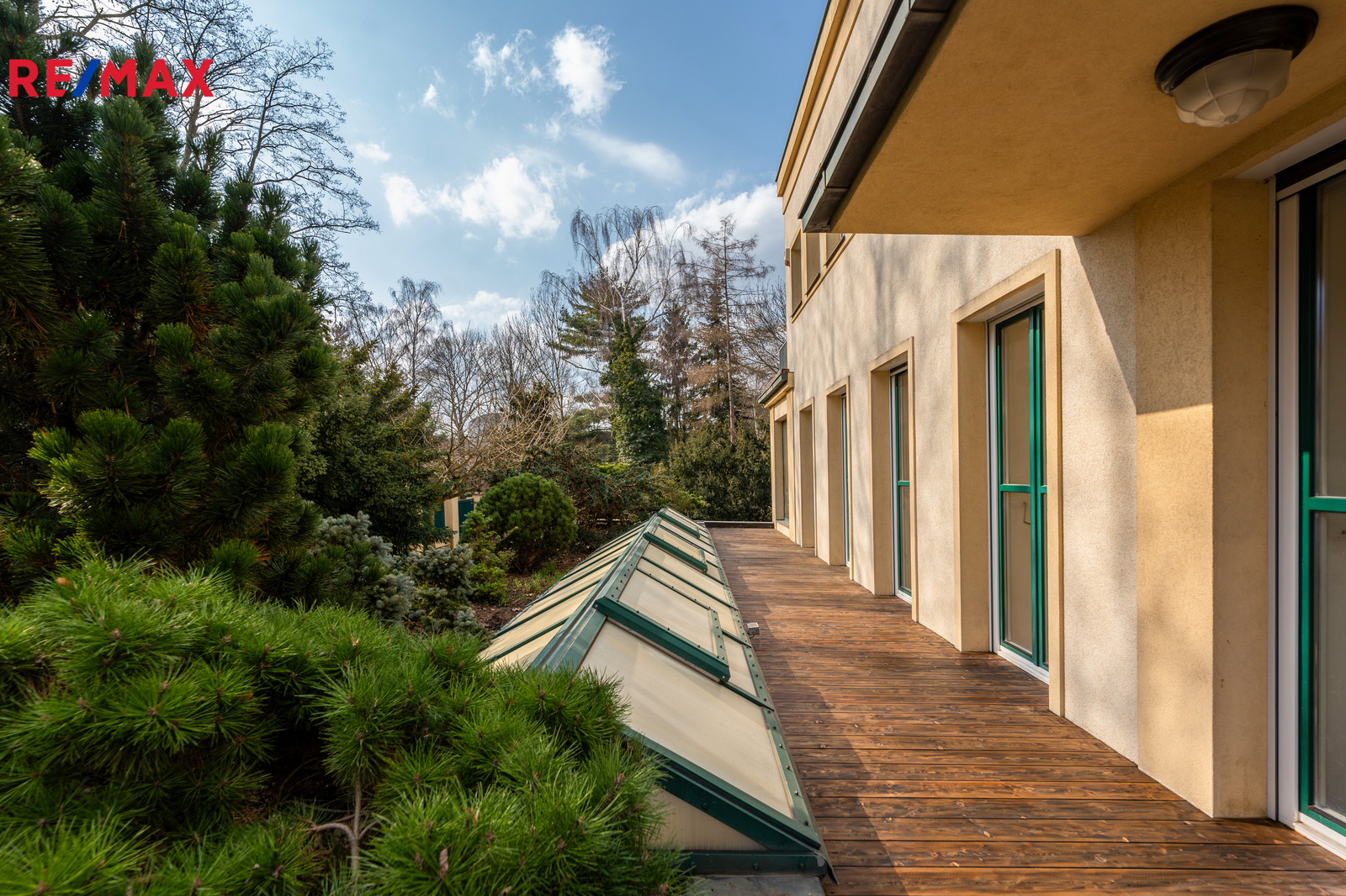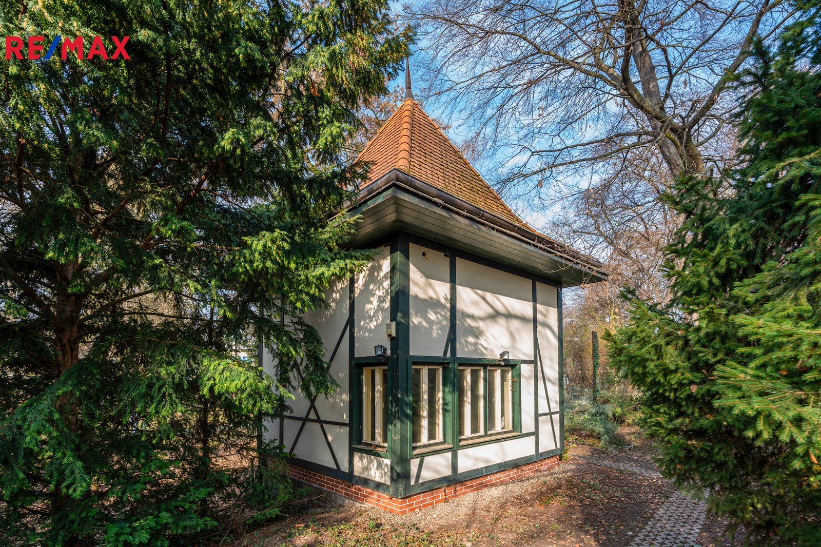 Součástí pozemku je rovněž původní zděný altán z období výstavby domu, dříve využívaný jako galerie, dále samostatná zděná stavba se srubovým obkladem vhodná jako zázemí pro správce či sklad na zahradní nářadí. Zahrada v parkovém stylu, s vzrostlými stromy a dvěma funkčními studnami, poskytuje vysokou míru soukromí a možnost dalšího využití. Nachází se zde mimo jiné i liliovník tulipánokvětý, který je v našich podmínkách raritou.