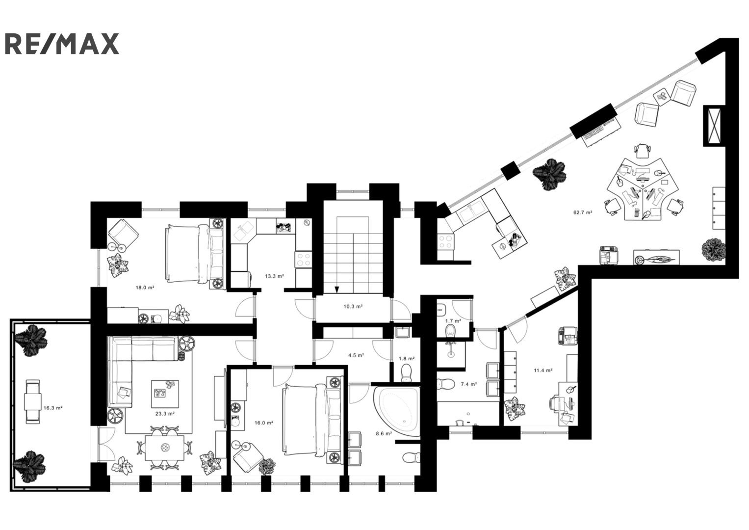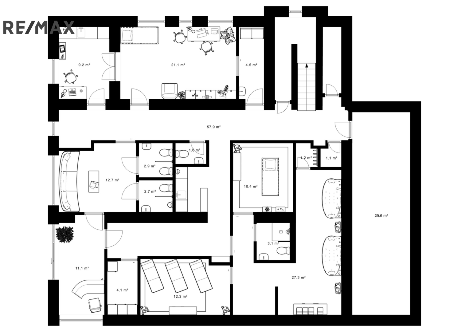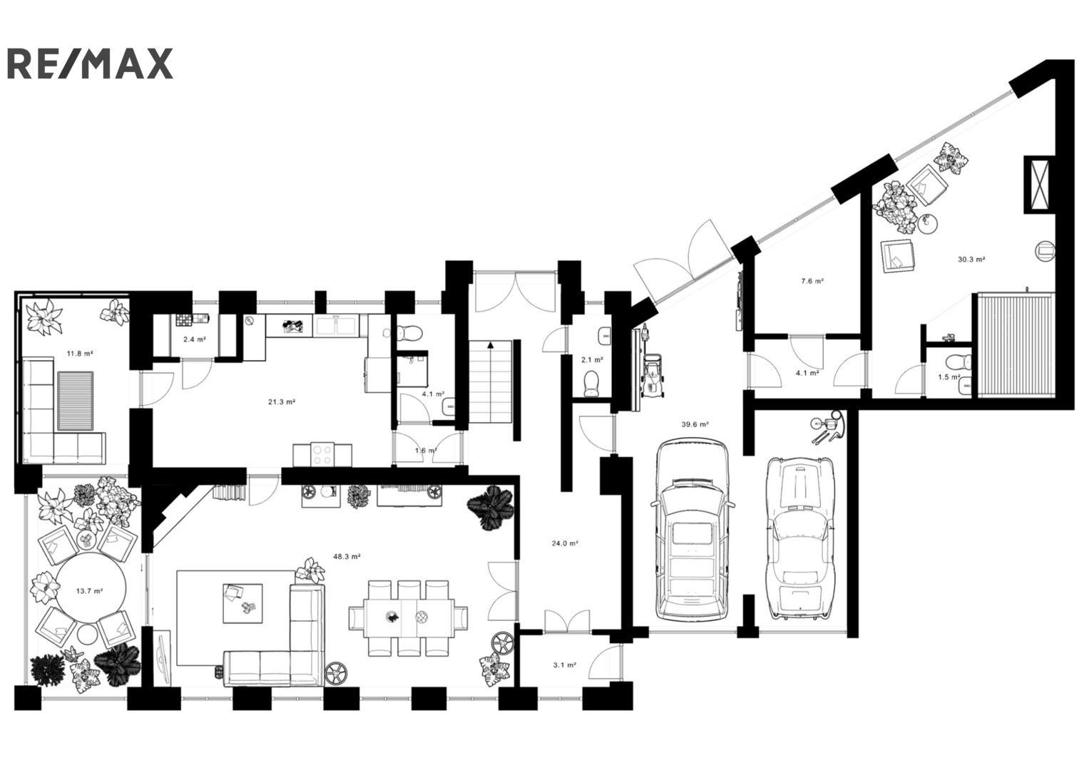 Celková užitná plocha staveb na pozemku o velikosti 2 791 m² přesahuje 700 m². V domě jsou aktuálně zkolaudovány čtyři bytové jednotky a nebytový prostor, což umožňuje samostatné i vícegenerační bydlení, rovněž kombinaci bydlení s podnikáním.