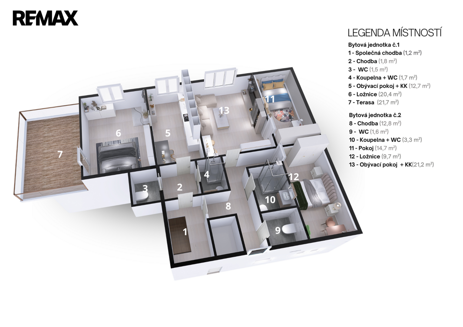 Dům disponuje třemi samostatnými bytovými jednotkami, což přináší široké možnosti využití. Je vhodný jak pro vícegenerační bydlení, tak i pro kombinaci vlastního bydlení s pronájmem jednotlivých bytů.