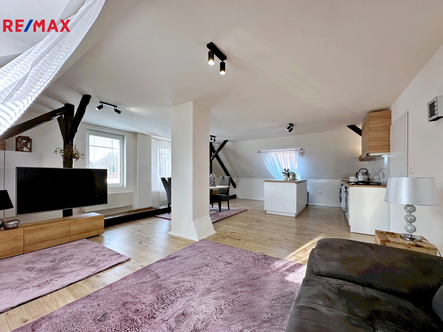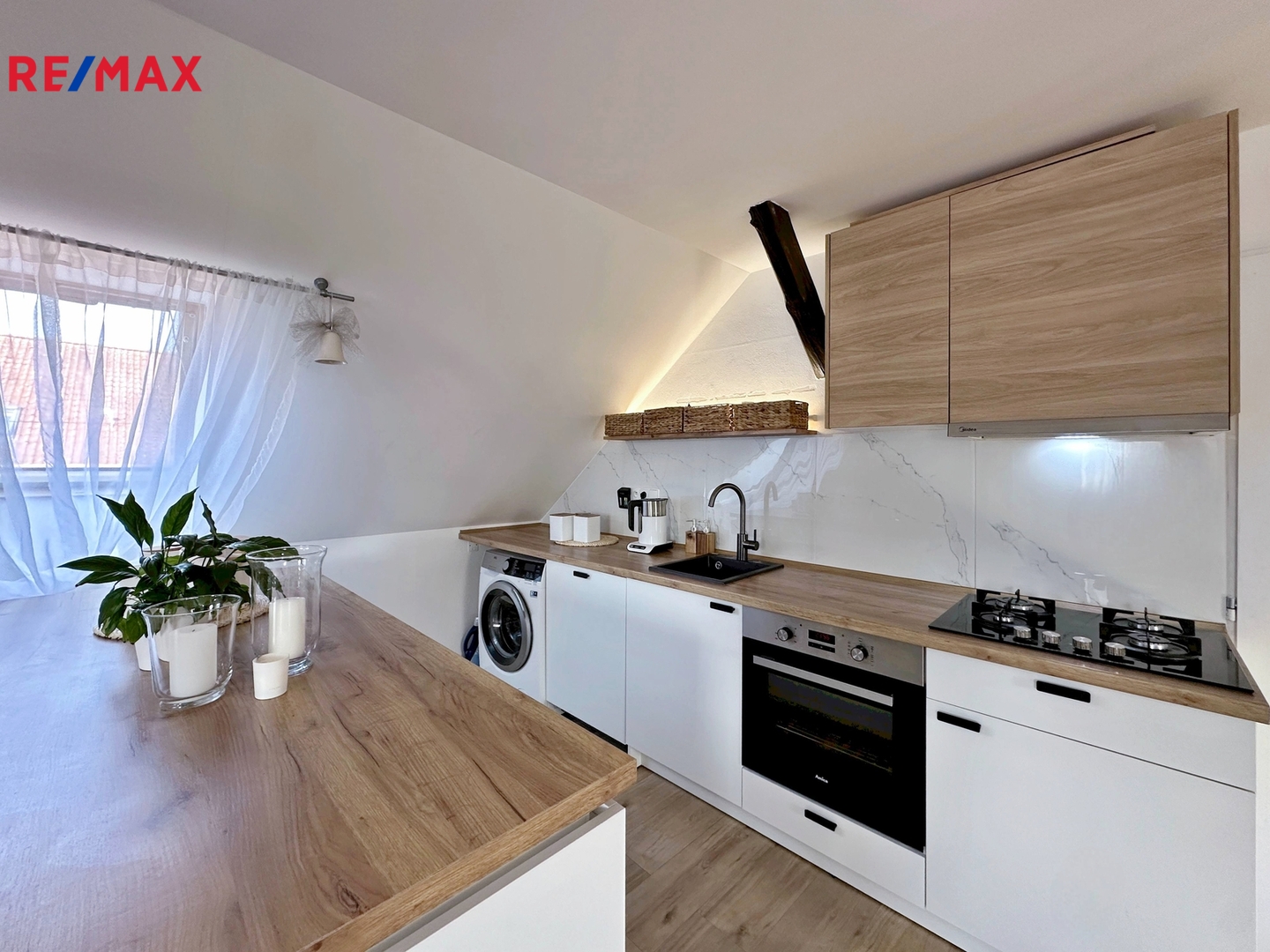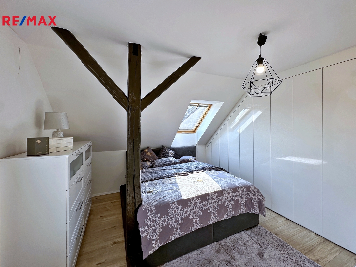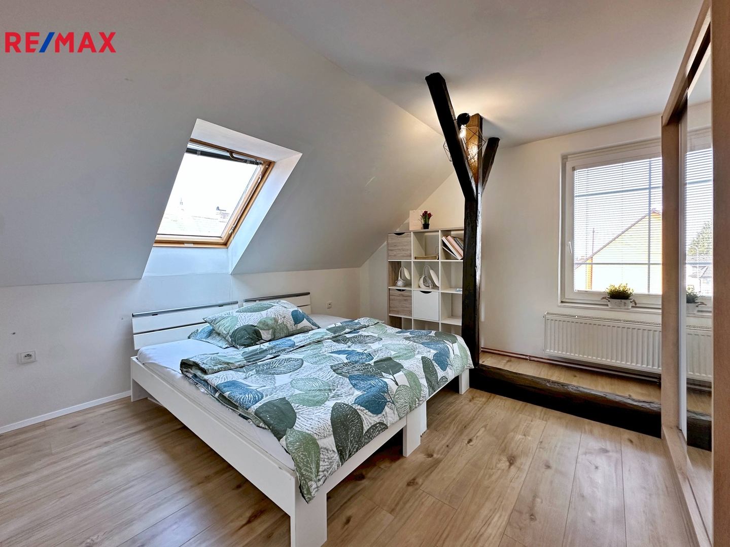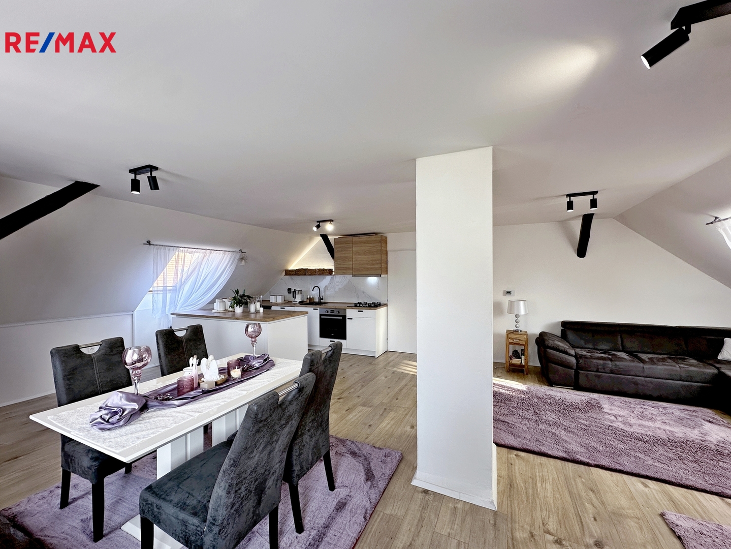 Nabízíme k prodeji jedinečný podkrovní byt v rodinném domě o třech bytových jednotkách. Byt má dispozici 3+kk a výměru cca 100 m2. Byt vás na první pohled zaujme svou vzdušností a mimořádně světlým interiérem – kombinace střešních a klasických oken orientovaných na všechny světové strany vytváří útulný domov s velmi osobitým charakterem.
