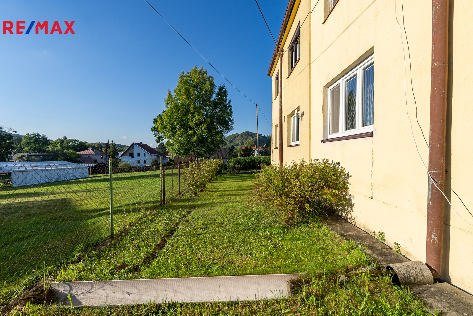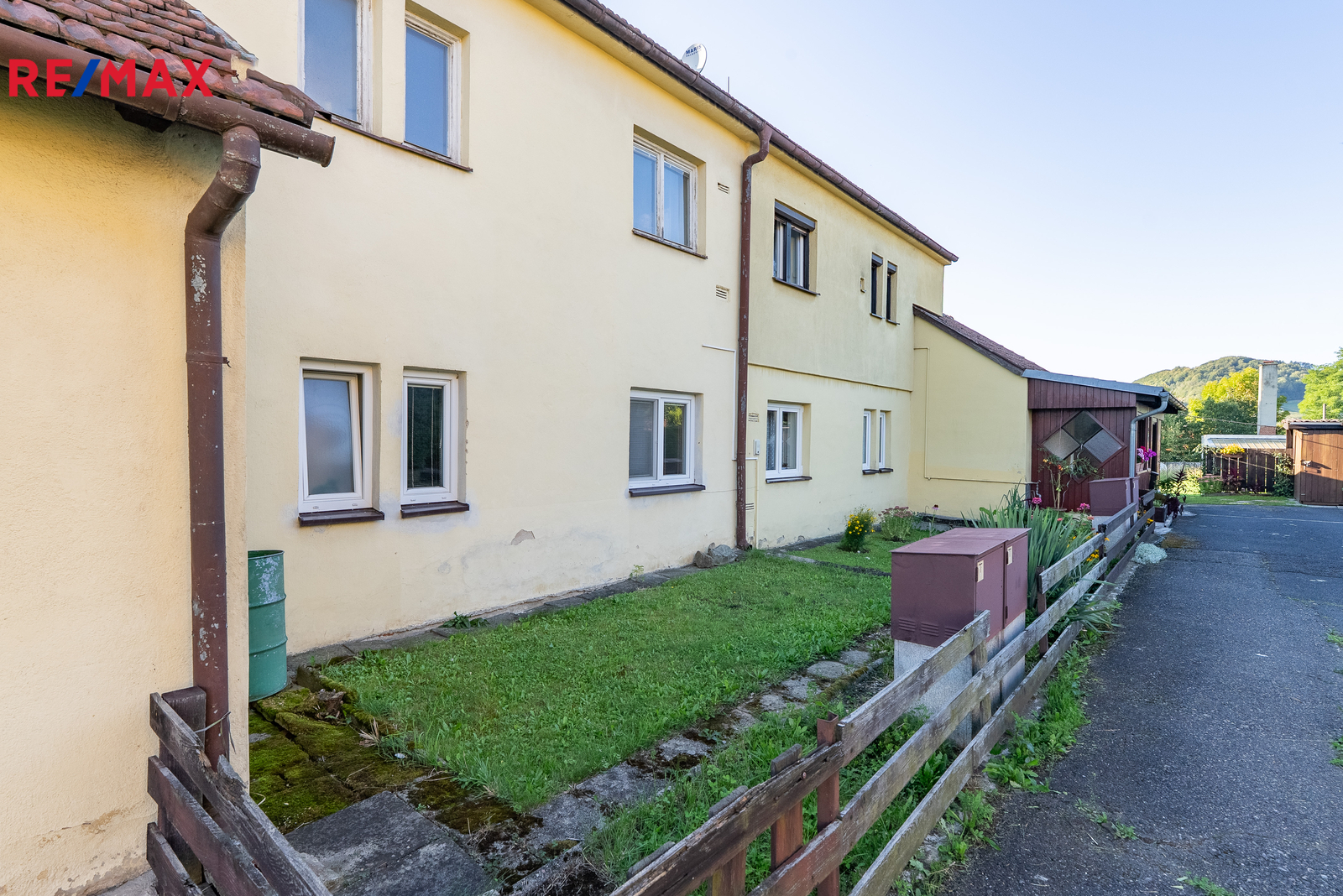 K bytu náleží také spoluvlastnický podíl na společných částech domu a pozemku. V praxi to znamená, že k bytu patří předzahrádka přímo pod okny a také část zahrady za domem. Tyto plochy jsou již mezi vlastníky rozdělené, takže každý má svůj vlastní kousek zeleně. Přístup k zadní části je potřeba dořešit, nicméně využívání je již ustálené.