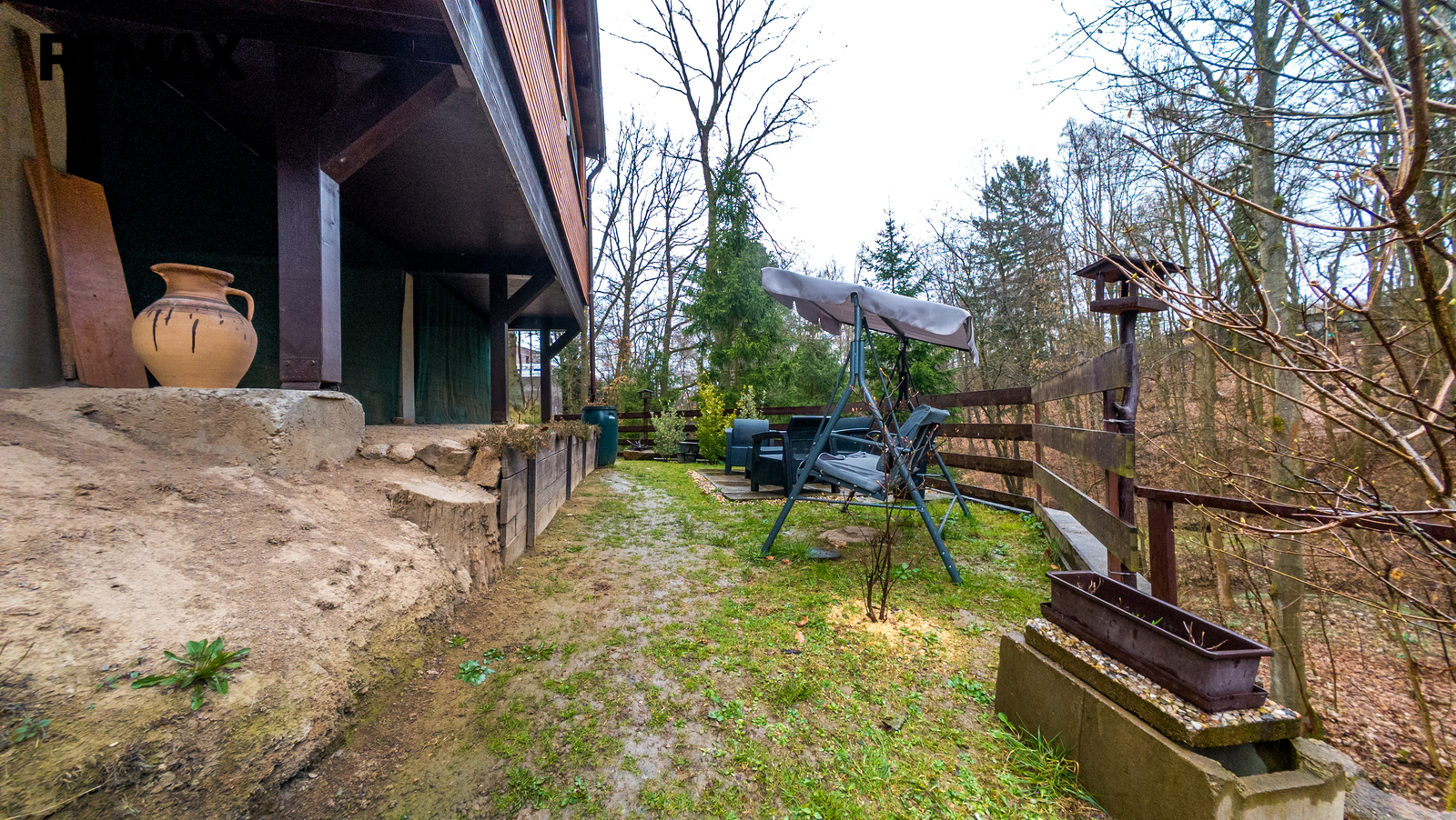 Exkluzivně nabízíme k prodeji velmi hezkou montovanou dvoupodlažní chatu určenou k celoročnímu komfortnímu bydlení o celkové ploše cca 52 m2 plus sklep. Zastavěná plocha činí 26 m2. Chatu obklopuje pěstěný částečně svažitý pozemek o výměře 327 m2. Nemovitost se nachází v obci Doubravčice, jen 11 km od Říčan, a je situovaná přímo nad romantickým zalesněným údolím Lázného potoka, které zajišťuje dostatek soukromí i příjemnou atmosféru pro odpočinek.