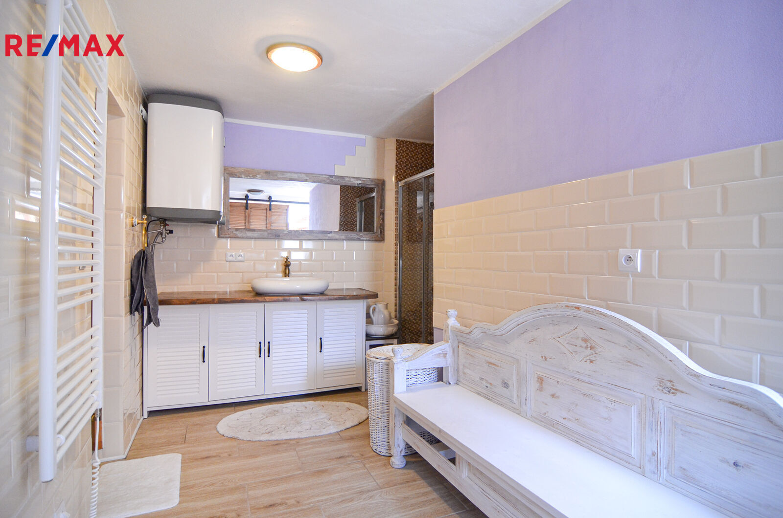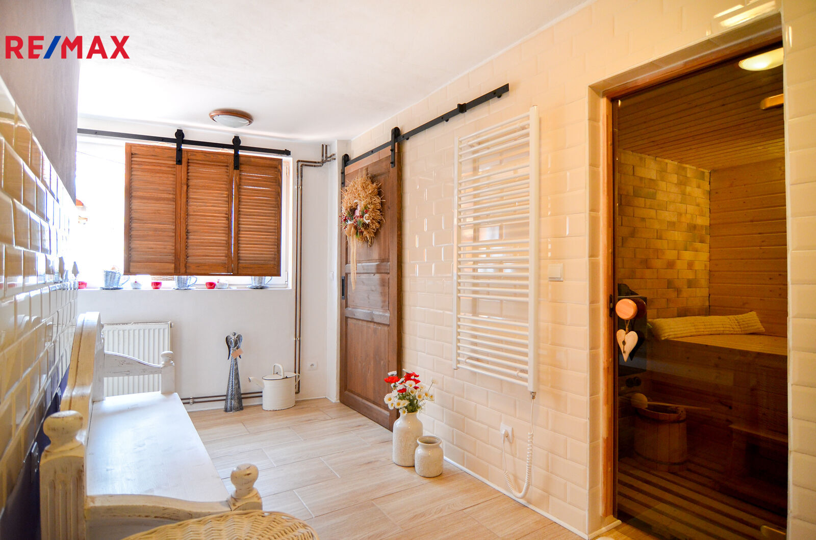 V zadní části (za kuchyní) je koupelna se sprchovým koutem a jako bonus soukromá sauna pro dokonalý relax.