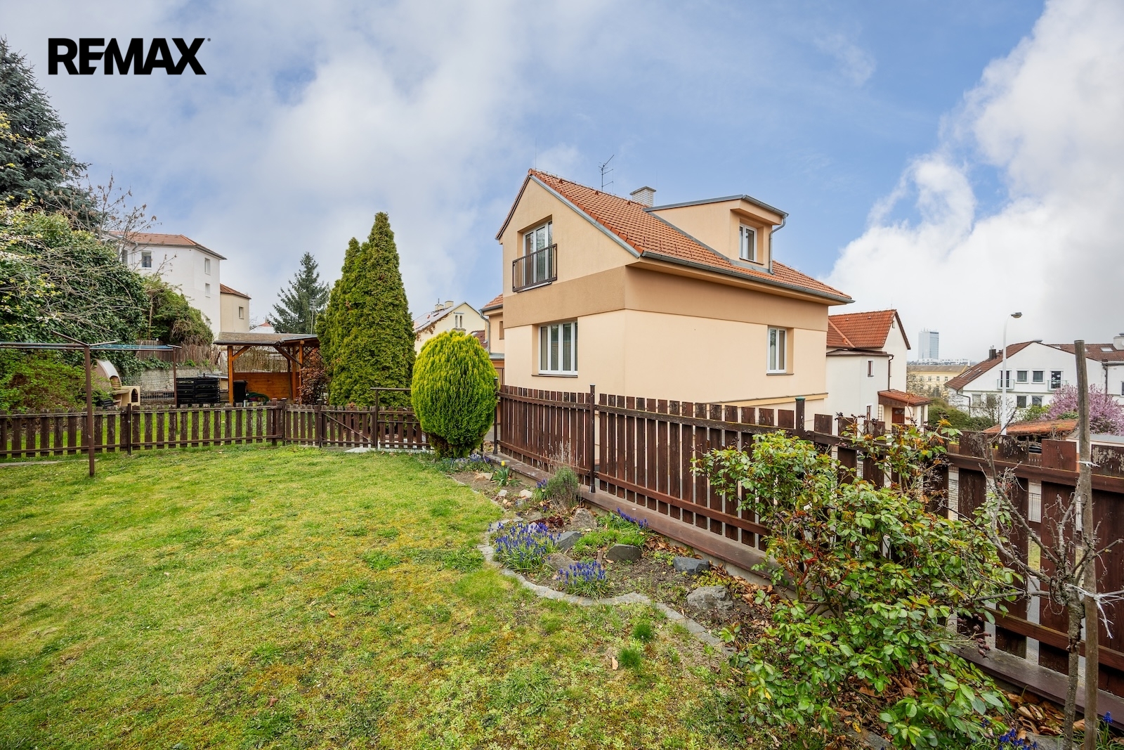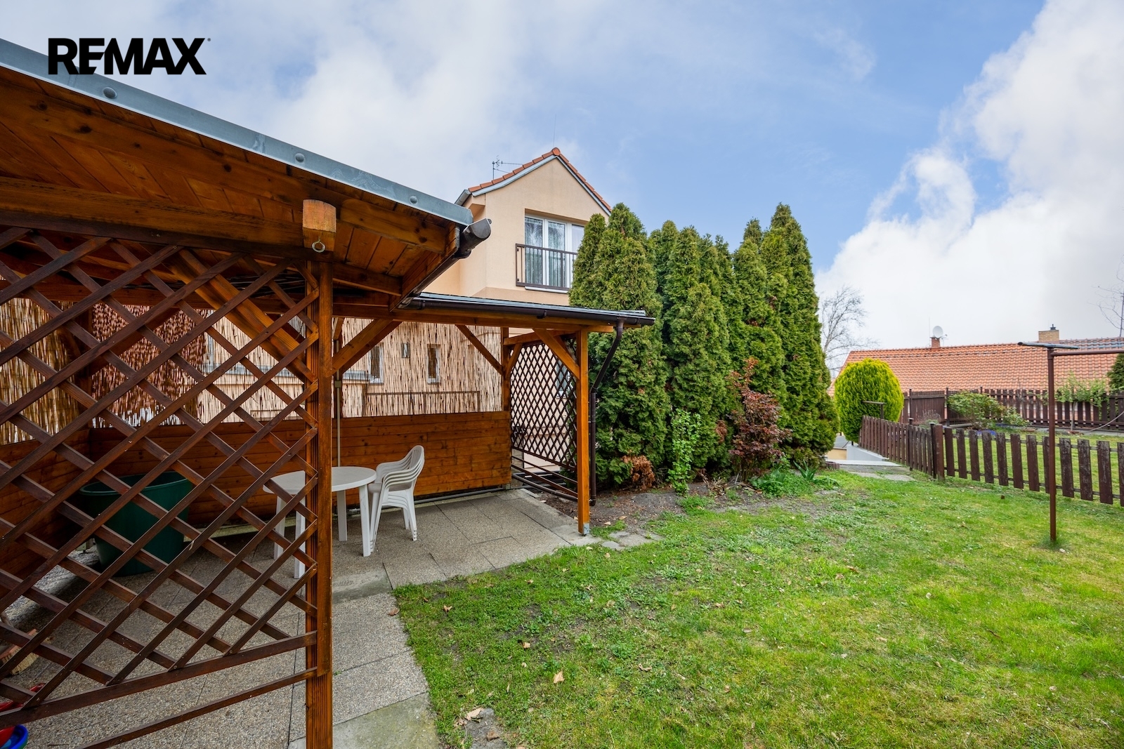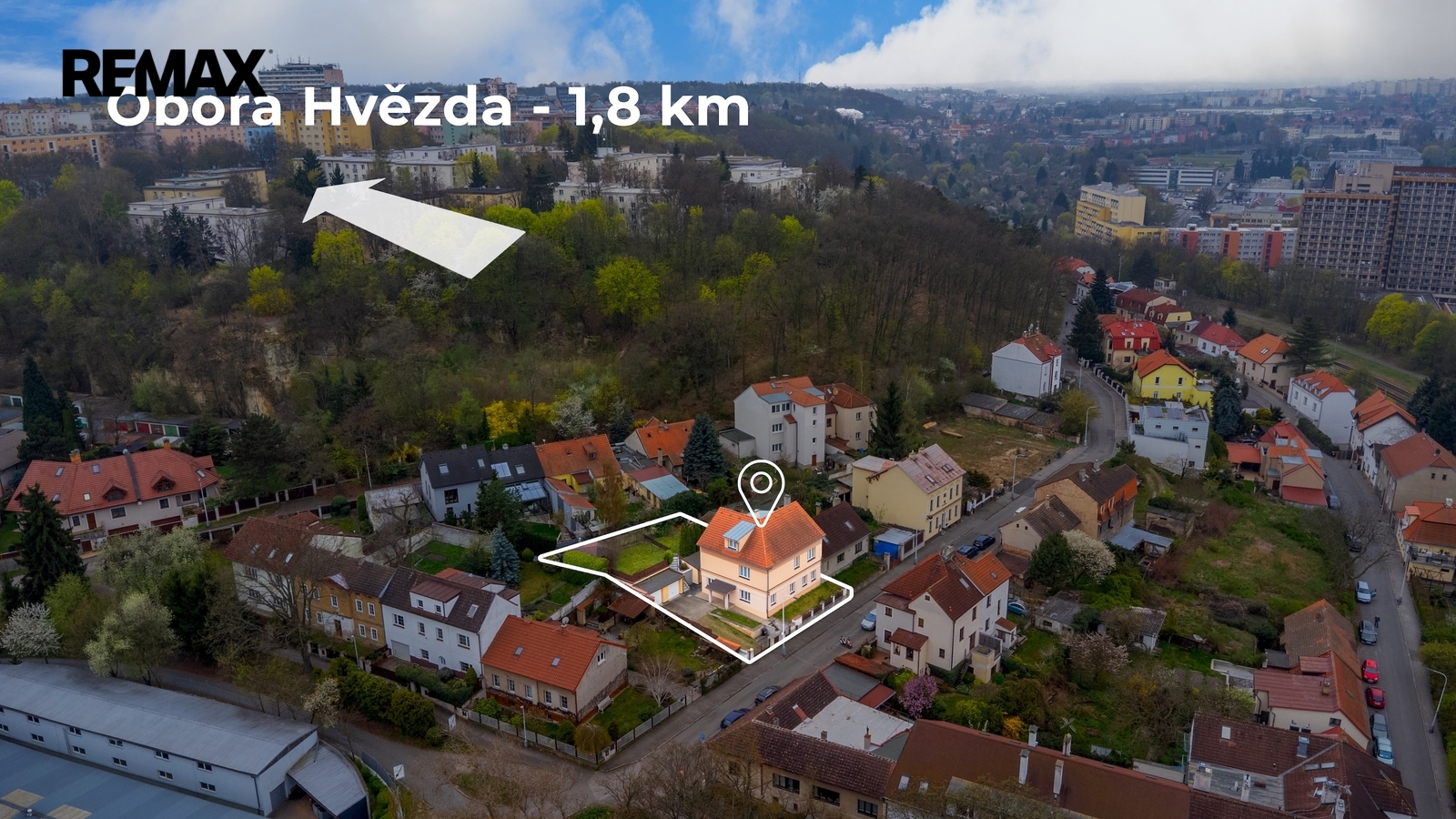 K domu náleží členitá zahrada jejíž součástí jsou dvě kolny, dvě garáže a dvě grilovací zákoutí. Možnosti volnočasového vyžití jsou zde tedy opravdu pestré a to ještě nemluvím o přilehlém okolí domu – procházkou se dá dojít k vodní nádrži Džbán, k Libockému rybníku s lesoparkem, k oboře Hvězda či delší procházkou až na Ladronku. A v neposlední řadě, co by kamenem dohodil je zámek Veleslavín se svojí zámeckou zahradou. Co já osobně považuji za úžasné je fakt, že do Královské obory Stromovka jsou to pouhé 2 zastávky vlakem. O dvě zastávky dál je pak Masarykovo nádraží – tedy střed Prahy. Opačným směrem se dostanete trolejbusem na Letiště Václava Havla. Též dostupnost dopravních tepen (pražský okruh D0 a navazující síť dálnic) je velice atraktivní.
