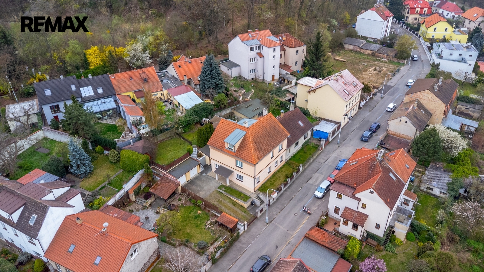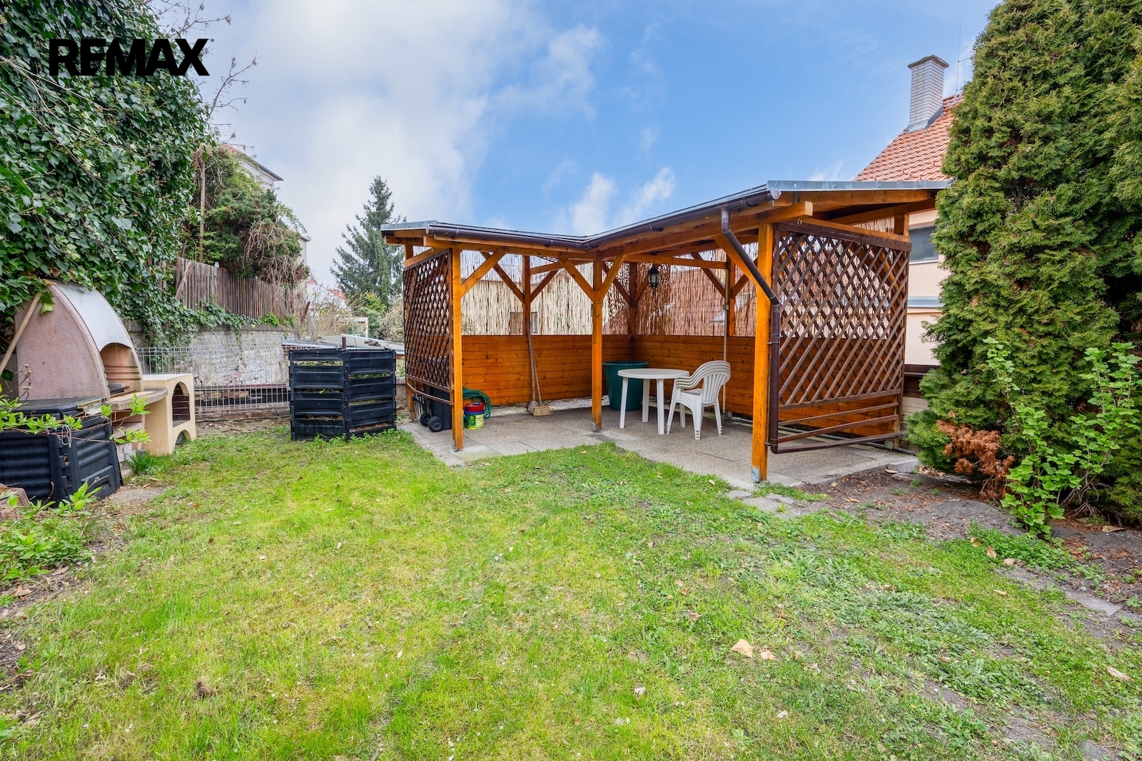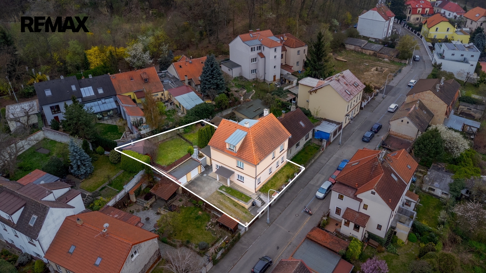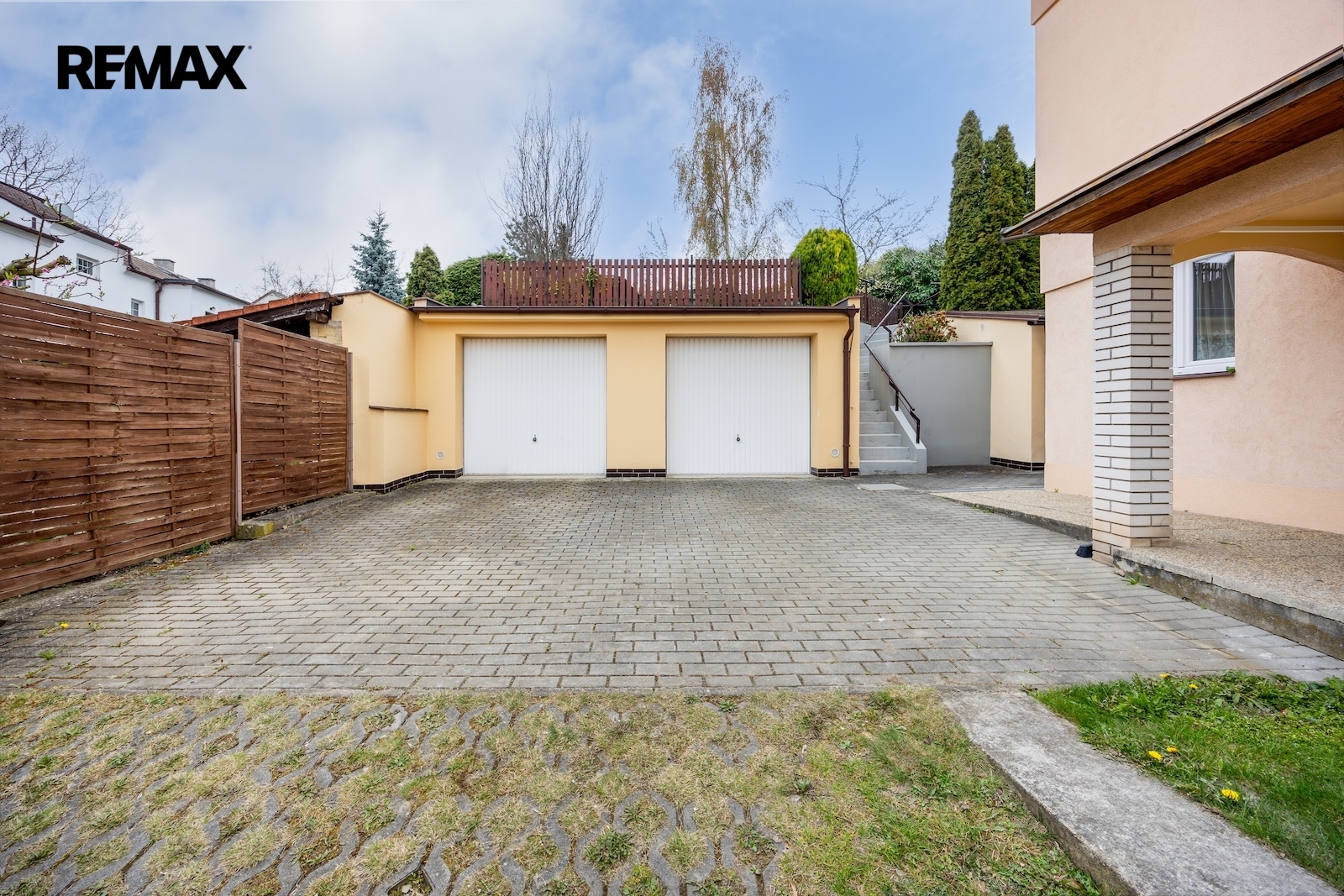 K domu náleží členitá zahrada jejíž součástí jsou dvě kolny, dvě garáže a dvě grilovací zákoutí. Možnosti volnočasového vyžití jsou zde tedy opravdu pestré a to ještě nemluvím o přilehlém okolí domu – procházkou se dá dojít k vodní nádrži Džbán, k Libockému rybníku s lesoparkem, k oboře Hvězda či delší procházkou až na Ladronku. A v neposlední řadě, co by kamenem dohodil je zámek Veleslavín se svojí zámeckou zahradou. Co já osobně považuji za úžasné je fakt, že do Královské obory Stromovka jsou to pouhé 2 zastávky vlakem. O dvě zastávky dál je pak Masarykovo nádraží – tedy střed Prahy. Opačným směrem se dostanete trolejbusem na Letiště Václava Havla. Též dostupnost dopravních tepen (pražský okruh D0 a navazující síť dálnic) je velice atraktivní.