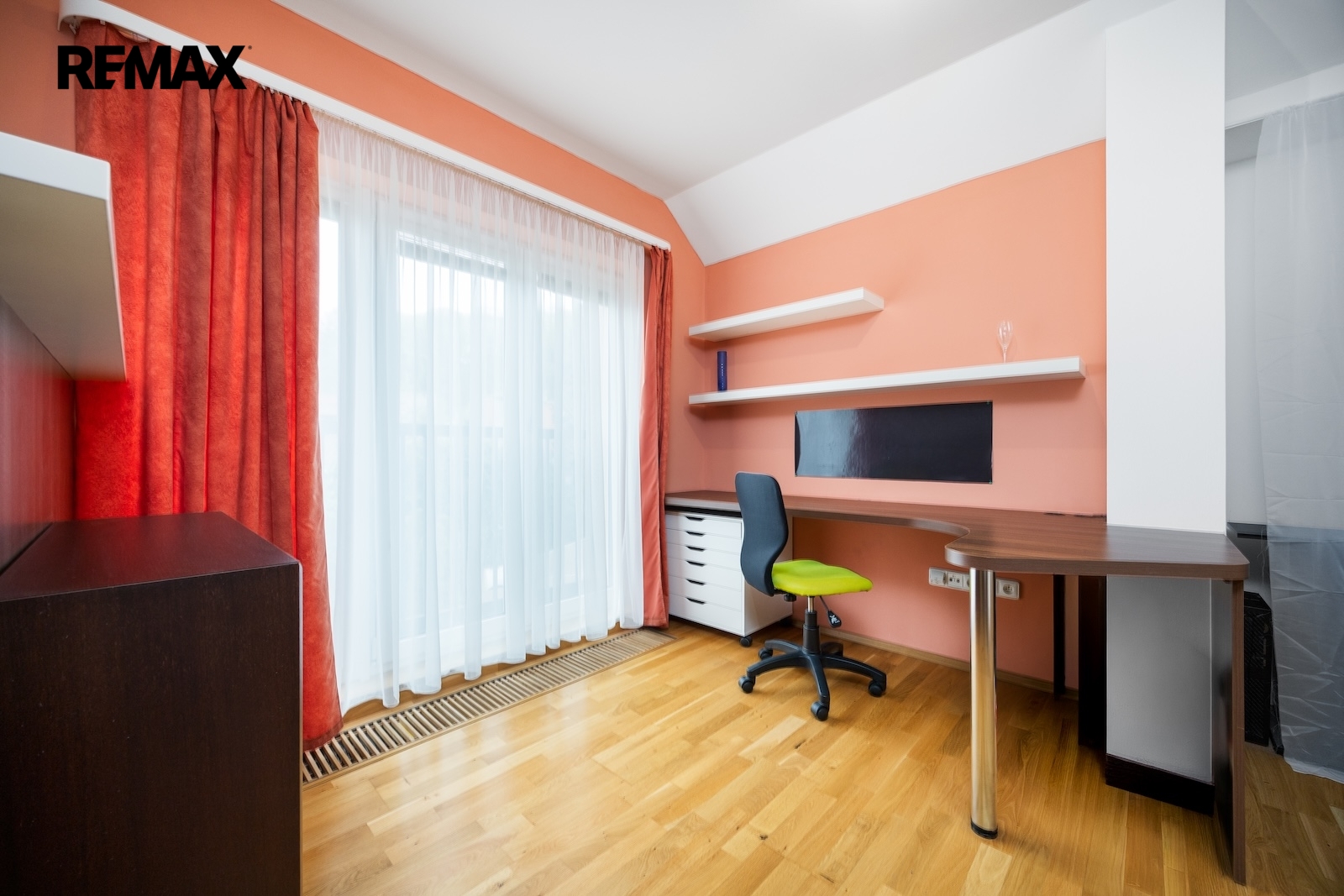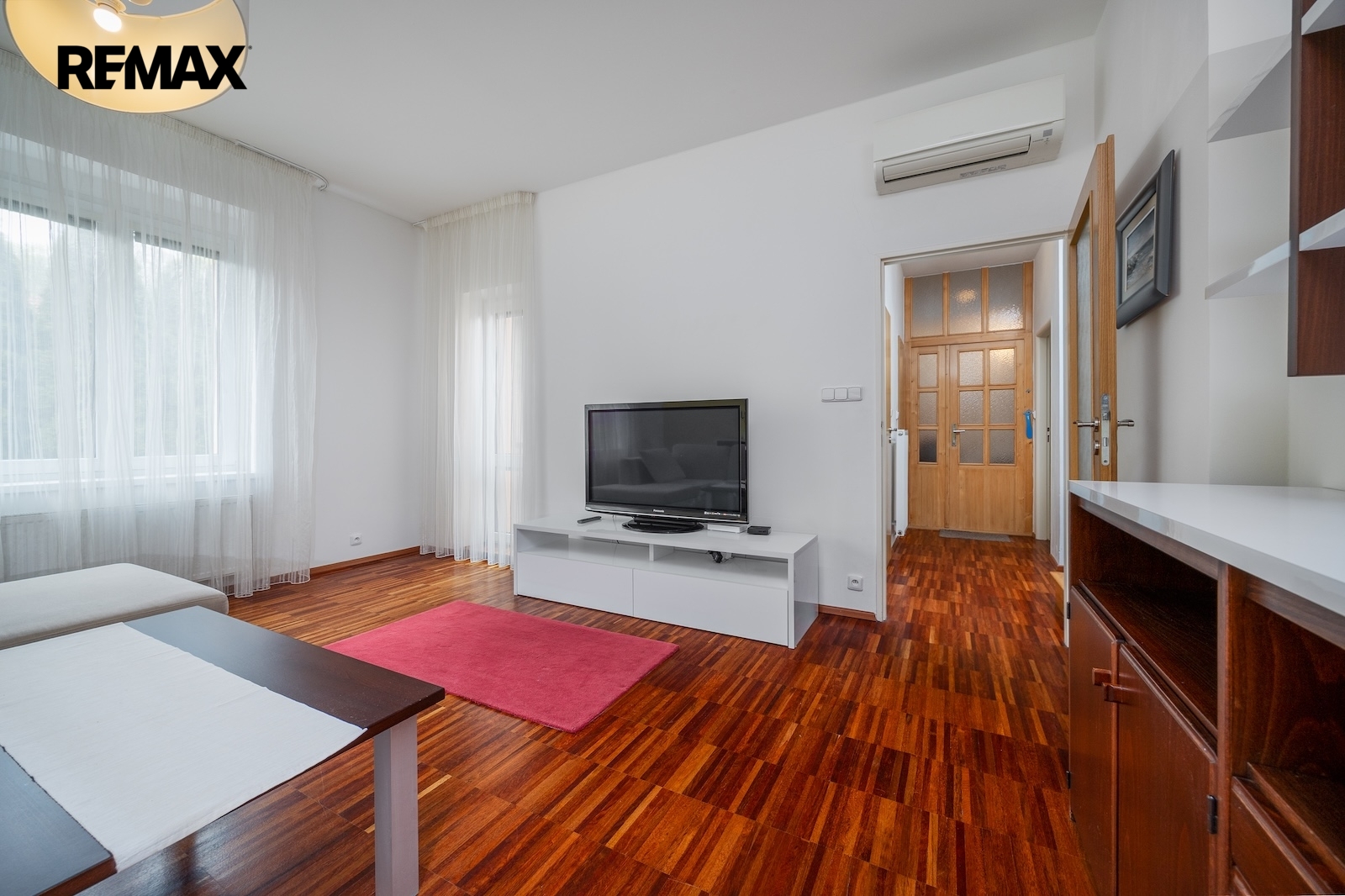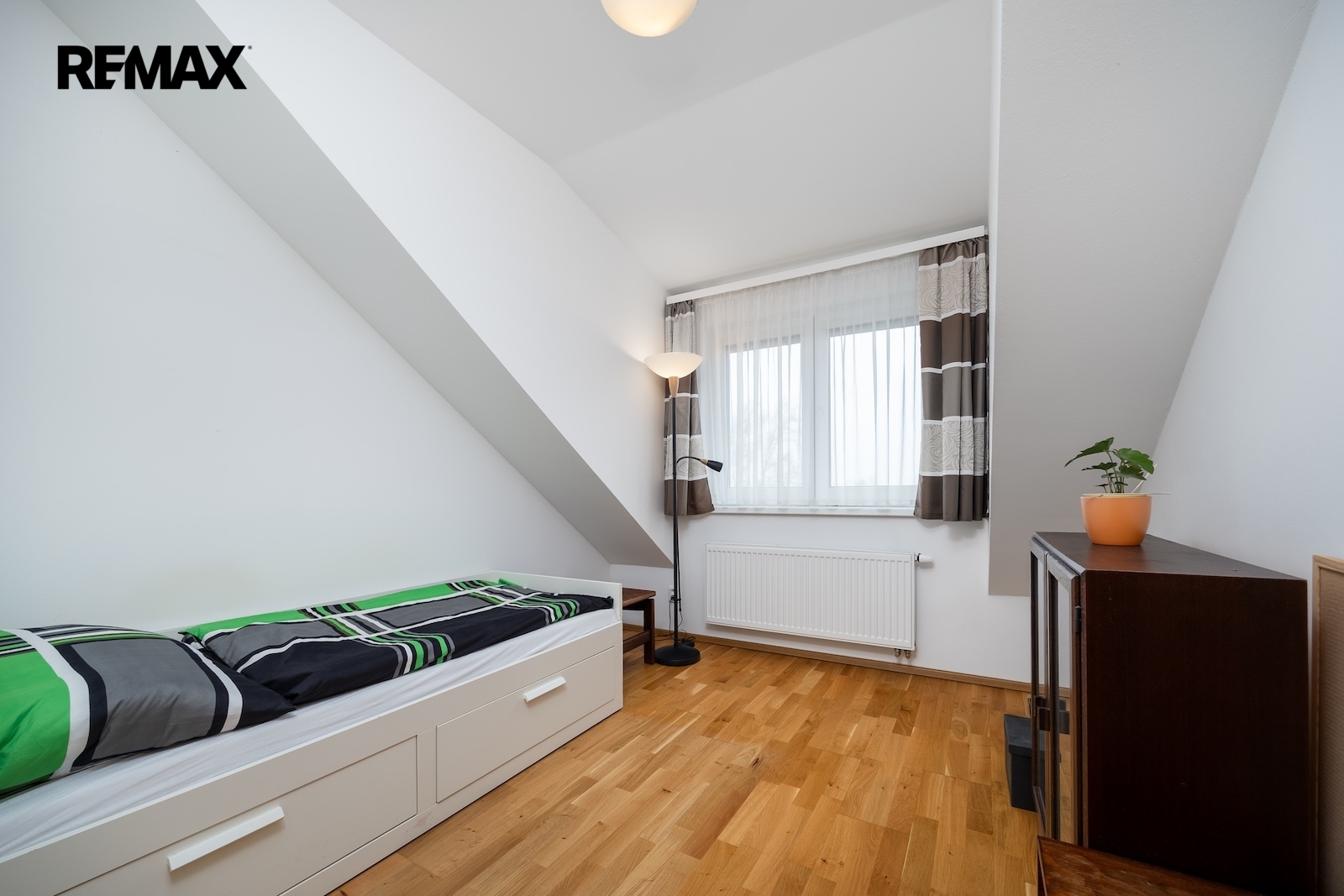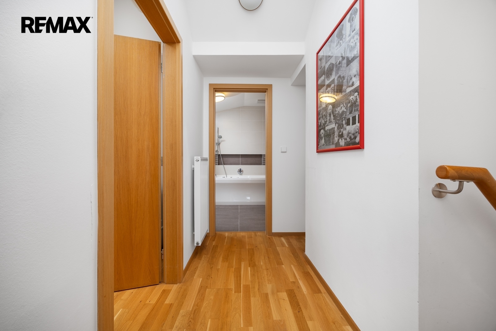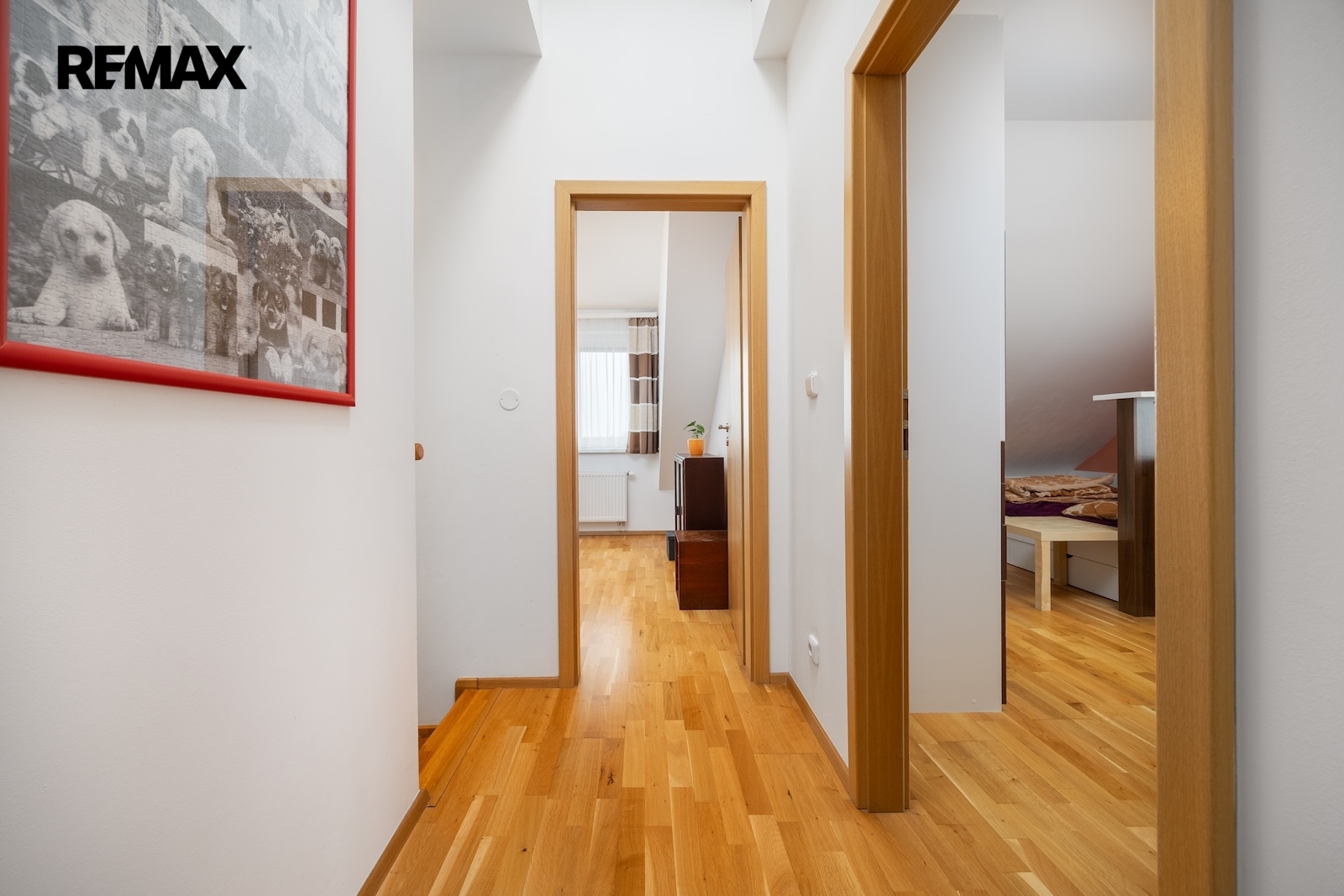 V patře je pak druhý byt. Ten je mezonetový a v roce 2012 prošel generální rekonstrukcí. Jeho podlahová plocha je ca. 113 m2 s možností poměrně jednoduchého rozšíření o dalších ca. 30 m2. Byt má 5 obytných místností, kuchyni a každé patro má svojí samostatnou koupelnu – horní patro dokonce s finskou saunou. Topení a ohřev užitkové vody jsou zajištěny plynovým kombinovaným kotlem. Mimo to je ve většině obytných místností instalována klimatizace s možností přitápění.