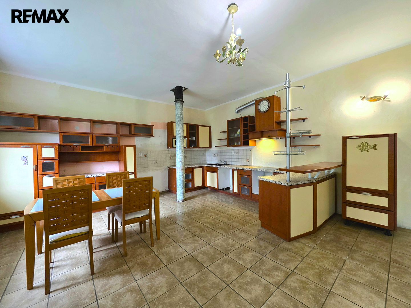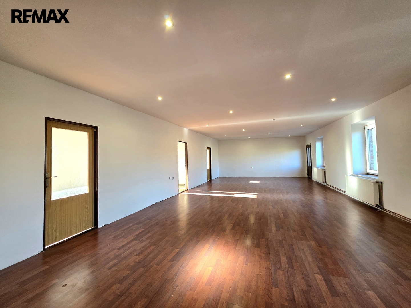 V přízemí najdete prostornou garáž s vysokým stropem i pro větší vozidla. Další části objektu (bývalé hospodářské prostory, sušárna chmele, sklepy) otevírají další možnosti využití nebo přestavby podle vašich představ.