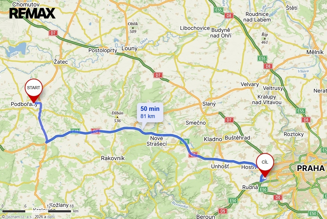 - strategická poloha – město Podbořany s bohatou občanskou vybaveností je dostupné do 3 minut, rychlé napojení na I/27 i D6 (Praha 50minut),
