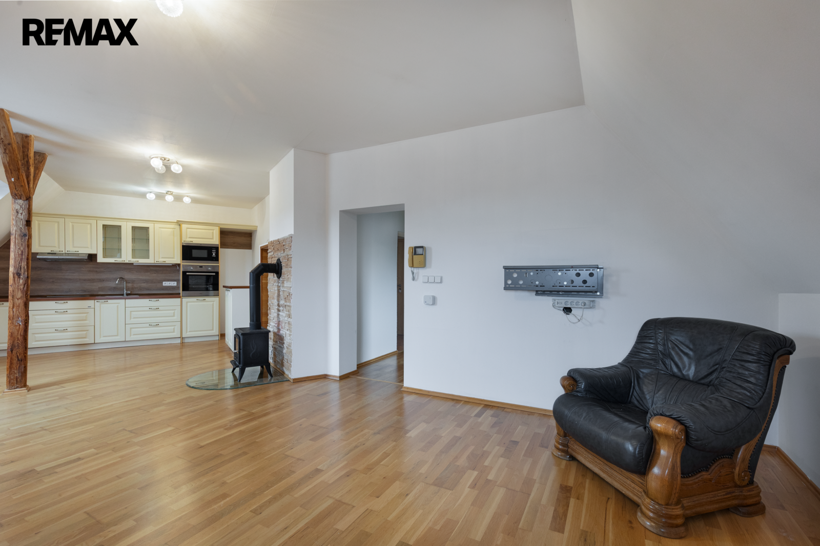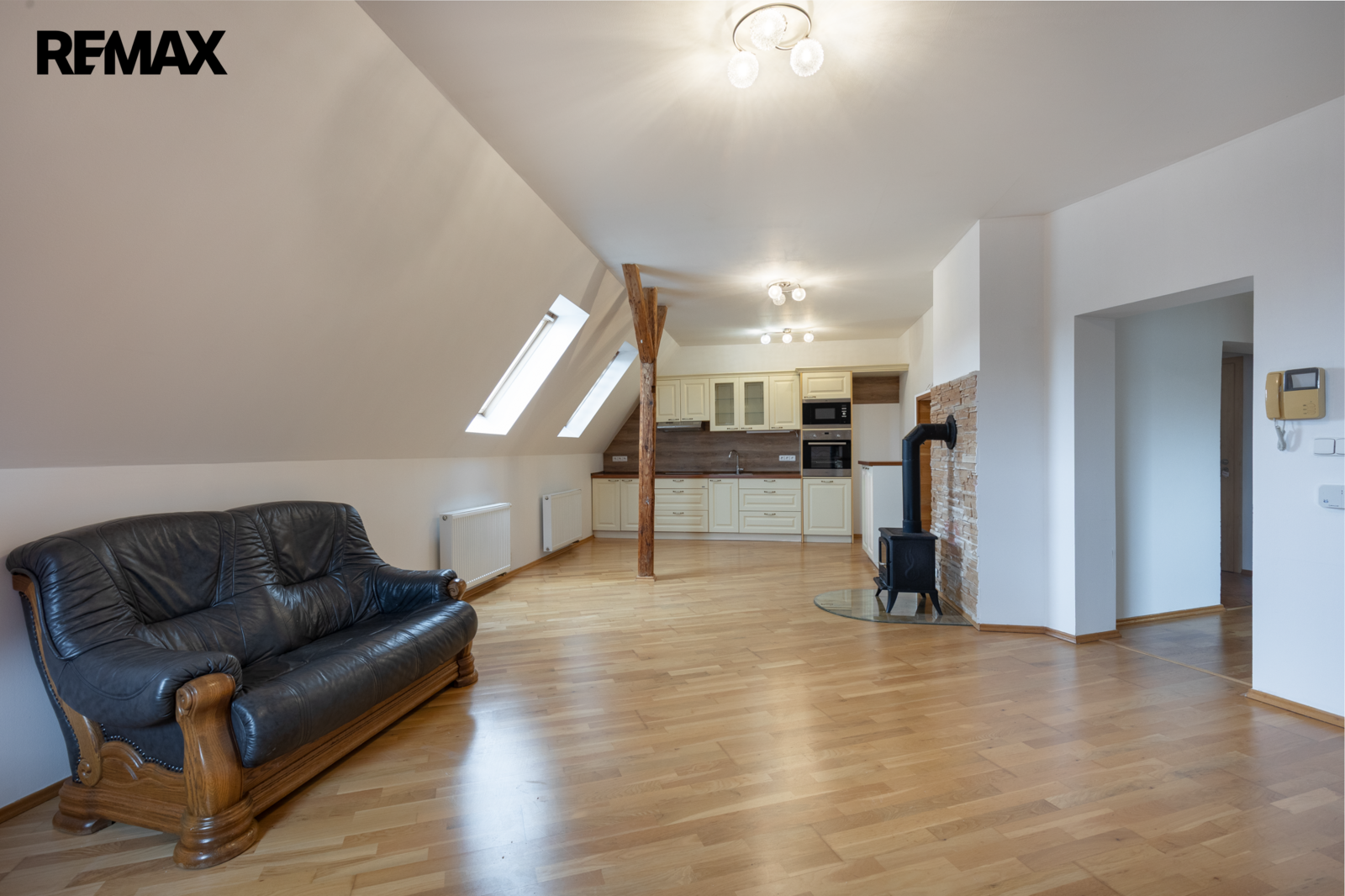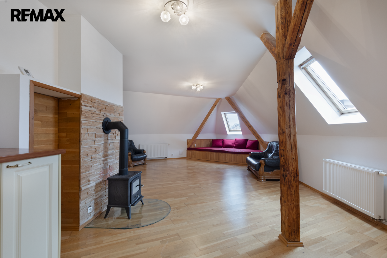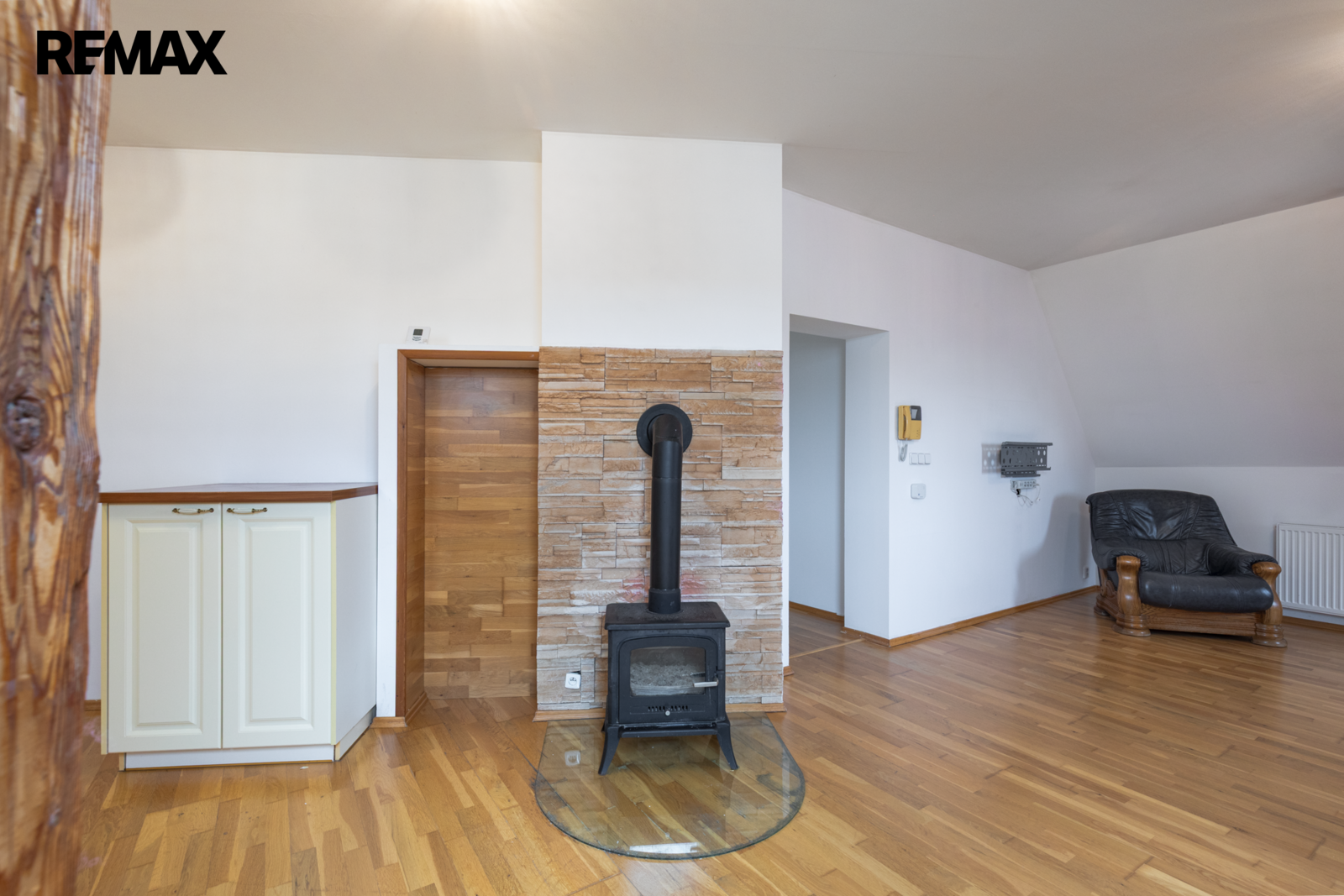 Částečně zařízený byt disponuje velkým obývacím pokojem s krbovými kamny, s kuchyní a velkou ložnicí, pěknou světlou koupelnou s vanou i sprchovým koutem a závěsným WC. Byt s plochou 80 m2 osloví i menší rodinu. Velkou ložnici lze rozdělit na dvě menší místnosti a vytvořit tak soukromí i pro dítě.
