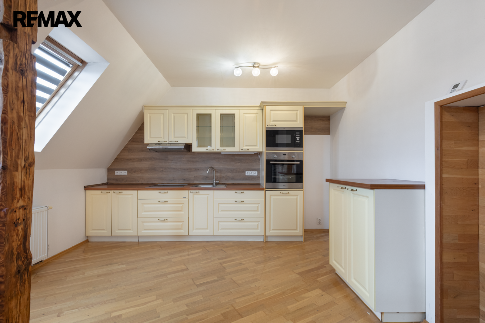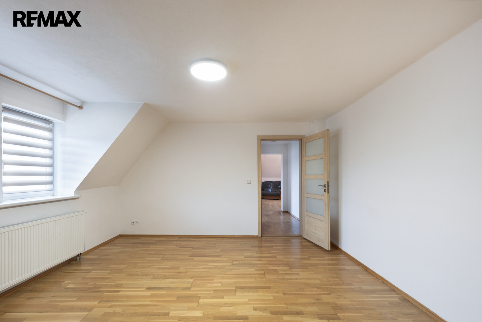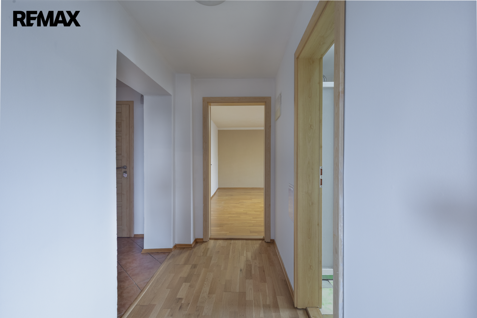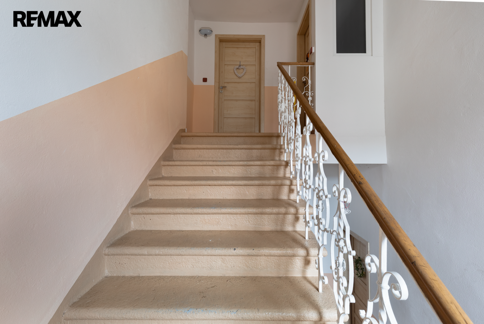 Částečně zařízený byt disponuje velkým obývacím pokojem s krbovými kamny, s kuchyní a velkou ložnicí, pěknou světlou koupelnou s vanou i sprchovým koutem a závěsným WC. Byt s plochou 80 m2 osloví i menší rodinu. Velkou ložnici lze rozdělit na dvě menší místnosti a vytvořit tak soukromí i pro dítě.