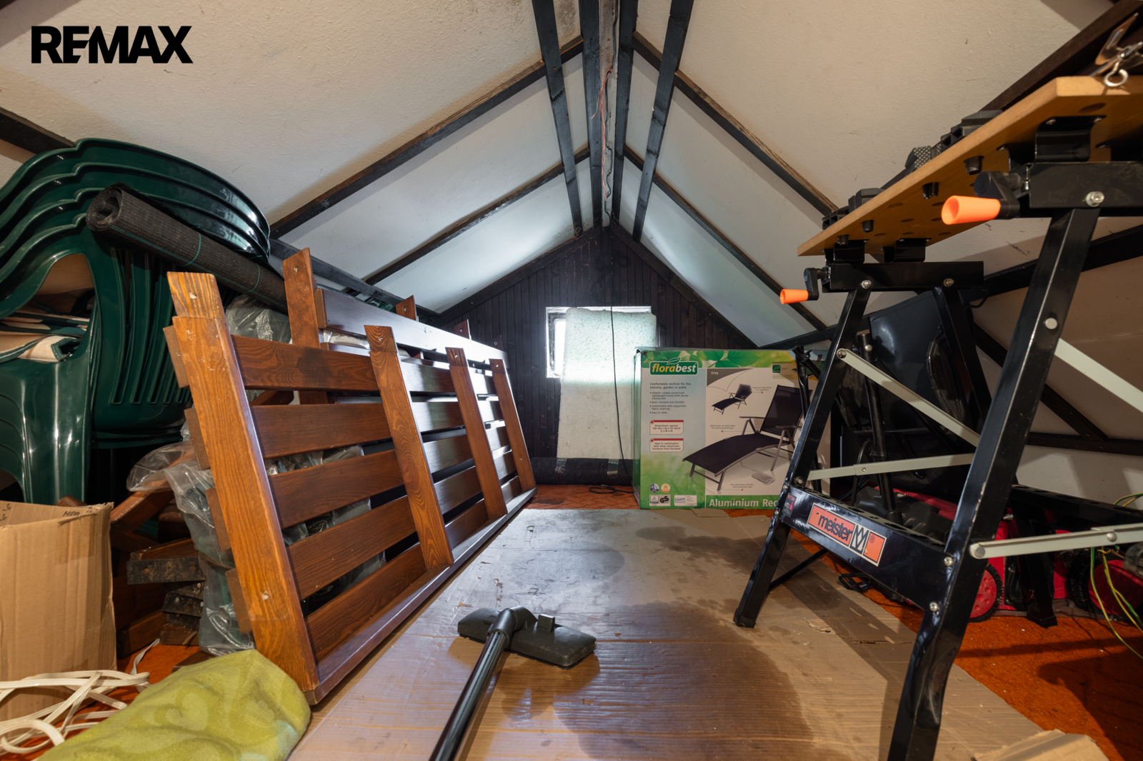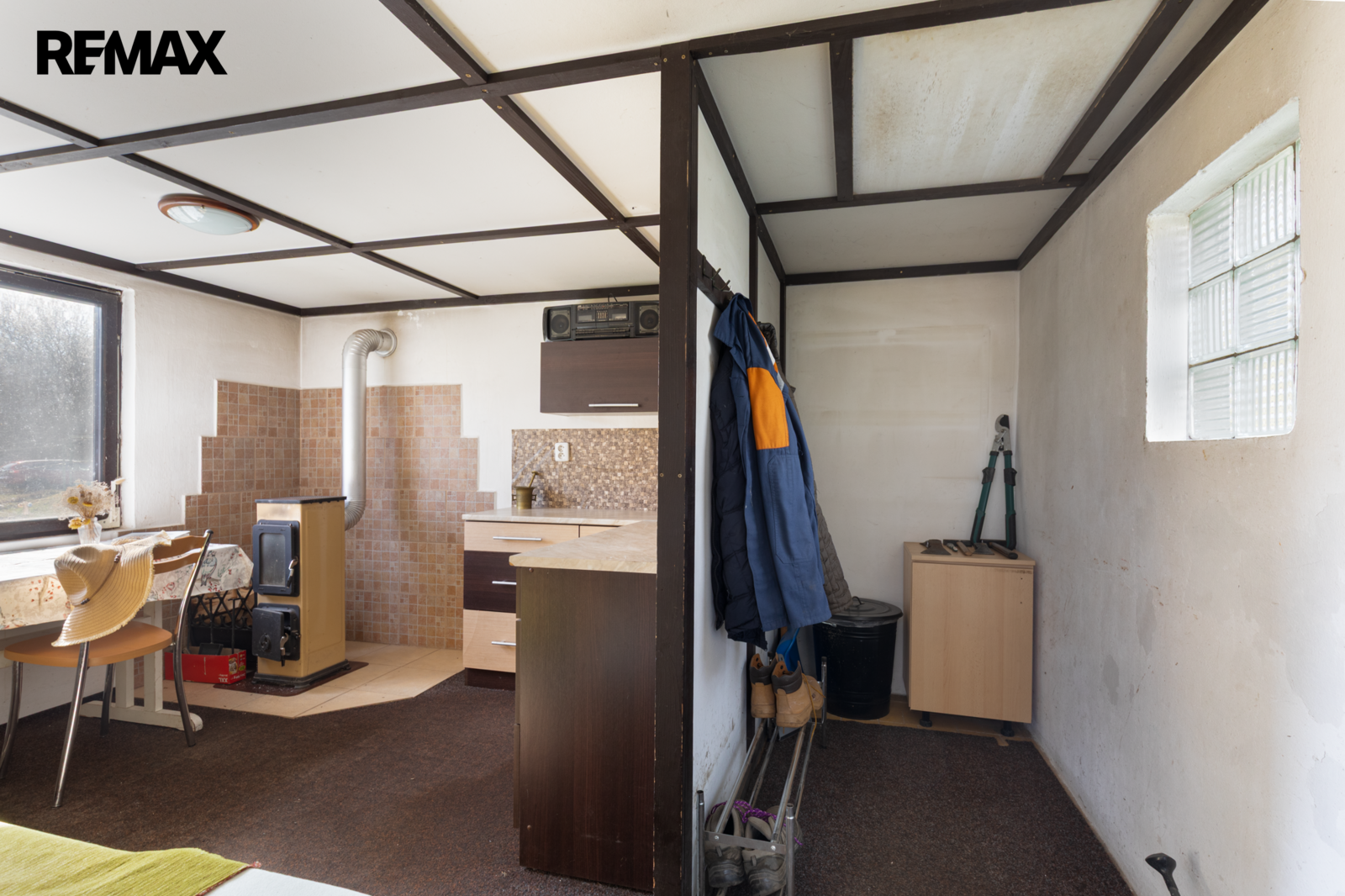 Na pozemek je přivedena užitková voda, v chatce je zavedena elektřina. Chatka disponuje také půdním prostorem, který lze využít pro spaní nebo jako praktické úložné místo.