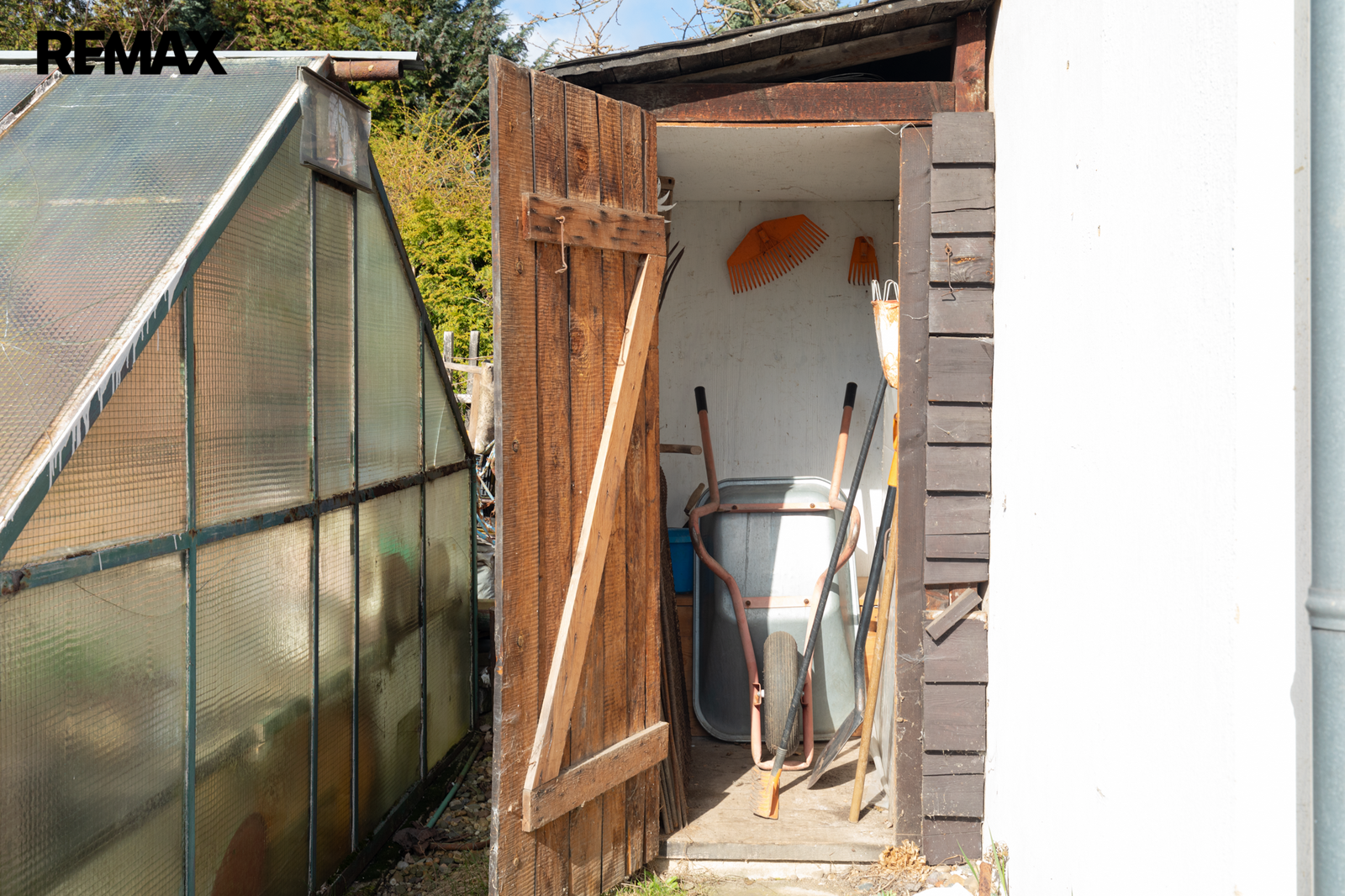 Zahrada je pečlivě udržovaná a nabízí ideální kombinaci pro pěstování i relax. Nachází se zde ovocné dřeviny a keře (jabloně, borůvky, rybíz) a také skleník ve velmi dobrém stavu.