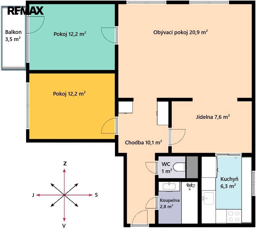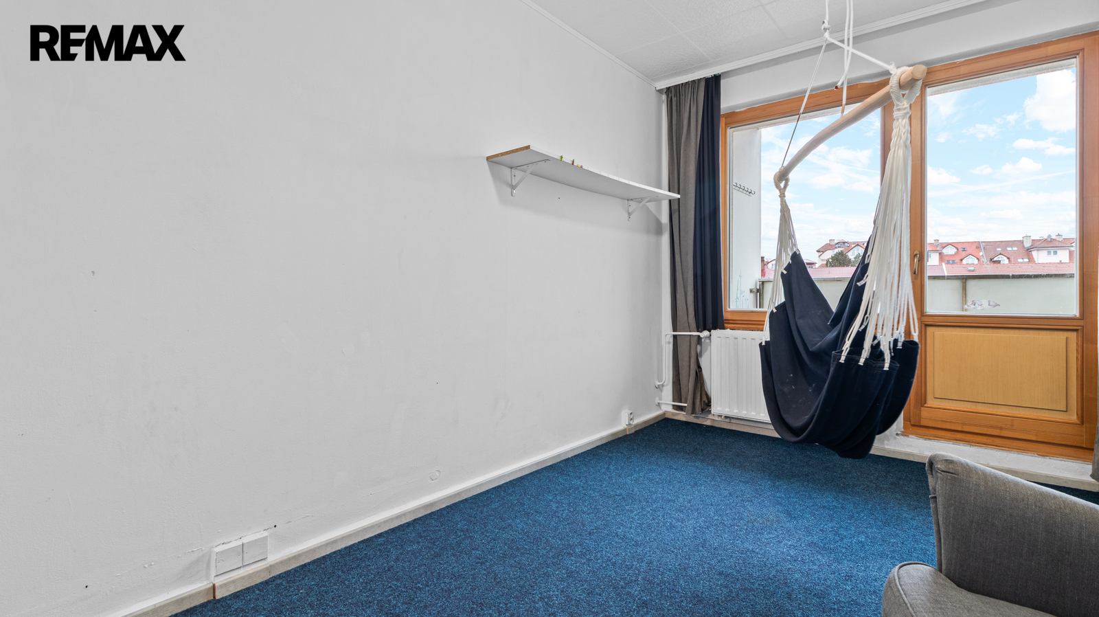 K bytu náleží balkon o velikosti cca 3,5 m² se vstupem z ložnice a sklepní kóje o výměře cca 2,2 m².