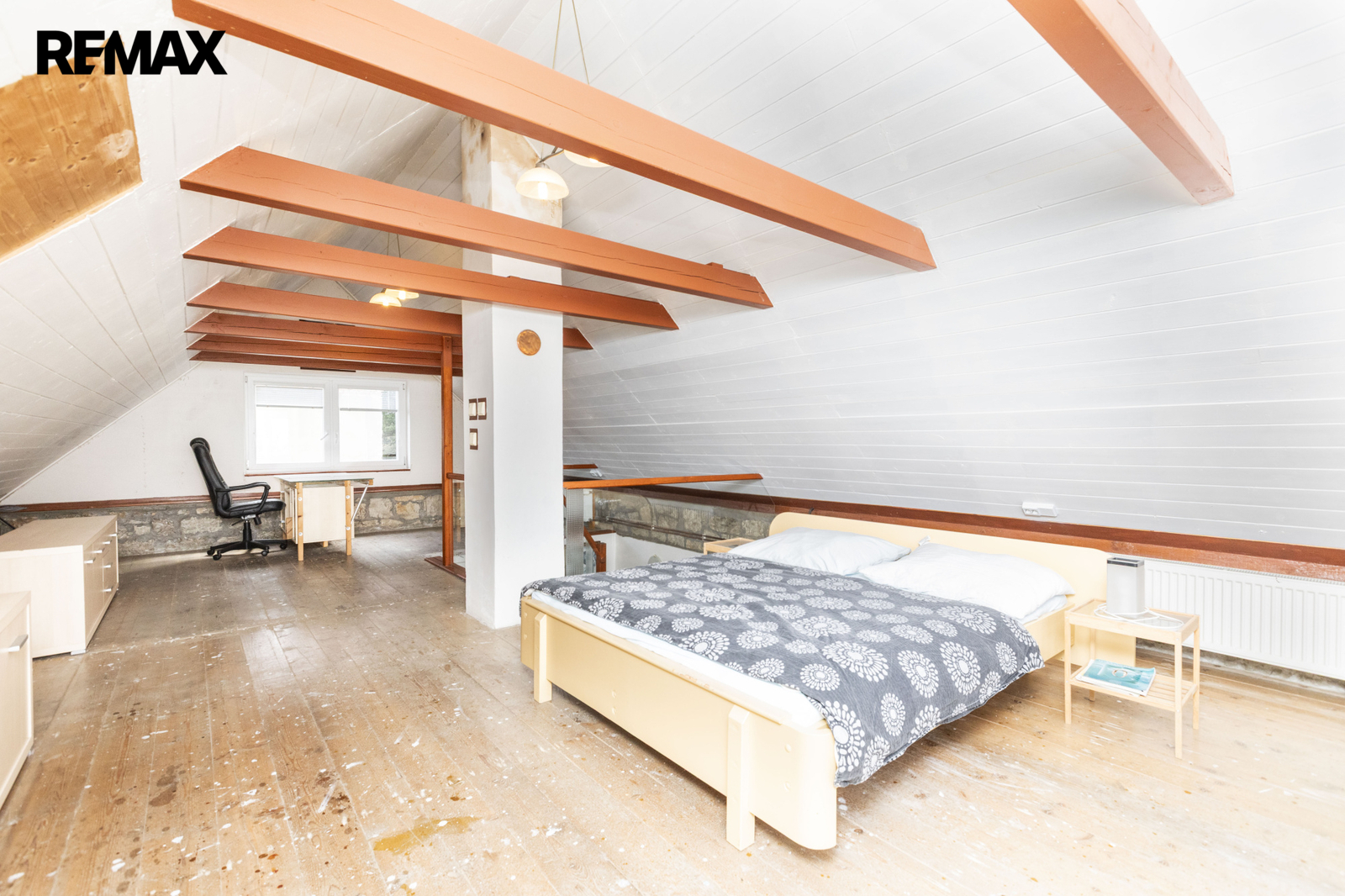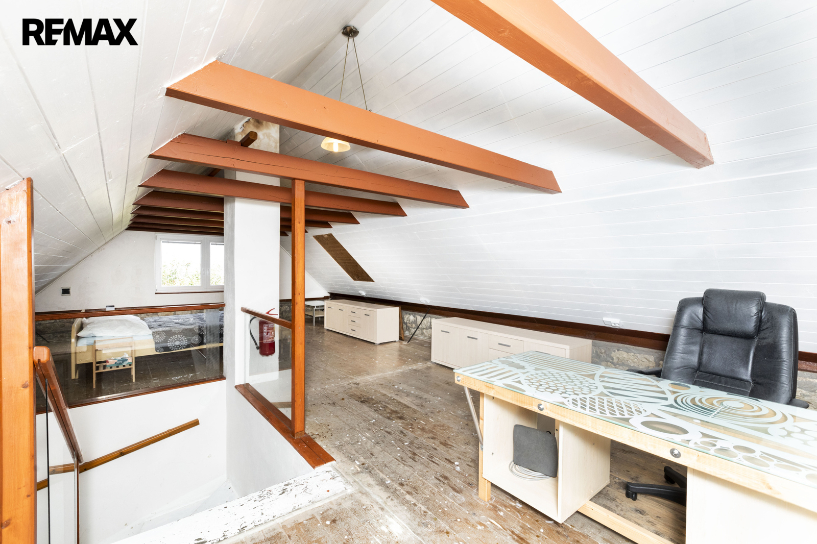 V patře se nachází jeden velký pokoj o velikosti 42 m², který zabírá celé podkroví původní stavby. Díky své rozloze umožňuje variabilní využití – může sloužit jako prostorná ložnice s pracovnou, nebo jej lze rozdělit na dvě samostatné ložnice. Z pokoje je krásný výhled do okolní krajiny.
