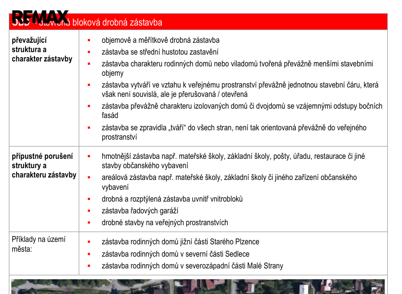 Zastavěnost tohoto pozemku je 30%, výška stavby 12 m, dvě nadzemní podlaží a podkroví. Zástavba charakteru domů či dvojdomů se vzájemnými odstupy bočních fasád.