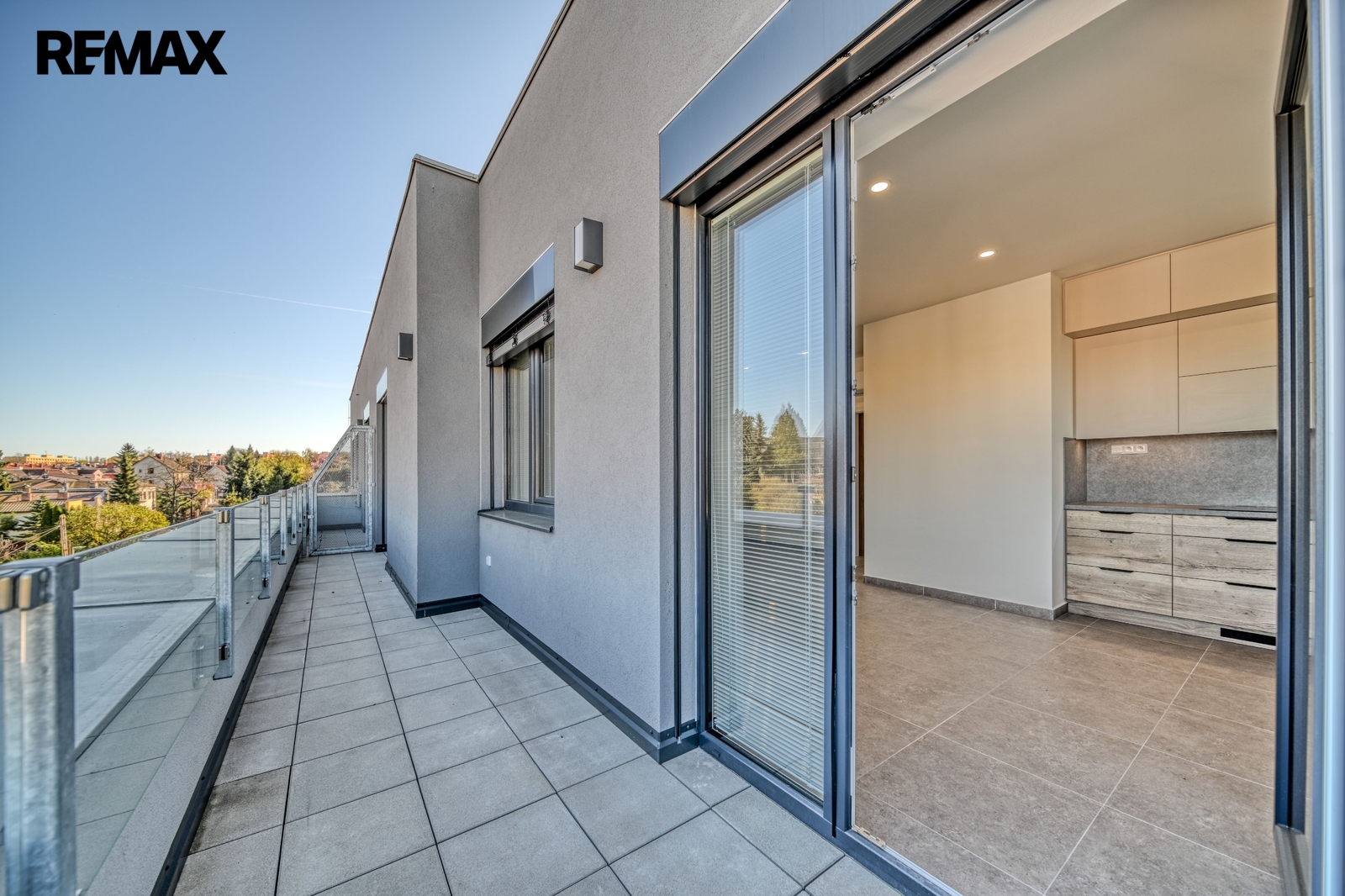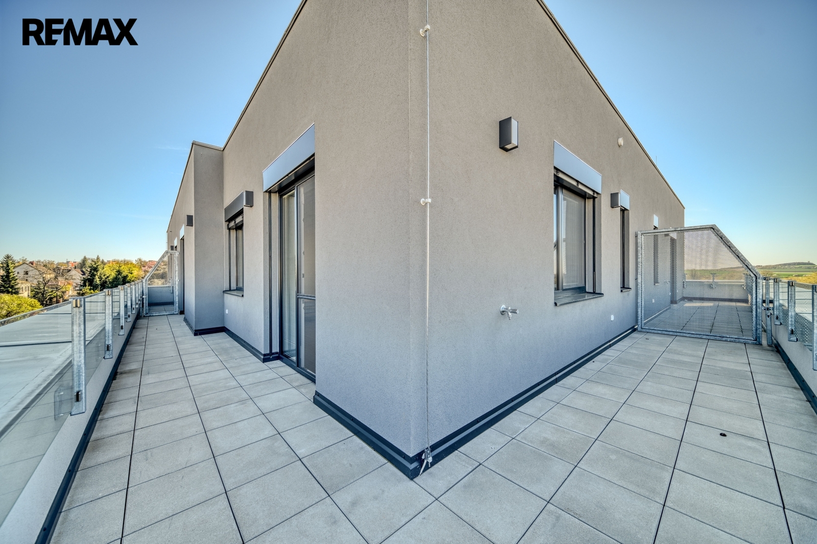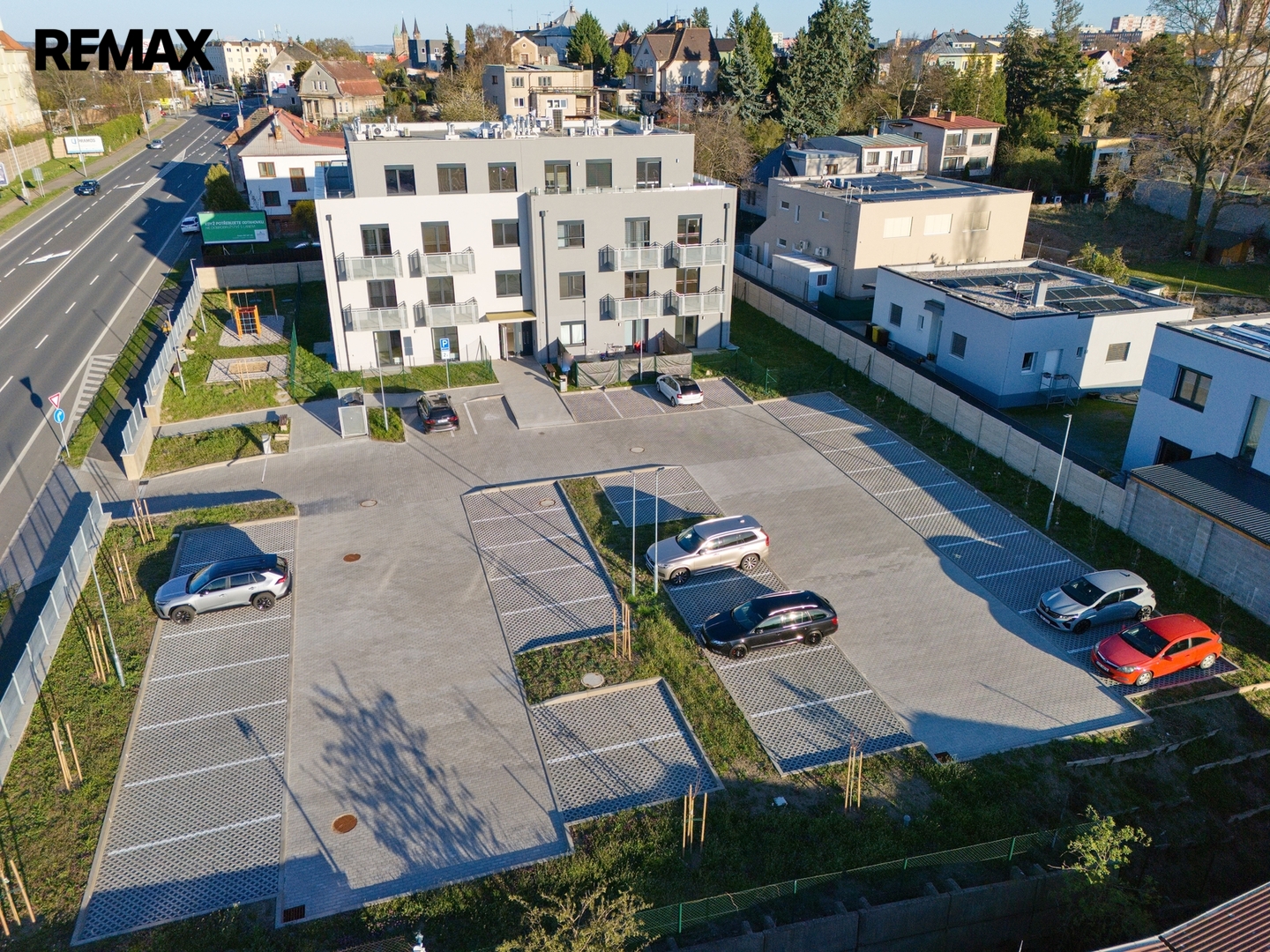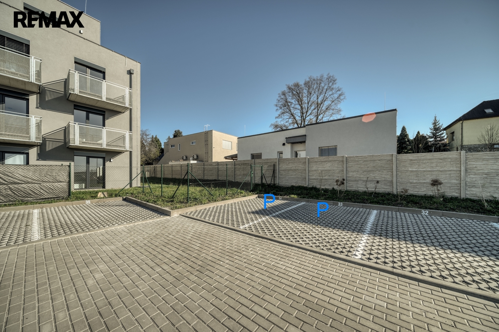 Součástí bytu je prostorná terasa (26,48 m²), sklep (3,54 m²) a dvě vyhrazená parkovací stání přímo u domu.