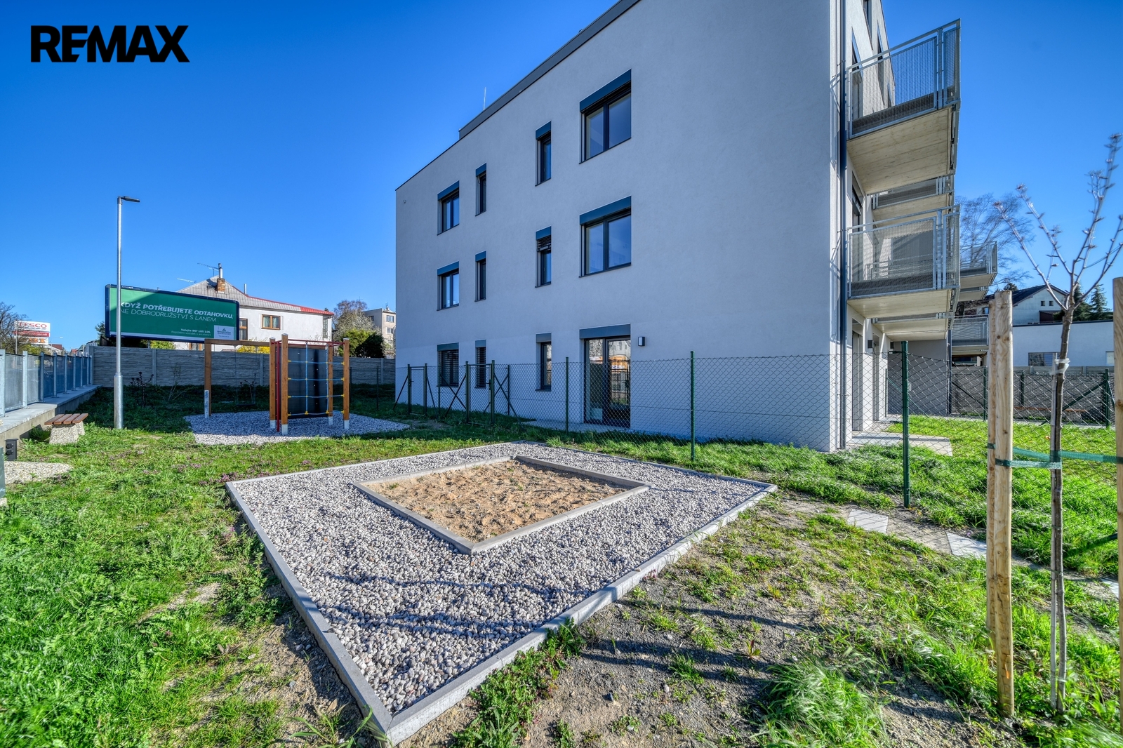 K dispozici je dětské hřiště a upravené společné prostory se zelení.