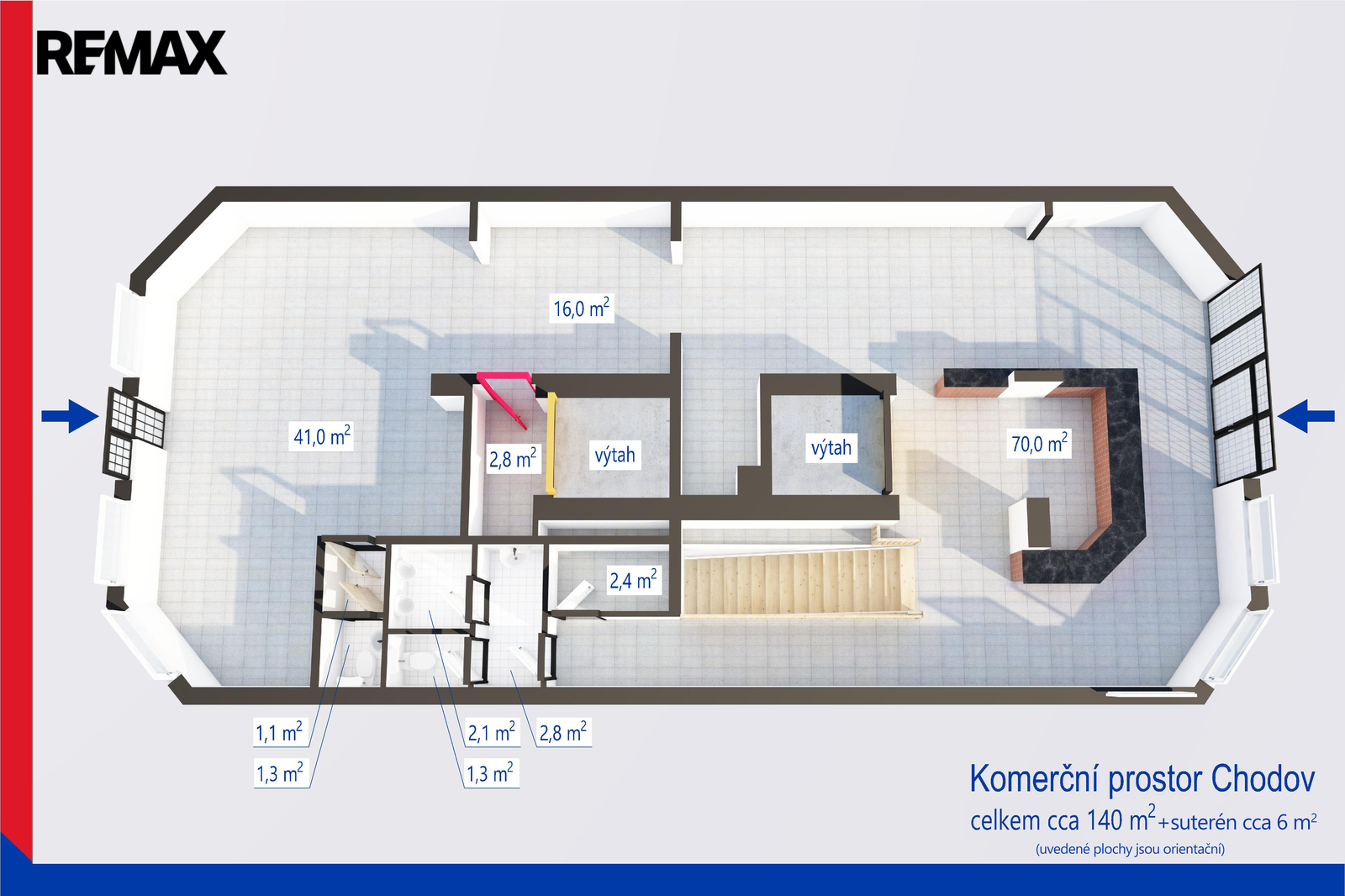Jedná se o bývalý prostor hospody a herny, který je nyní určen k rekonstrukci. Prostor má vlastní zázemí, osobitý charakter a členitou dispozici, kterou lze upravit podle vlastních představ a budoucího provozu. Novému nájemci tak nabízí možnost přizpůsobit si prostor přesně podle vlastního podnikatelského záměru.