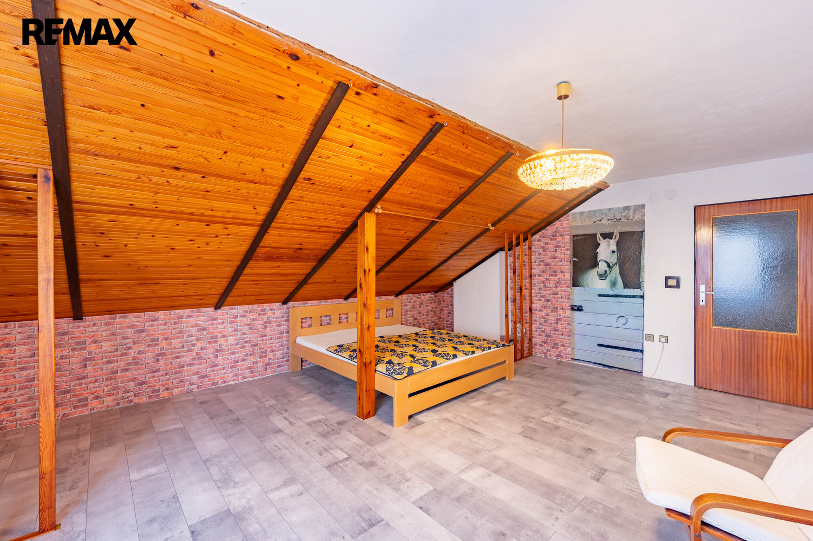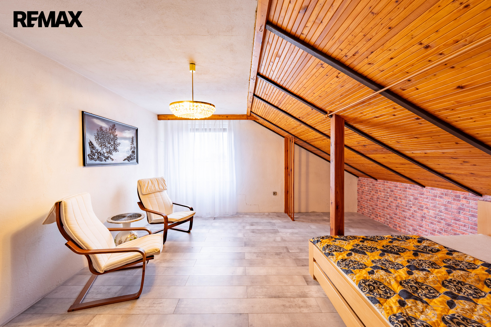 Samostatný pokoj a navazující půda o velikosti 68,5 m². Prostor, který můžete přeměnit na další obytnou část podle vlastních představ.