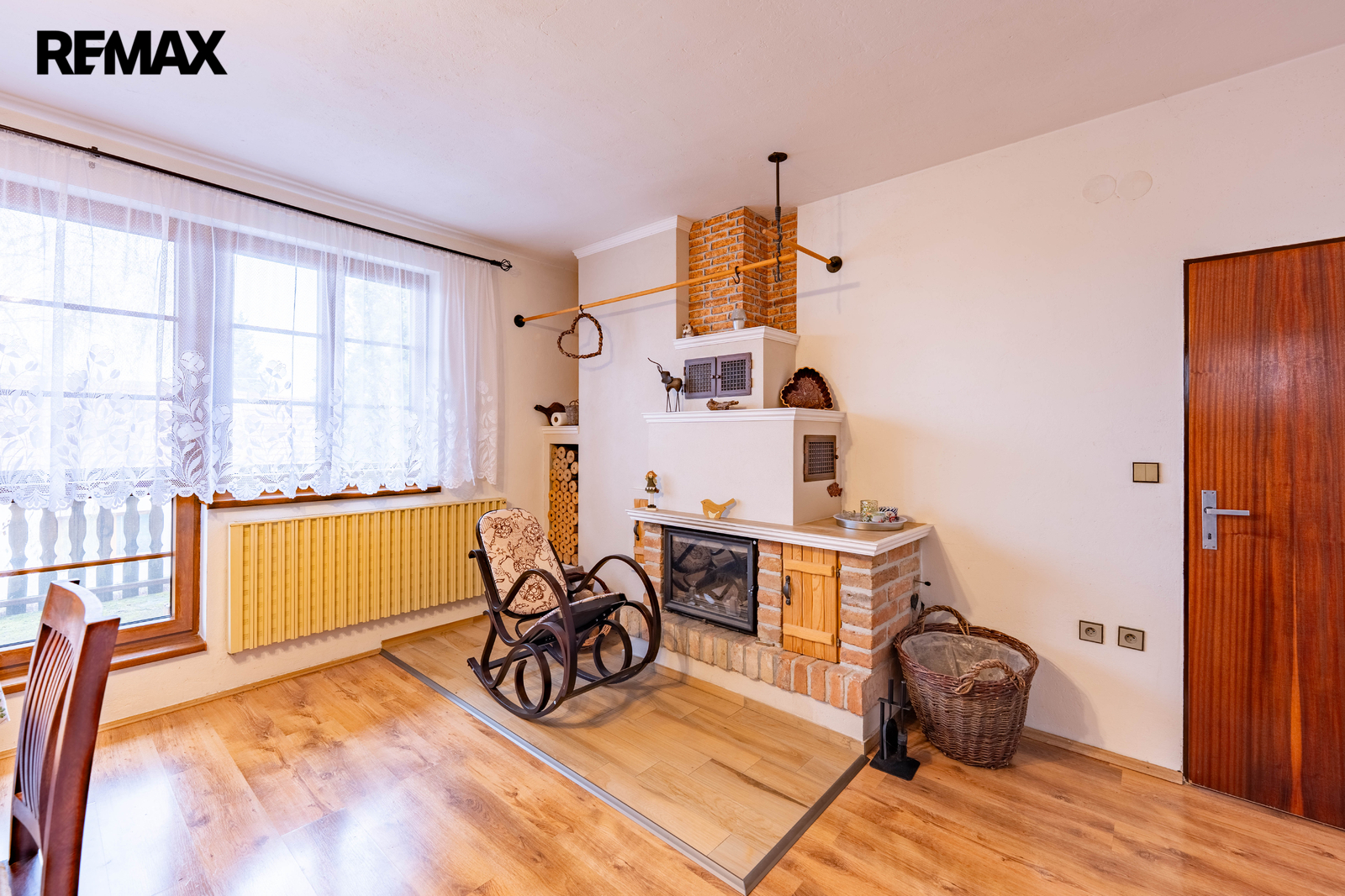 Obývací pokoj s krbem tvoří přirozené centrum, na které navazuje kuchyně s jídelnou. Dále ložnice, další pokoj, koupelna a samostatné WC. Velkým benefitem je balkon o velikosti 10,6 m², který rozšiřuje obytný prostor o venkovní část.