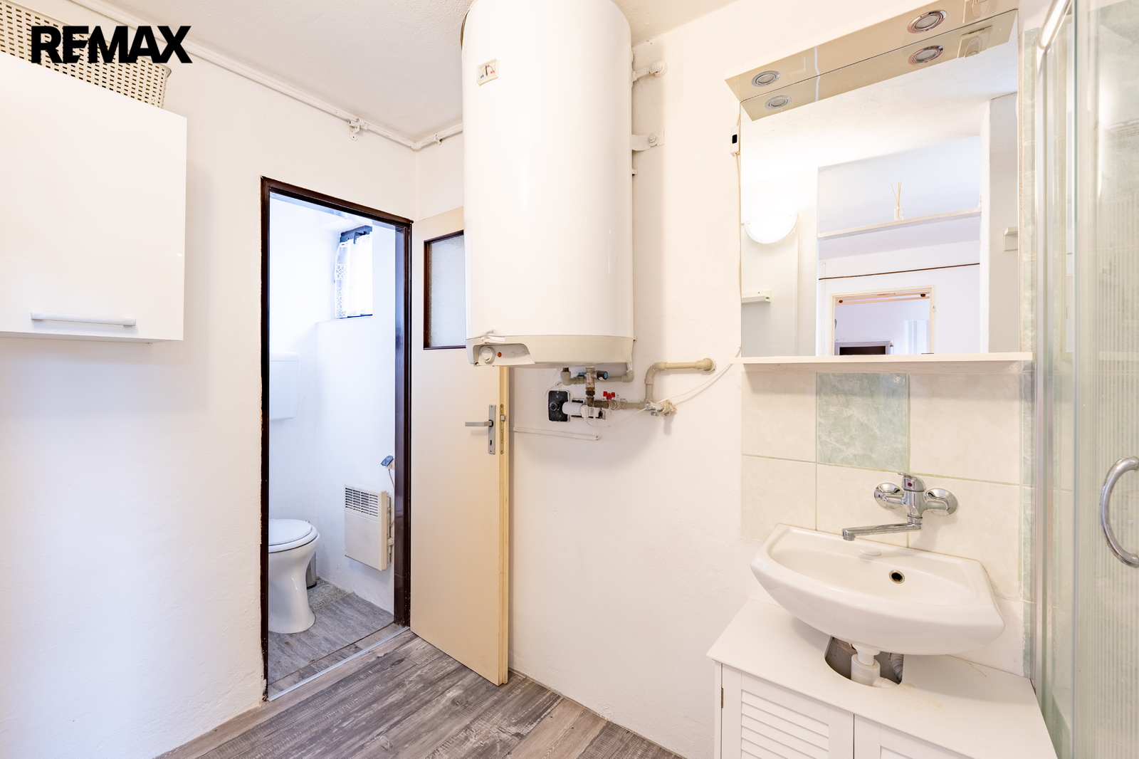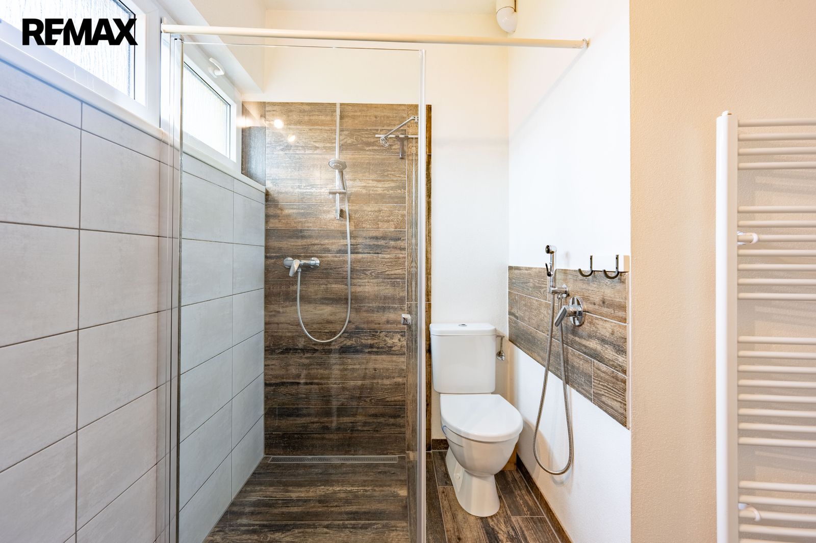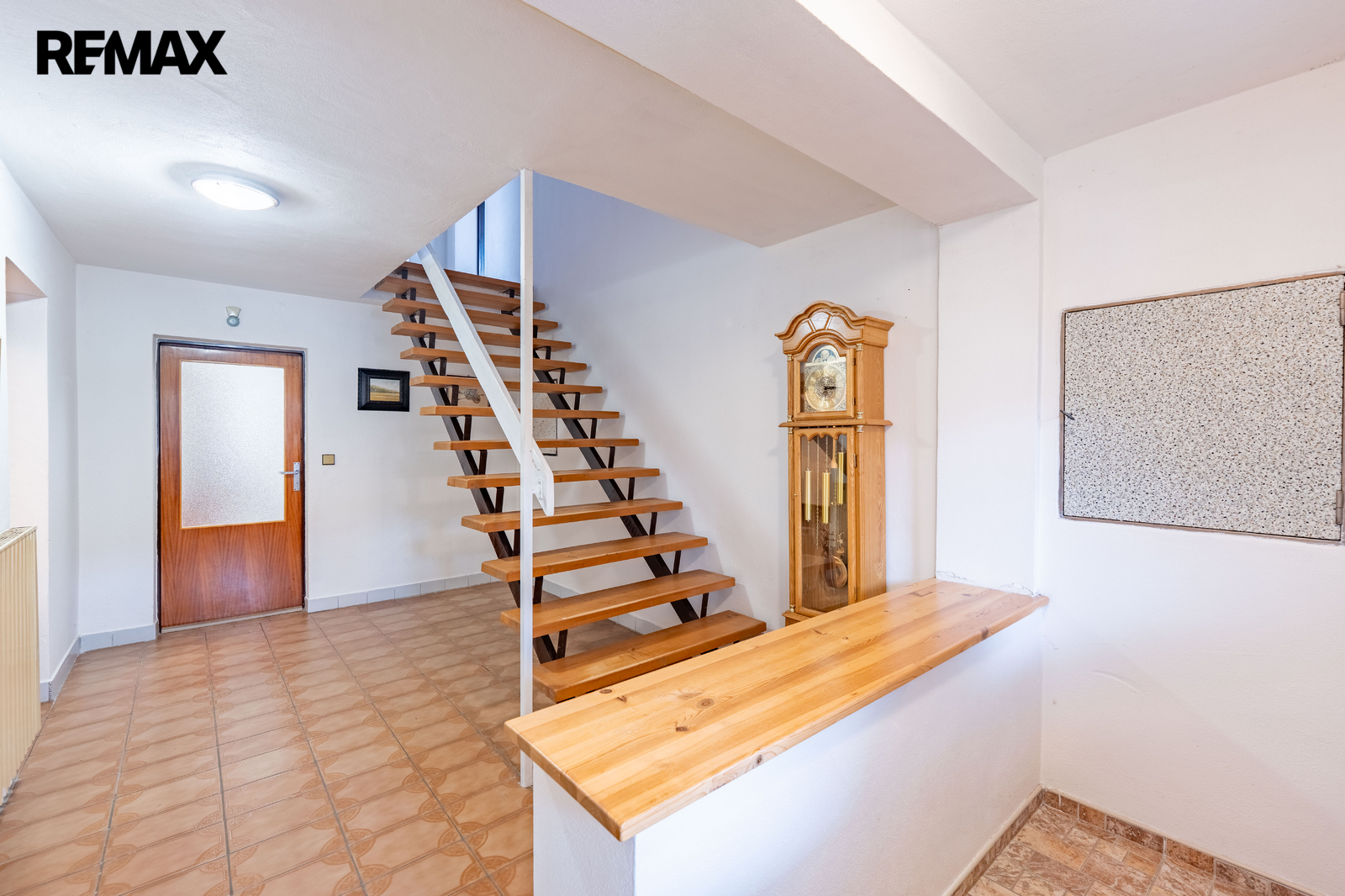 Velkým benefitem je samostatná bytová jednotka s vlastním vstupem v zadní části domu. Není propojená s hlavní částí, a tak poskytuje plné soukromí. Dispozice nabízí obývací pokoj, samostatný pokoj, kuchyni, koupelnu, dvě spíže a zádveří – plnohodnotné bydlení bez kompromisů.