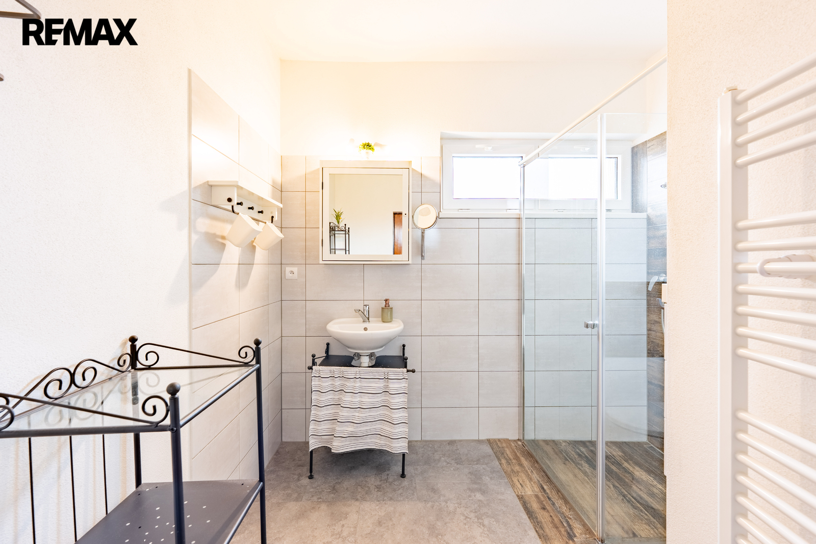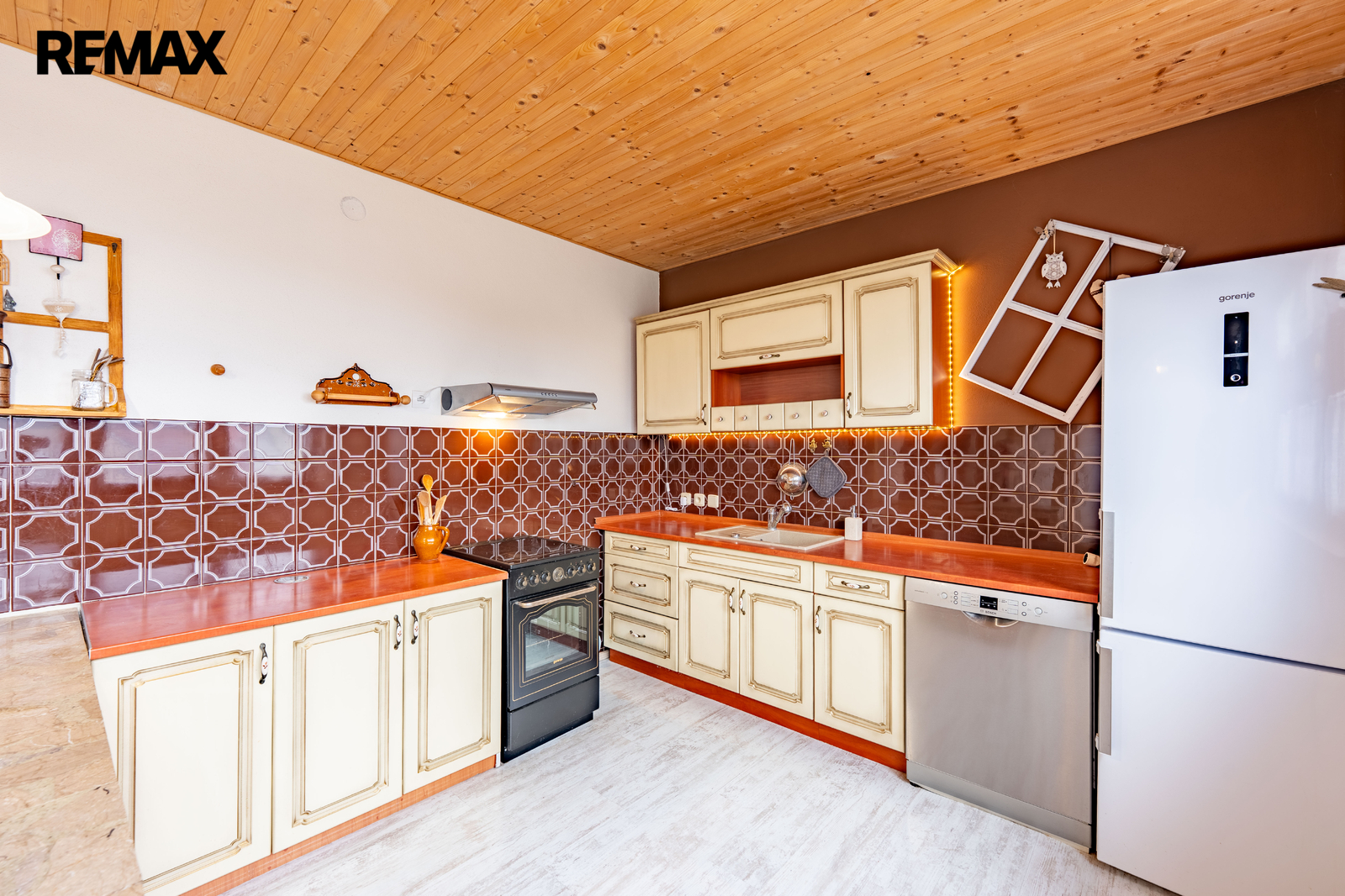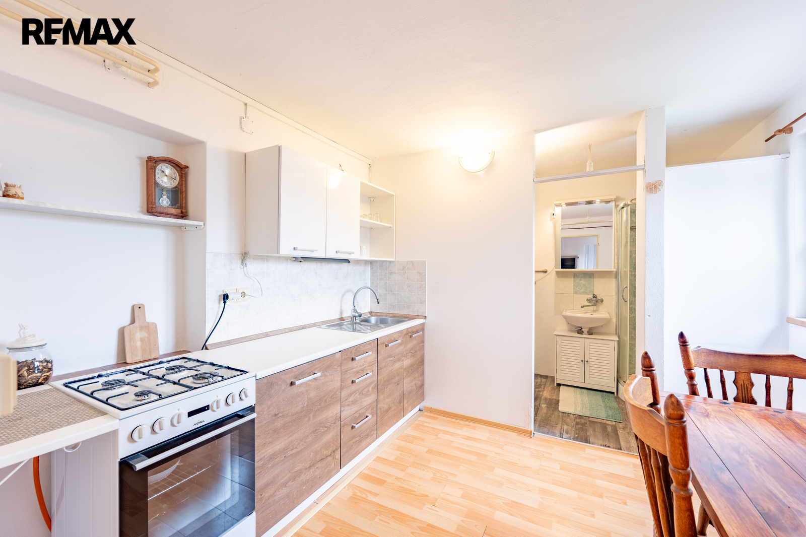 Velkým benefitem je samostatná bytová jednotka s vlastním vstupem v zadní části domu. Není propojená s hlavní částí, a tak poskytuje plné soukromí. Dispozice nabízí obývací pokoj, samostatný pokoj, kuchyni, koupelnu, dvě spíže a zádveří – plnohodnotné bydlení bez kompromisů.