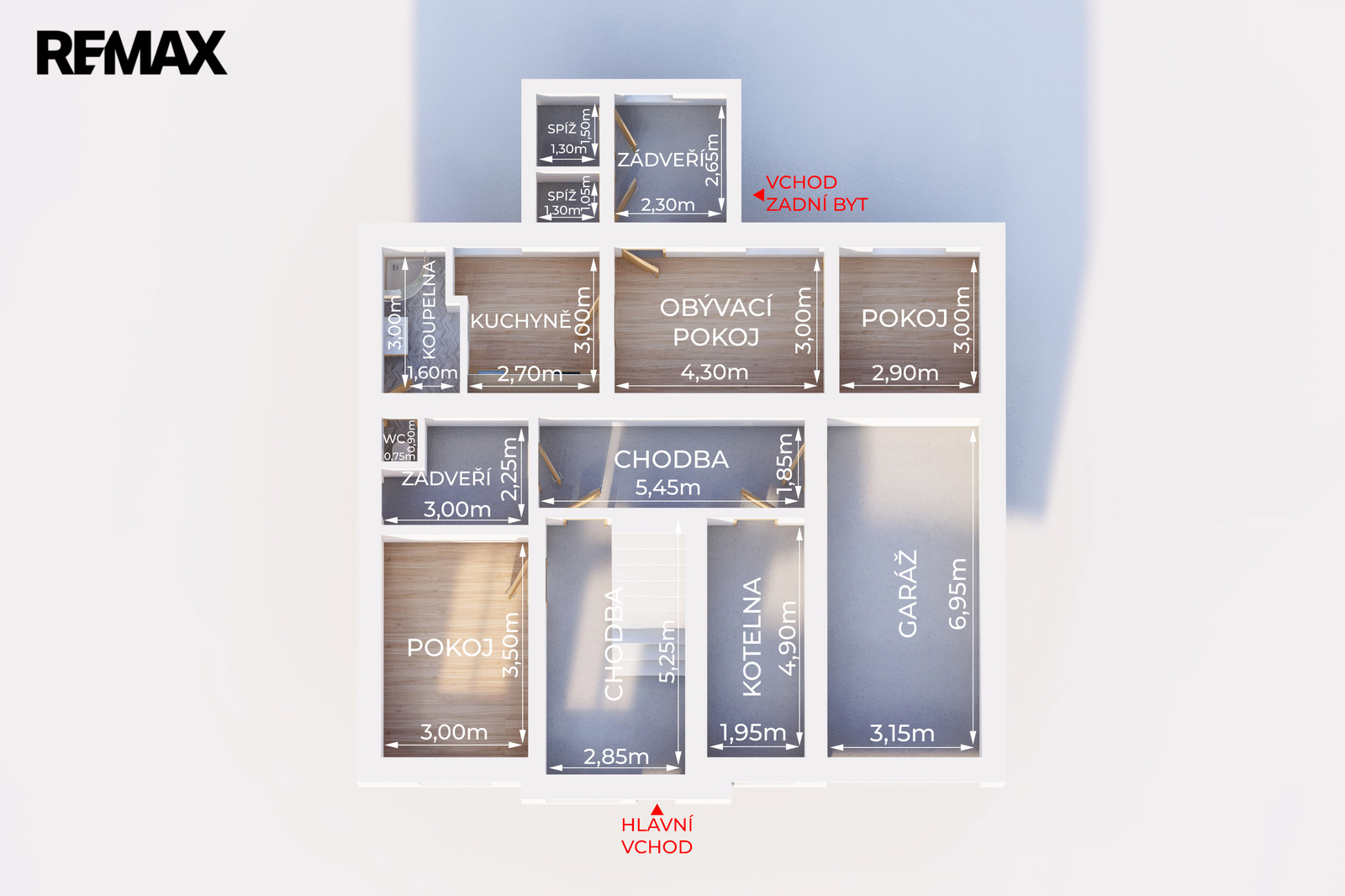 Celková užitná plocha domu je 248 m² (bez balkonu a půdního prostoru). Součástí je také garáž, samostatná bytová jednotka a půda s dalším potenciálem.