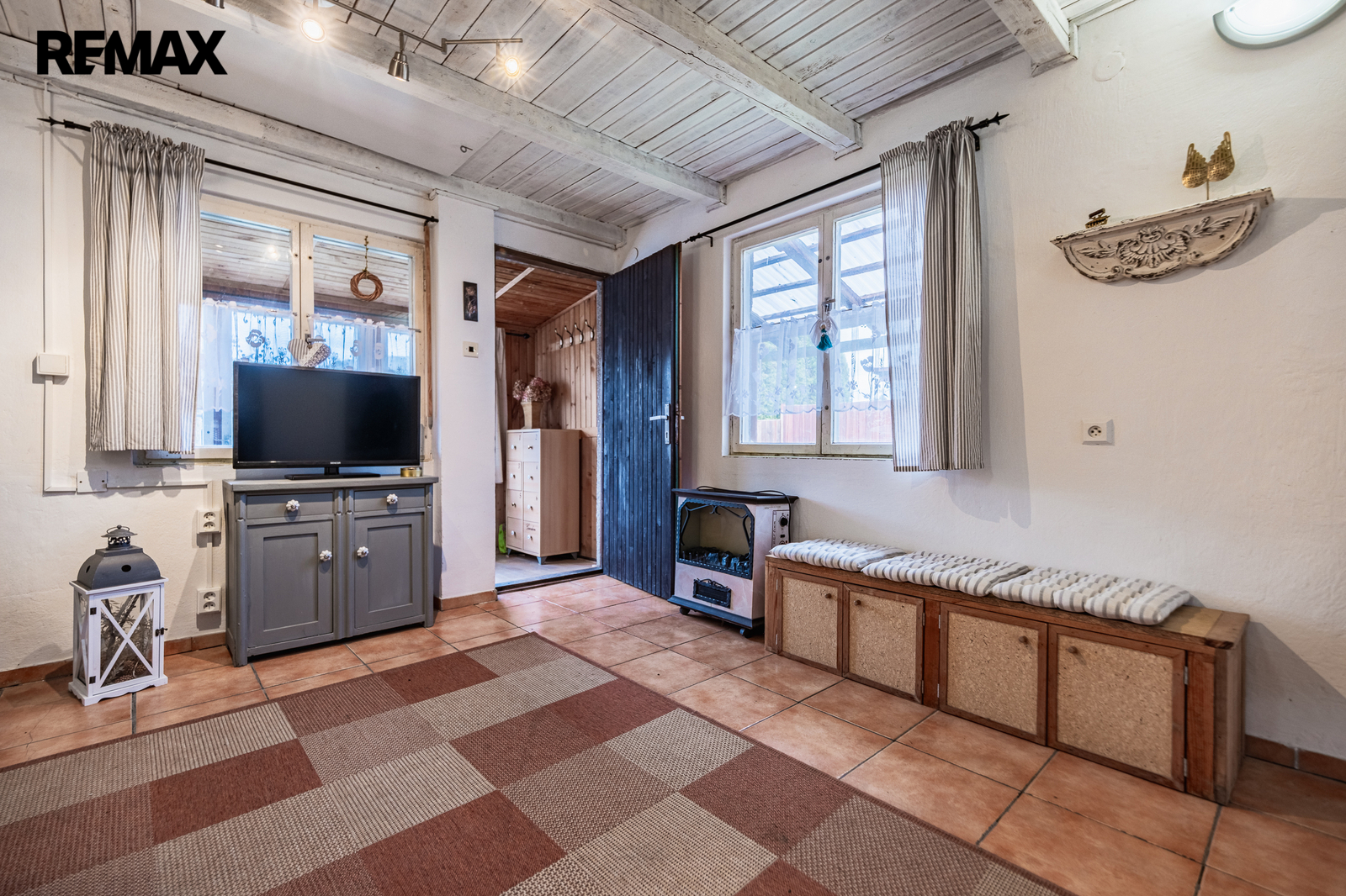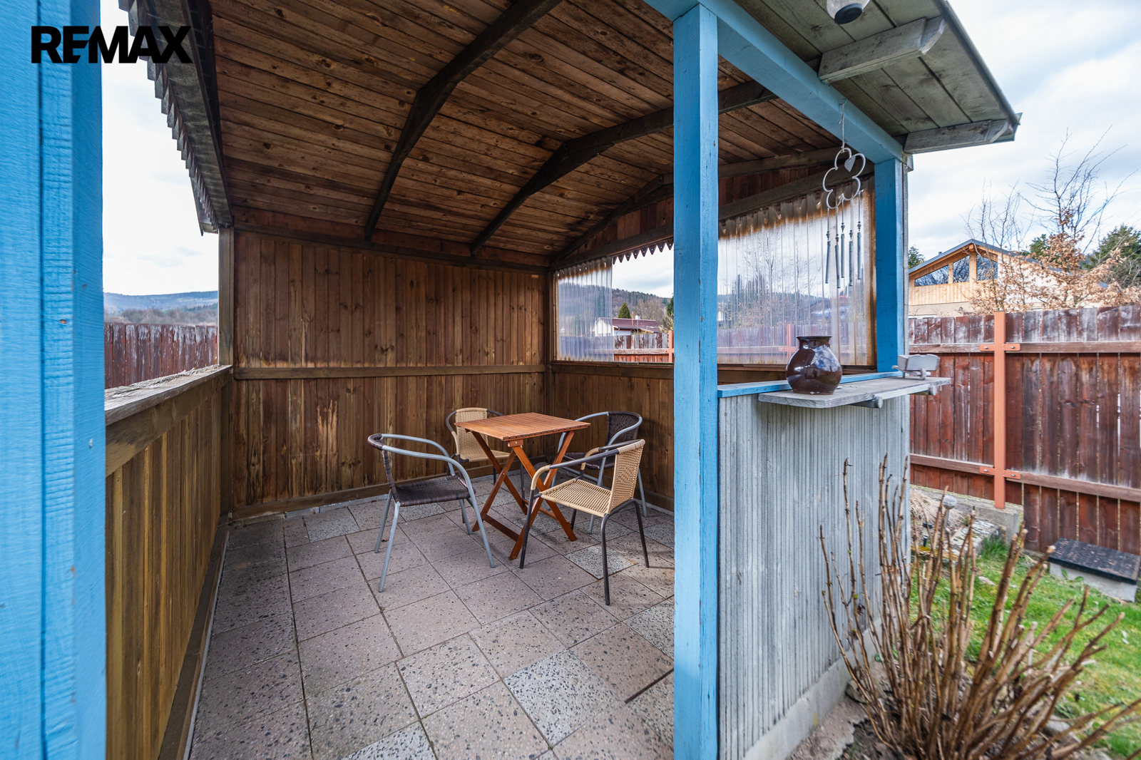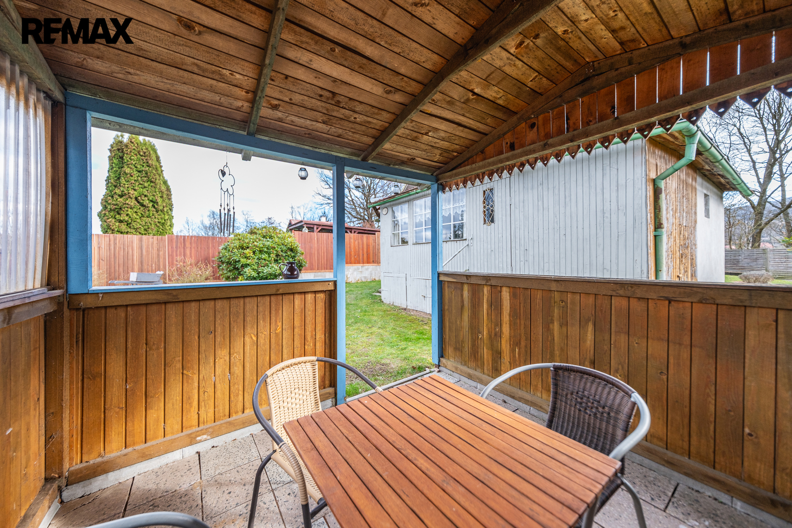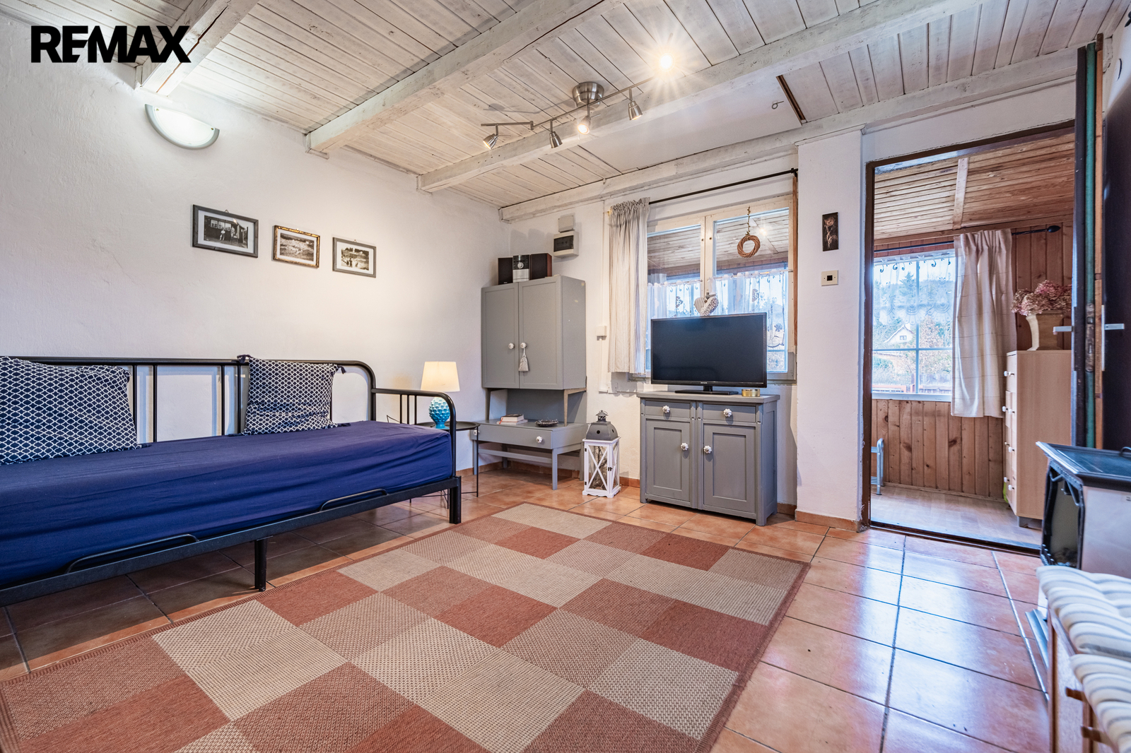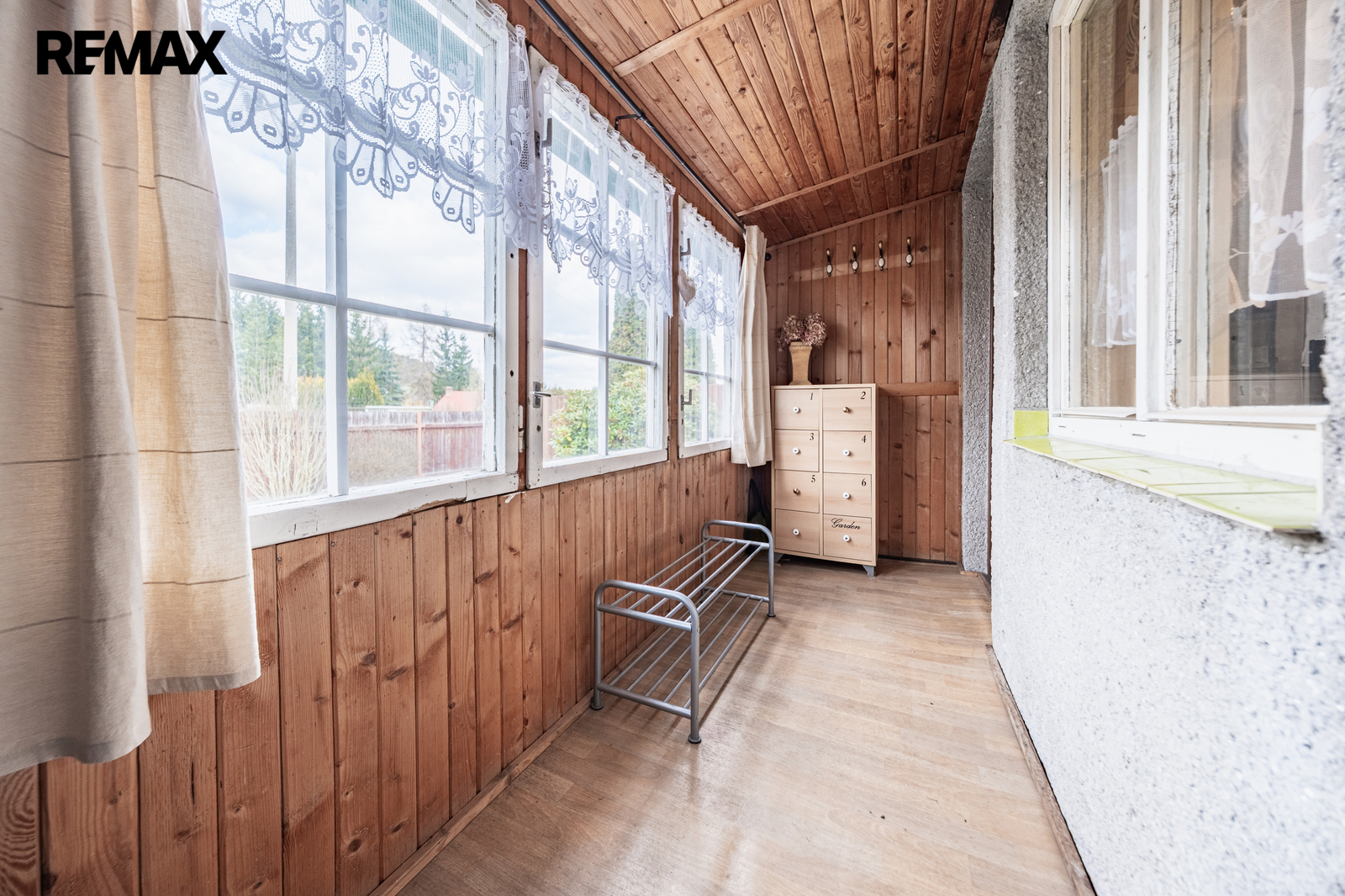 • přízemí: kuchyně, obývací pokoj, koupelna s WC a sprchovým koutem, dřevěná veranda (v kuchyni a koupelně průtokové ohřívače)