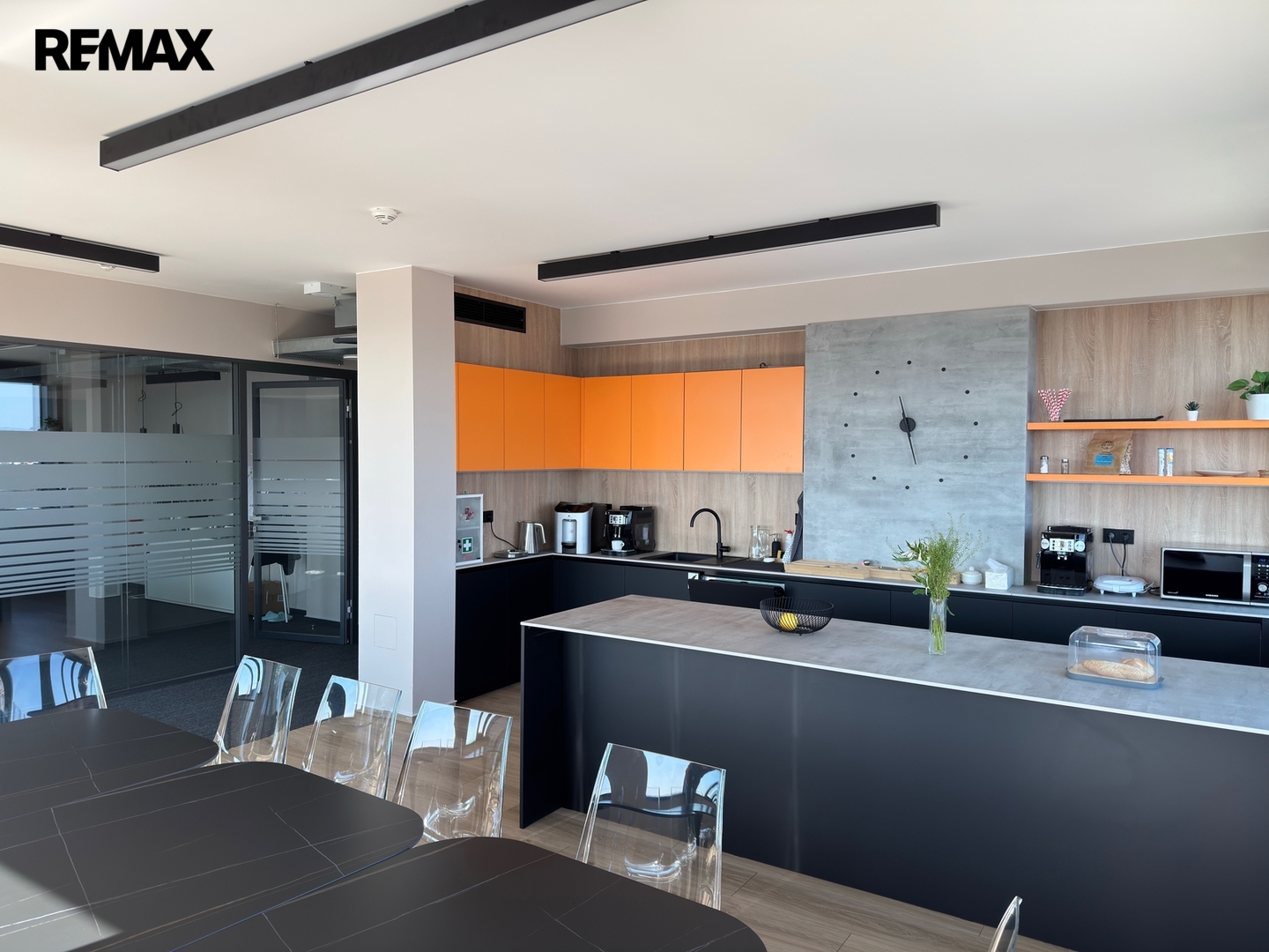 Kancelářská plocha činí 142,81 m². K dispozici jsou také sdílené prostory: