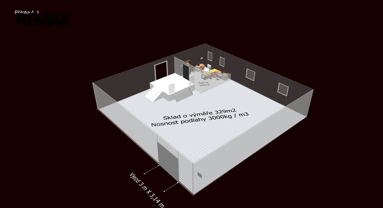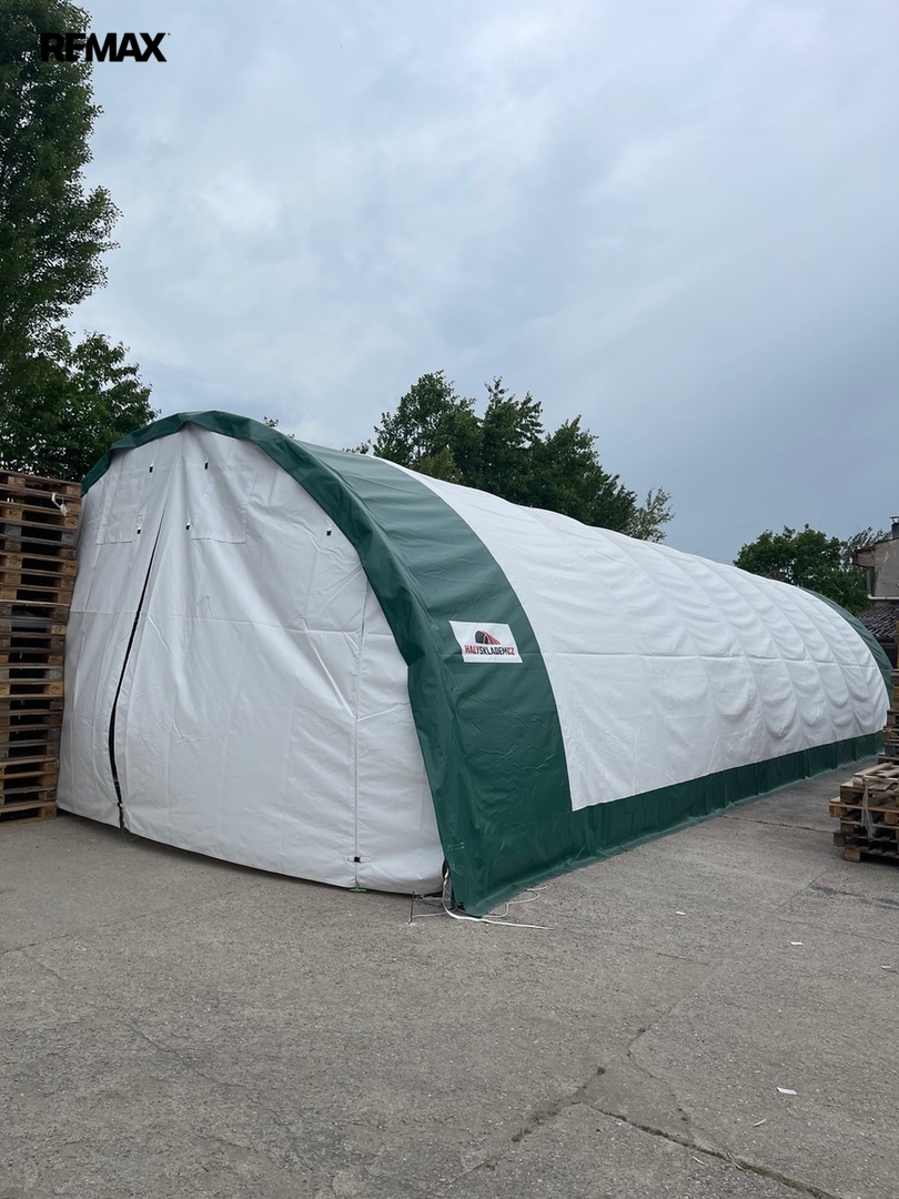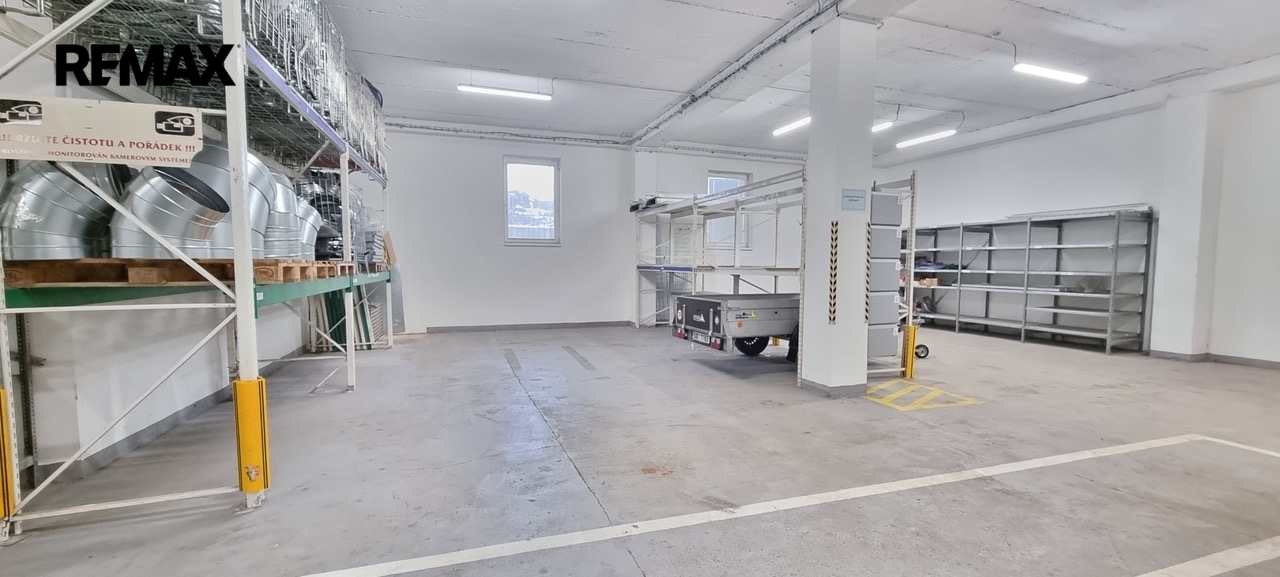 Sklad včetně kanceláře a haly je v uzavřeném areálu, kde jsou další budovy se zavedenými firmy a objekty. Sklad je opatřen kamerovým systémem a alarmem. Budova, kde se nachází hala s kanceláří momentálně prochází rozsáhlou rekonstrukcí a právě se připravuje nová fasáda včetně zateplení. Venkovní oblouková plachtová hala má rozměry 6,1x13,8x 3,6 m (š x d x v). Dále je možné využívat přilehlé venkovní prostory.