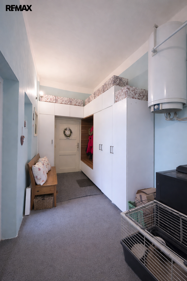 Byt je vytápěn novým kotlem na tuhá paliva, ohřev vody zajišťuje elektrický bojler. Komfort bydlení doplňují nová kastlová okna, která respektují původní styl domu.