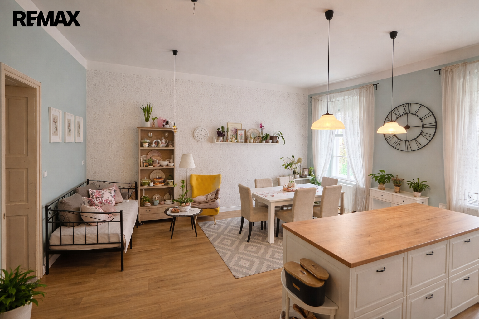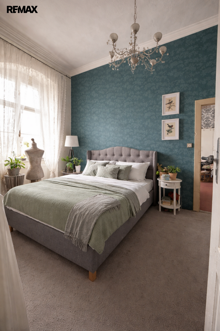 Tento byt zaujme na první pohled svými vysokými stropy a autentickými prvky, které podtrhují jeho původní secesní charakter. Dispozice bytu je praktická a nabízí dostatek prostoru pro rodinné bydlení i kombinaci s pracovním zázemím.