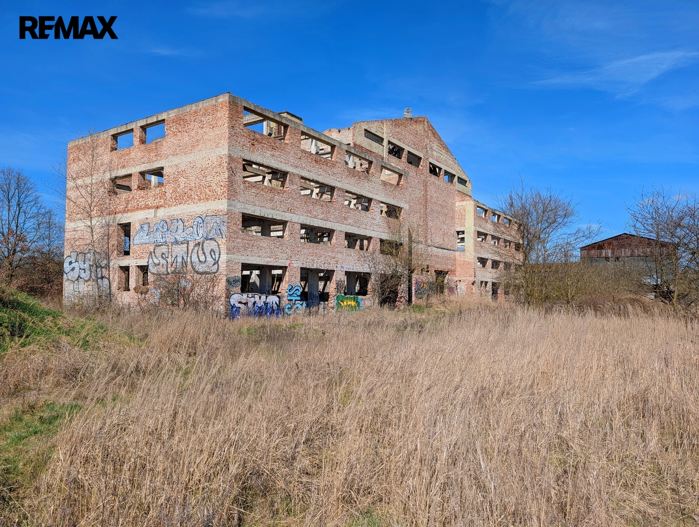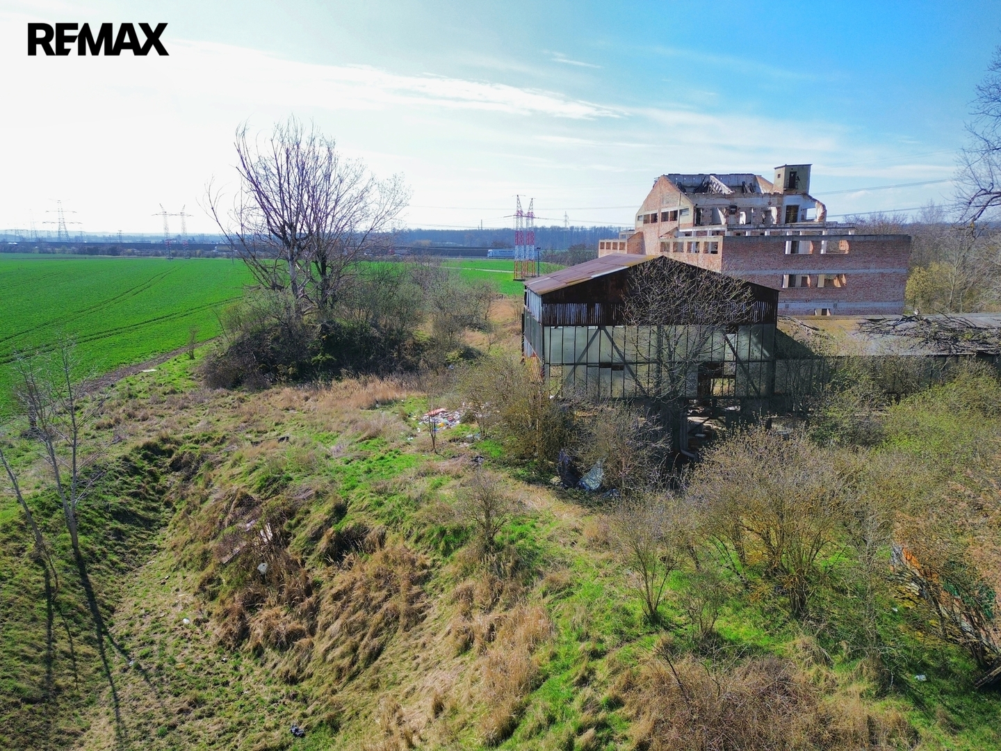 Dominantou areálu je pětipodlažní budova bývalé sušárny chmele o zastavěné ploše cca 800 m². Na objektu již proběhly částečné demoliční práce dle původního projektu a je připraven k rekonstrukci či kompletní demolici.