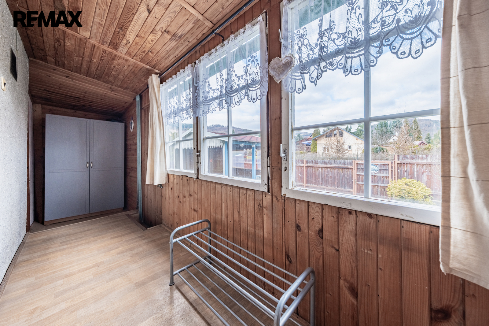 • přízemí: kuchyně, obývací pokoj, koupelna s WC a sprchovým koutem, dřevěná veranda (v kuchyni a koupelně průtokové ohřívače)