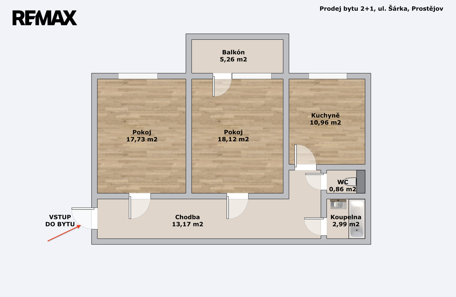 • Dispozice: 2+1 s neprůchozími pokoji a velkou chodbou.