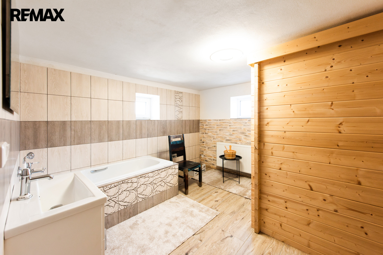 Dům je navíc z části podsklepen s plochou suterénních prostor 50 m2. Tyto sklepní prostory rovněž prošly kompletní důkladnou rekonstrukcí a umožňují tak více než jen skladovací a technické využití. Prostory tvoří společenská místnost, samostatný pokoj, prostorná koupelna / prádelna se saunou, technická místnost.