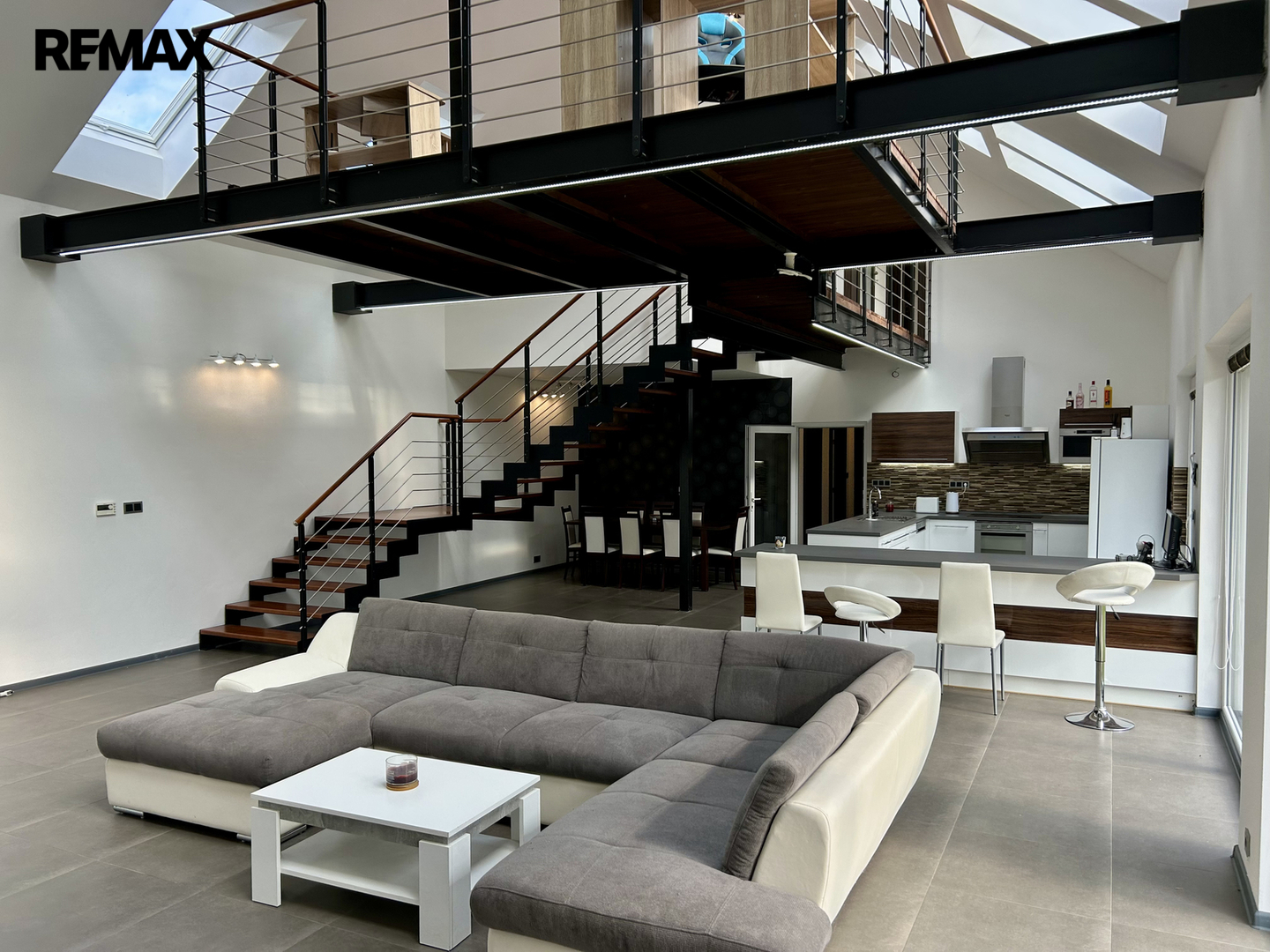 Nabízíme k pronájmu moderní rodinný dům s originálním architektonickým řešením, který přirozeně zapadá do okolní krajiny. Dům o užitné ploše přibližně 200 m² zaujme především svou vzdušností, otevřeným prostorem a dostatkem denního světla.