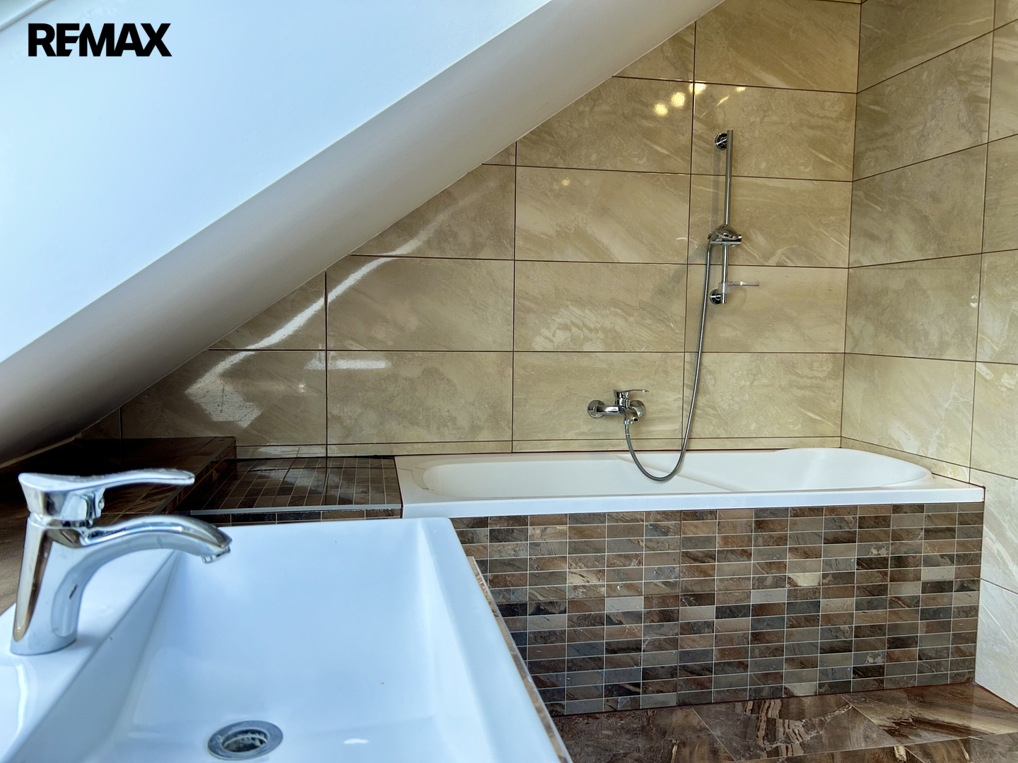Dům je velmi dobře prosvětlený díky střešním oknům a komfort během letních měsíců zajišťují venkovní rolety v kombinaci s klimatizací. Ze spodní ložnice je přímý vstup na zahradu, kde můžete relaxovat na terase nebo na udržovaném trávníku s automatickou závlahou.