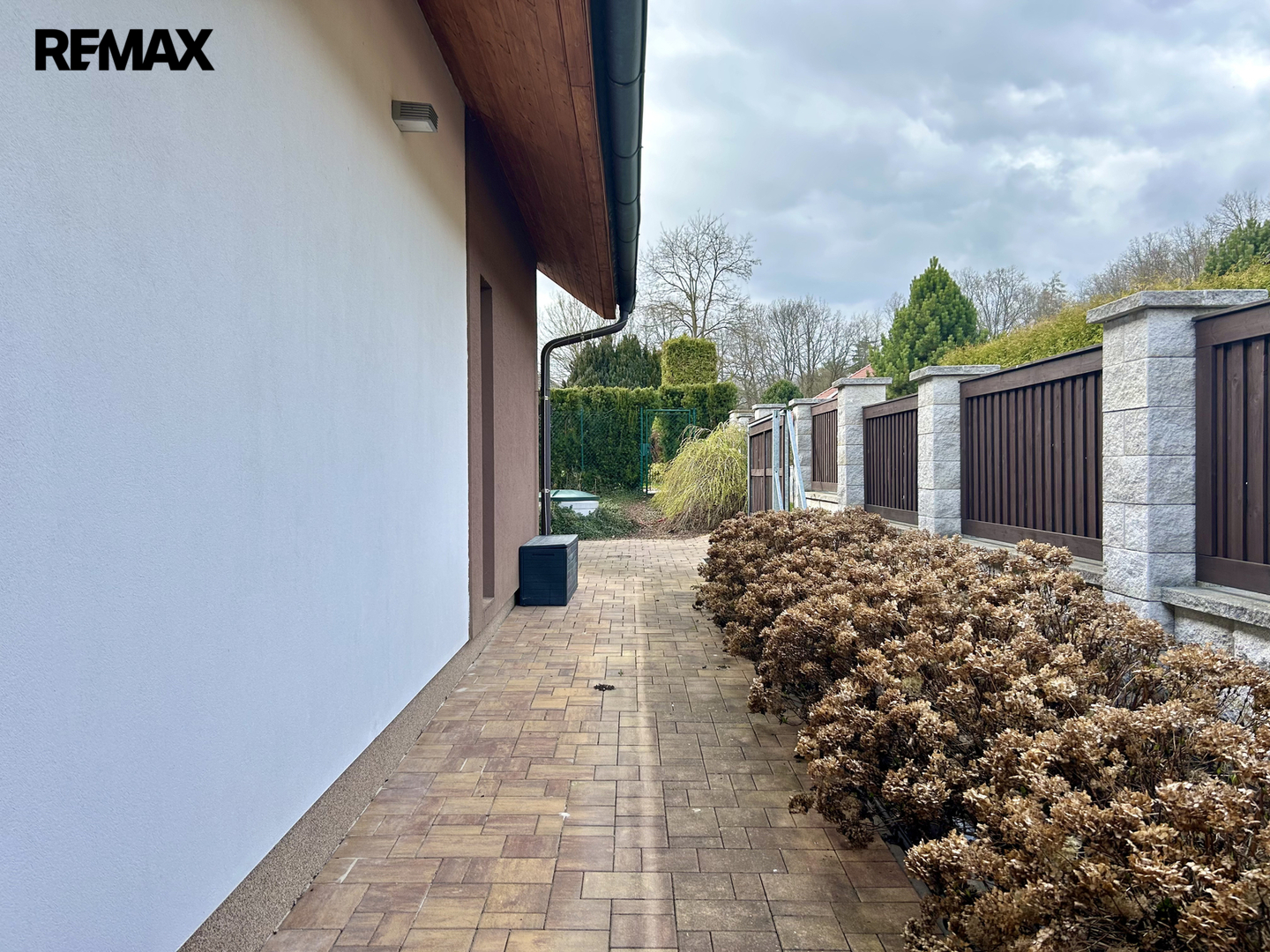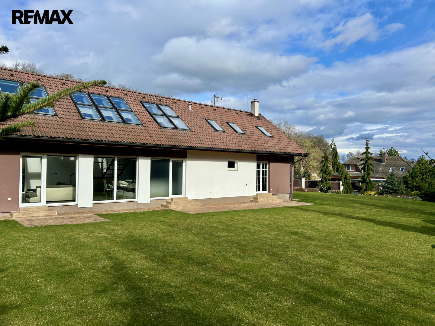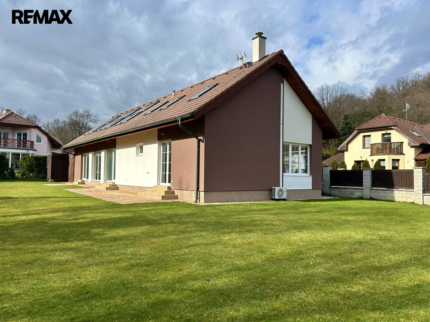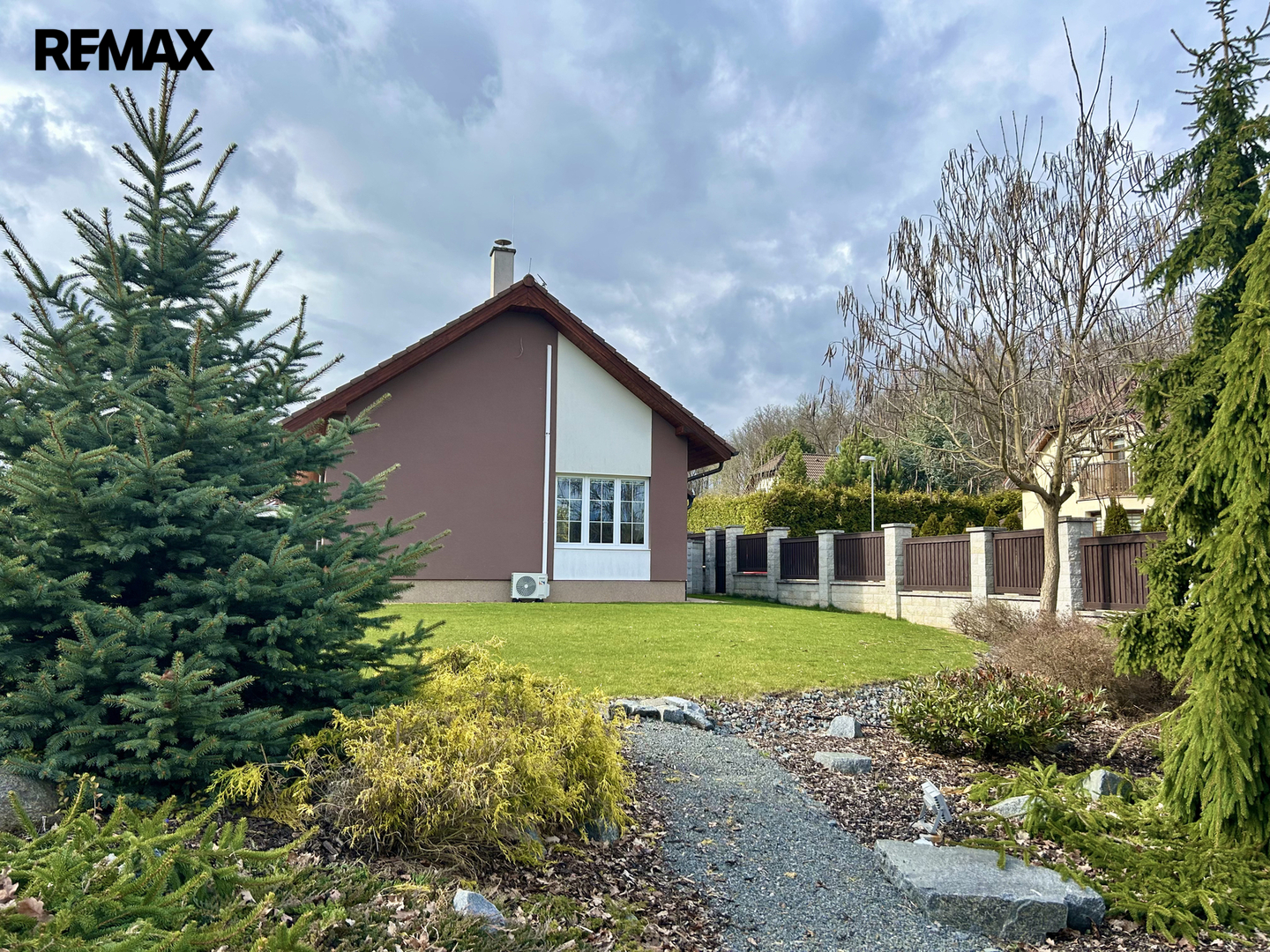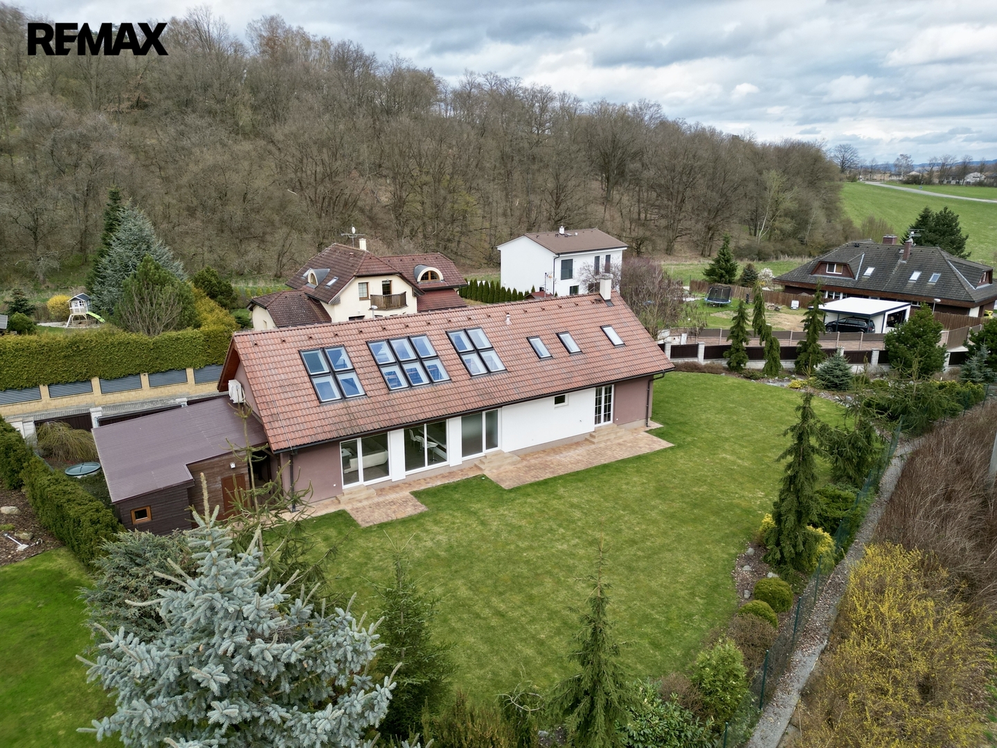 K domu náleží slunný, rovinatý pozemek o velikosti 1 241 m², situovaný v klidné slepé ulici. Velkou výhodou je dostatek soukromí a nerušené výhledy do okolní zeleně bez přímého kontaktu se sousedy.
