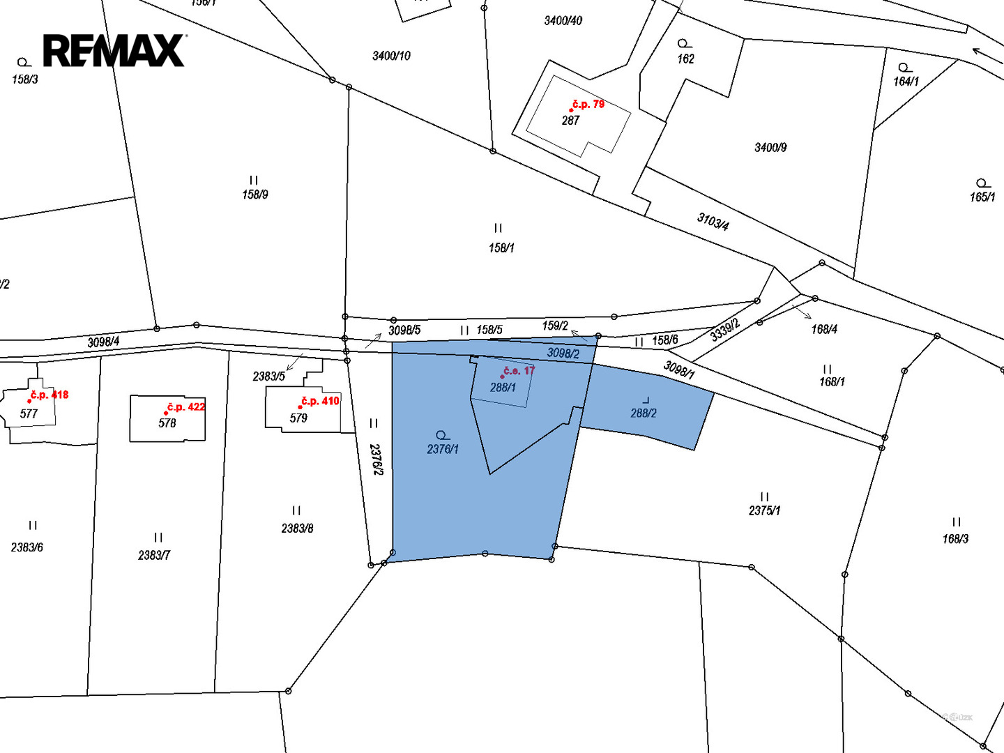 • Komfort na dosah: Na pozemku je malý vrt na užitkovou vodu. Elektřina 220/380 V je zavedena přímo do objektu, hlavní jistič a měřák v průčelí budovy. Obecní vodovod a kanalizace se nacházejí v místní komunikaci pouhých 35 metrů od hranice pozemku.