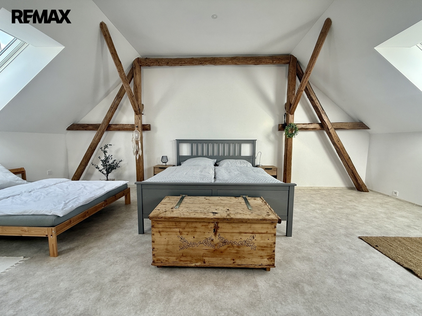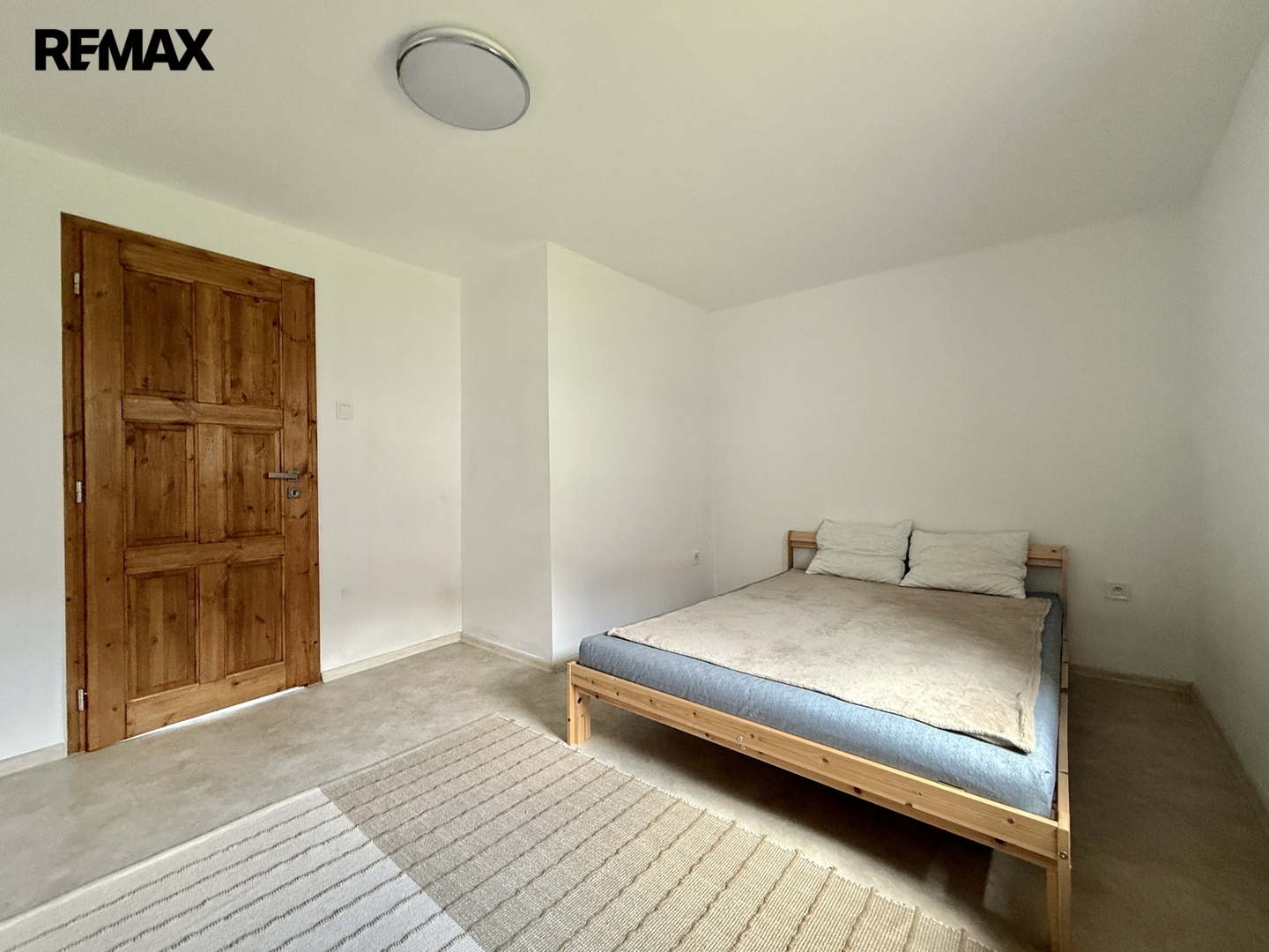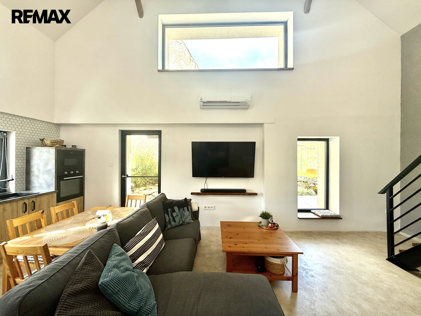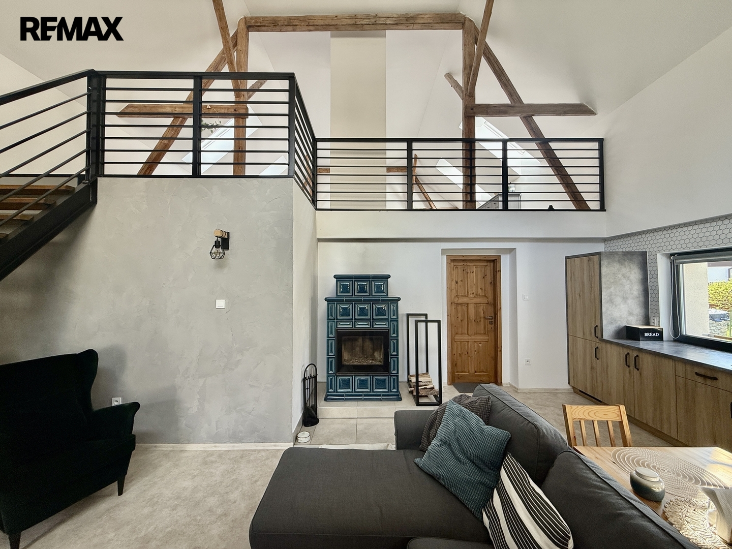 Součástí je také garáž (stodola), která nabízí variabilní využití – ať už pro parkování, uskladnění dřeva nebo jako dílna.