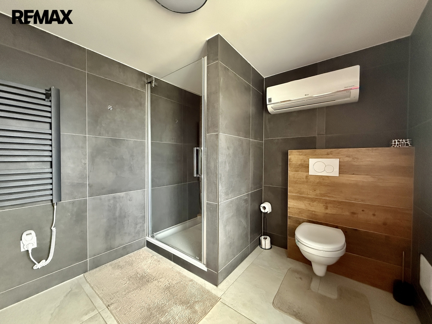 Dále se z chodby dostanete do dětského pokoje, hostinského pokoje a koupelny se sprchovým koutem a WC.