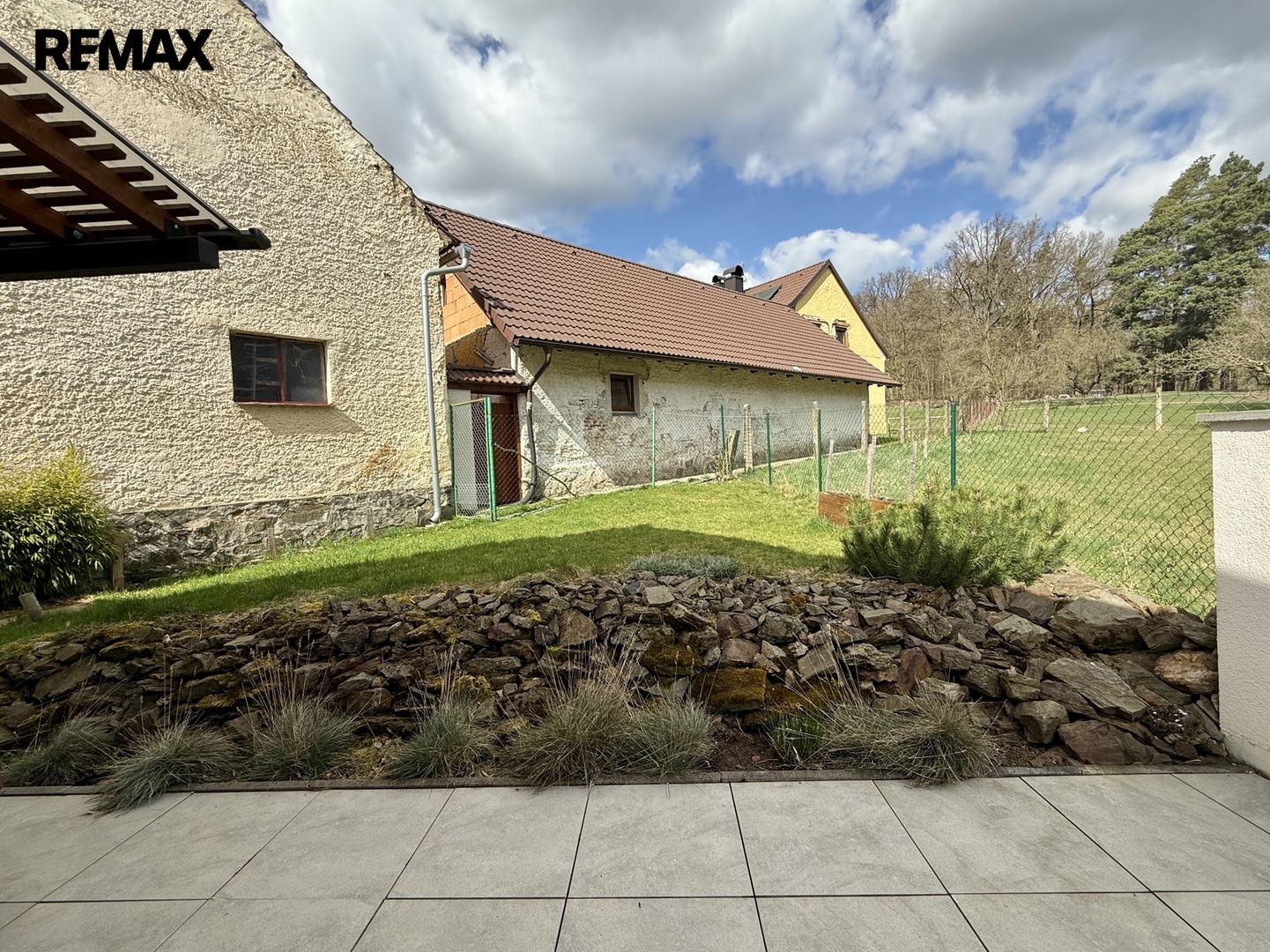 Za domem se nachází příjemné posezení s pojízdným krbem, ideální pro letní večery s rodinou či přáteli. Menší zahrádka je jak před domem, tak i za domem, což poskytuje dostatek prostoru pro odpočinek i drobné zahradničení.