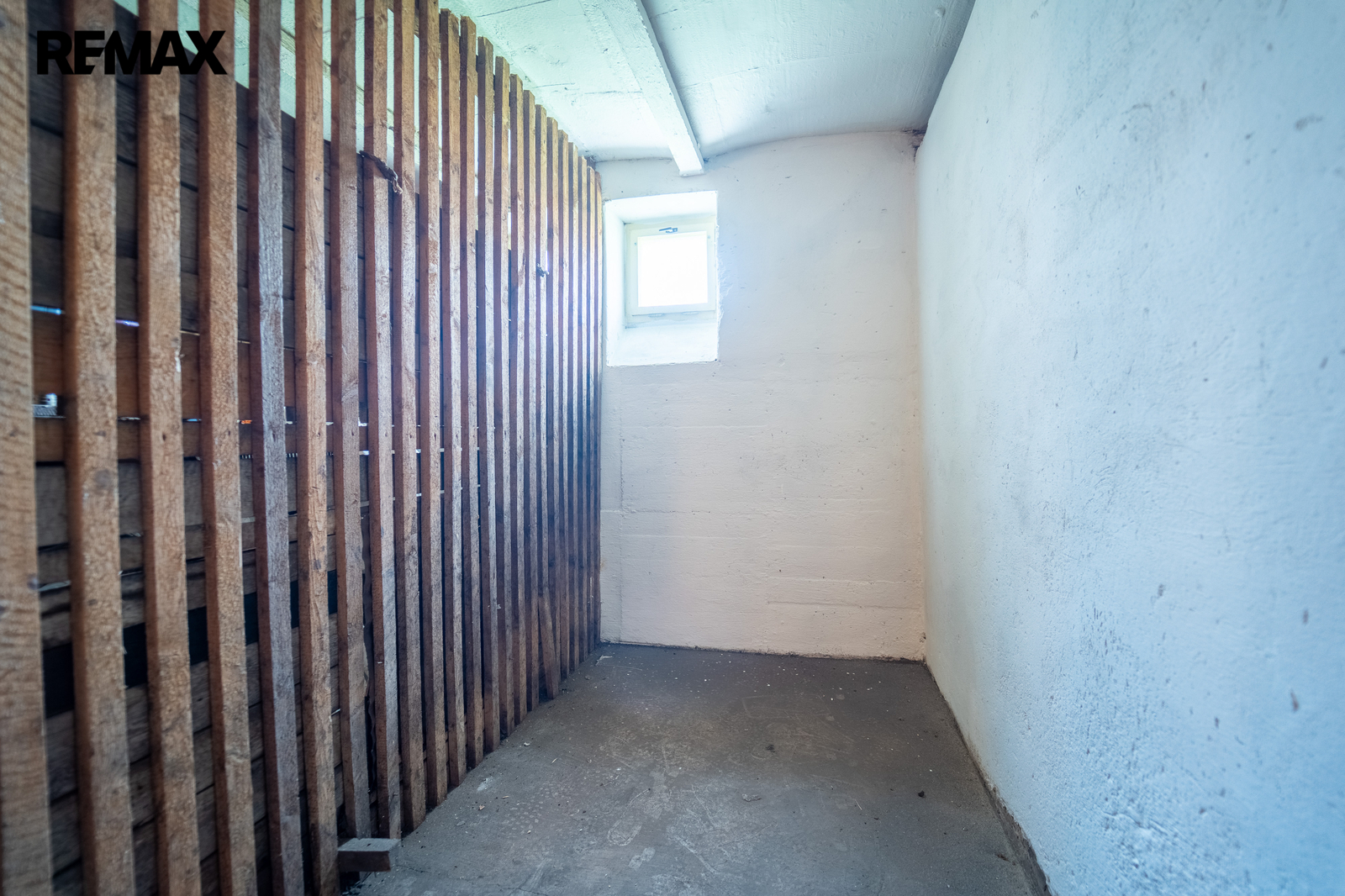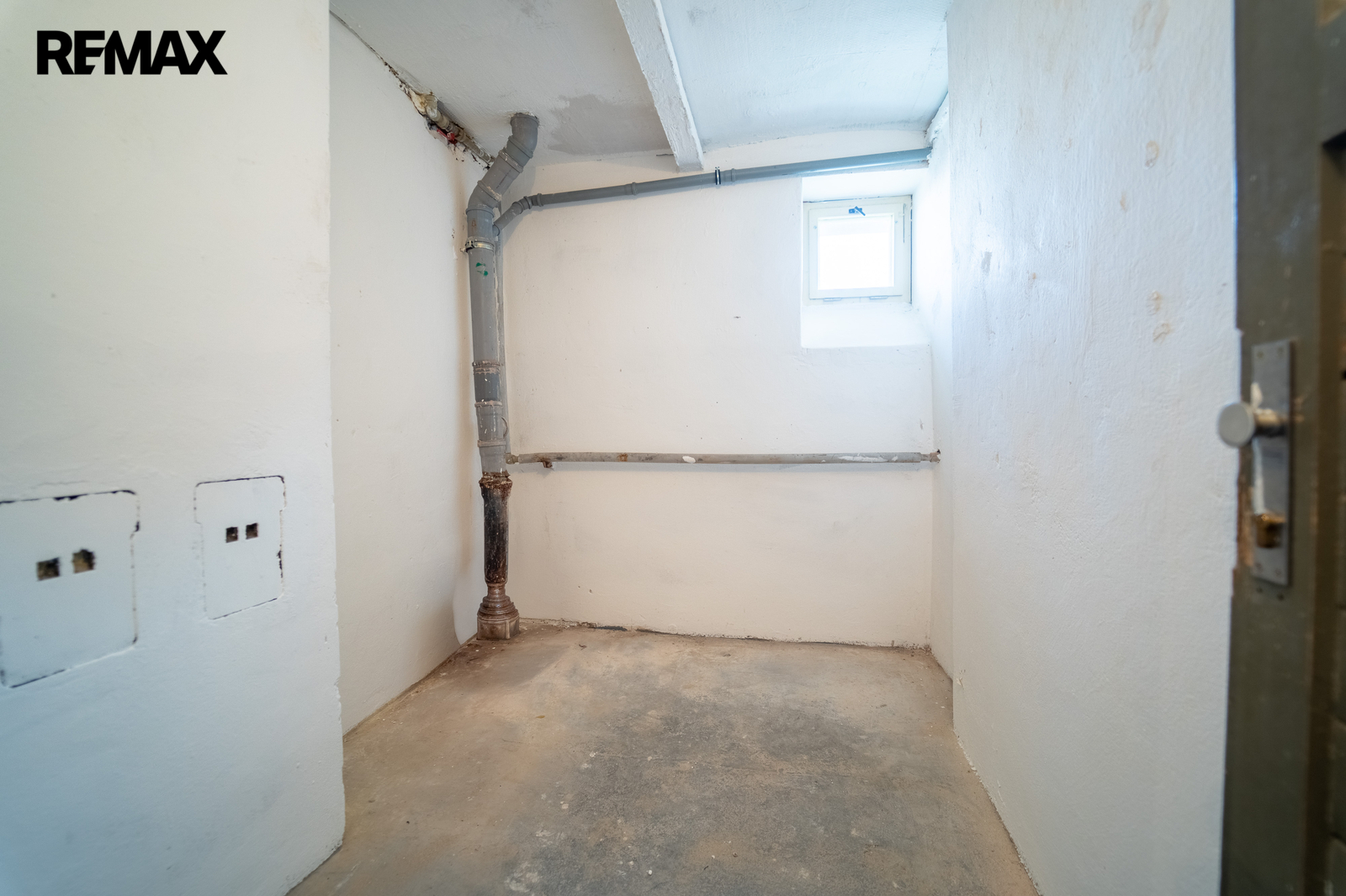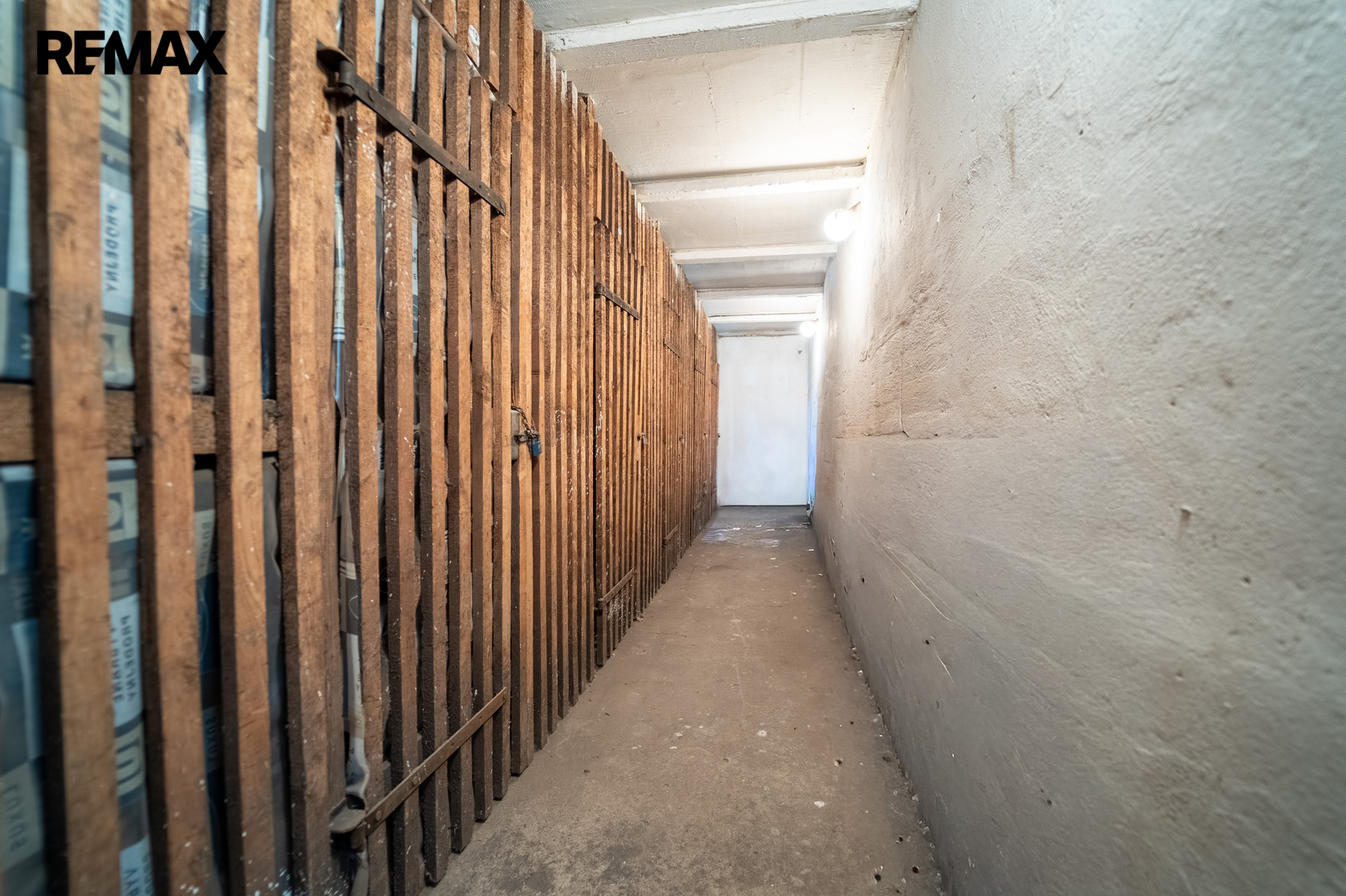 K bytu náleží dva sklepy. Jeden sklep je svou plochou započítán v prohlášení vlastníka a je ve výhradním užívání k bytové jednotce. Druhý sklep představuje původní sklad dřeva a uhlí; nachází se ve společných částech domu, avšak slouží k této jednotce. V suterénu domu jsou dále k dispozici společné prostory, například kolárna, sušárna a další zázemí. Výměry uvádíme dle prohlášení vlastníka, přičemž skutečný stav bytu odpovídá i o něco větší užitné ploše. Součástí inzerce je také odkaz na virtuální prohlídku a orientační půdorys bytu, takže si dispozici i stav nemovitosti můžete detailně projít ještě před osobní prohlídkou.