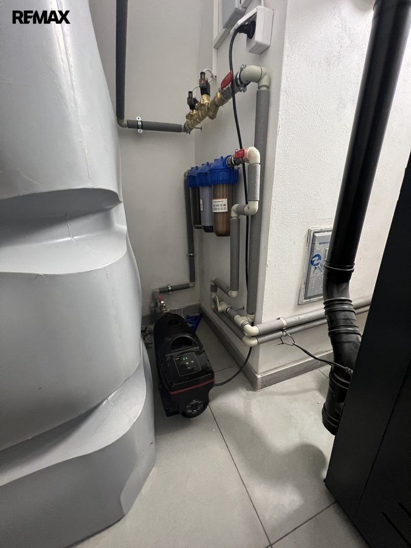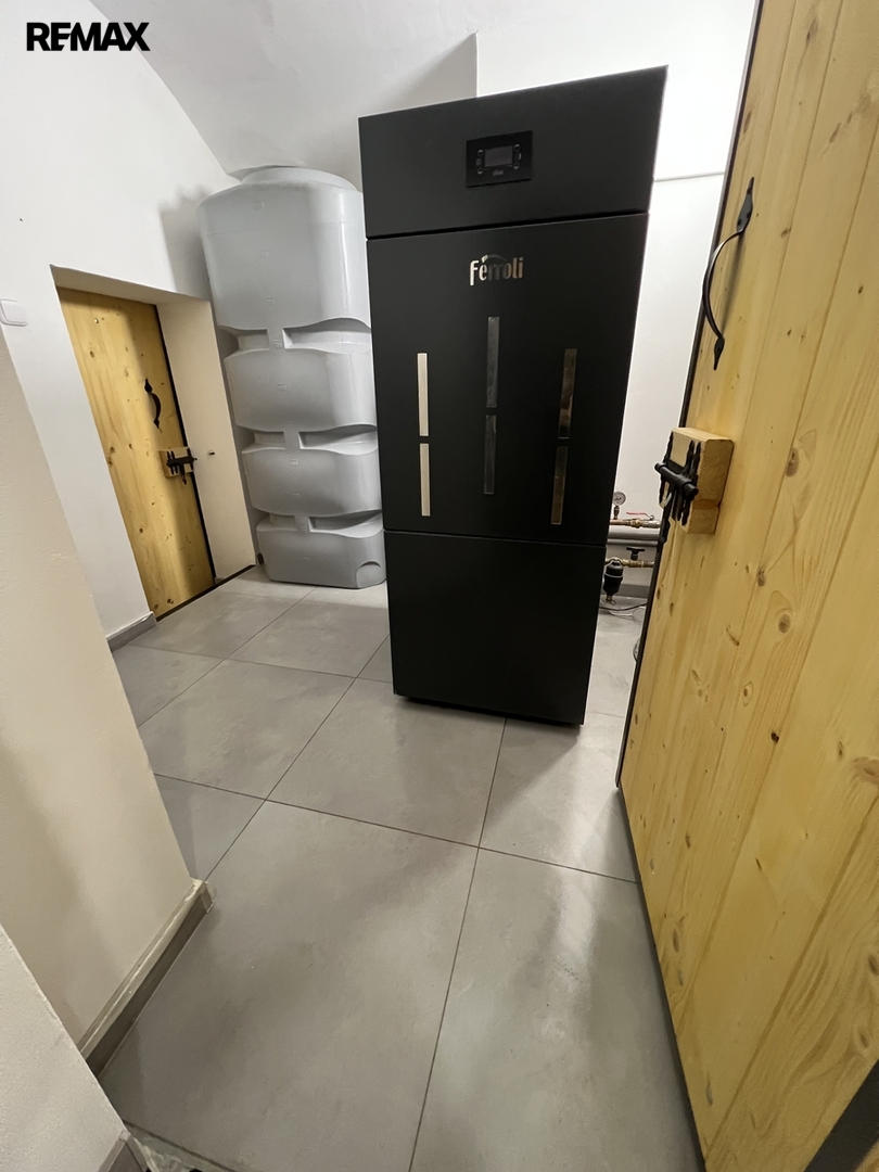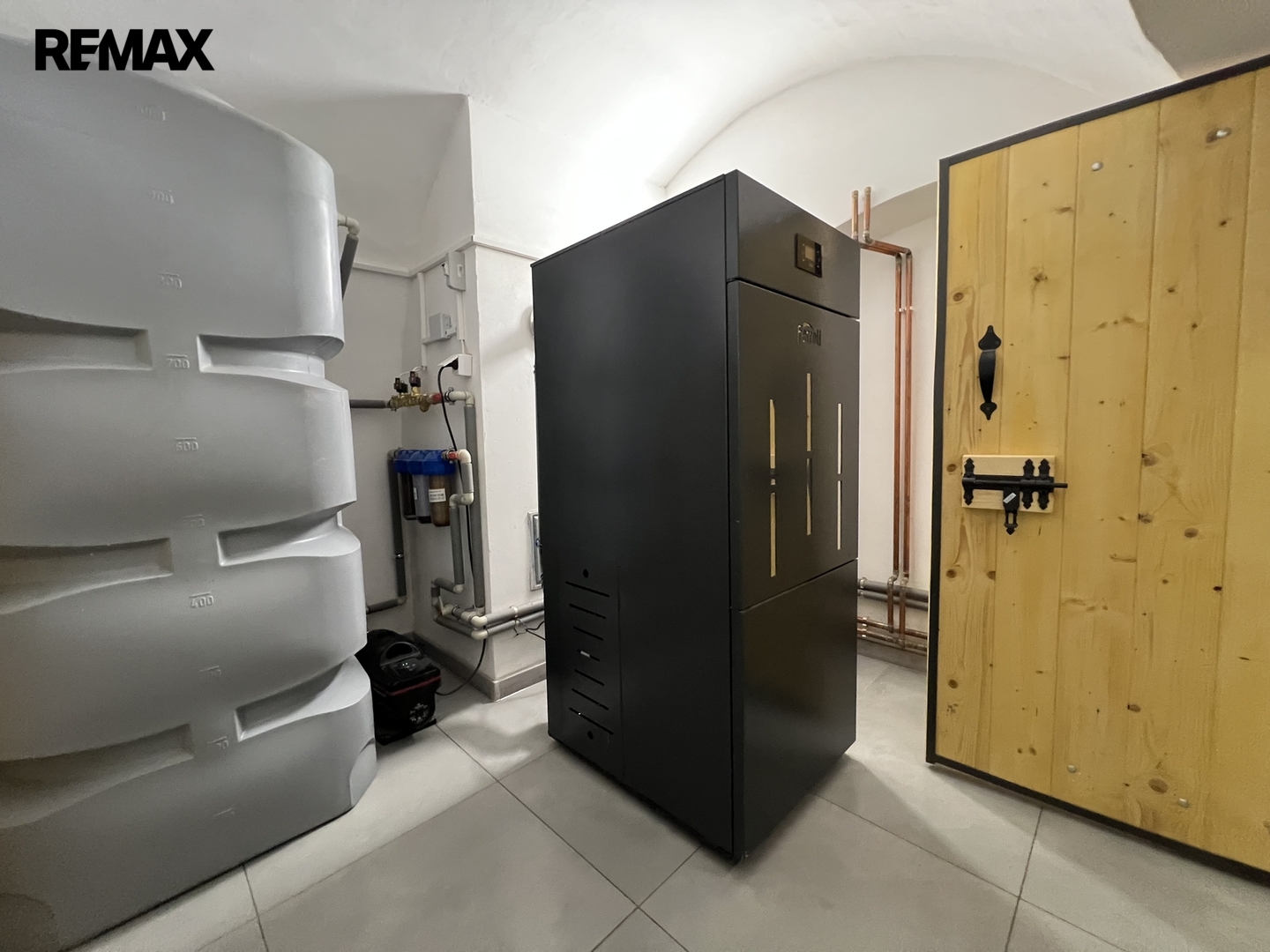 kotelna s domácí vodárnou (1 000 l) a skladem na pelety