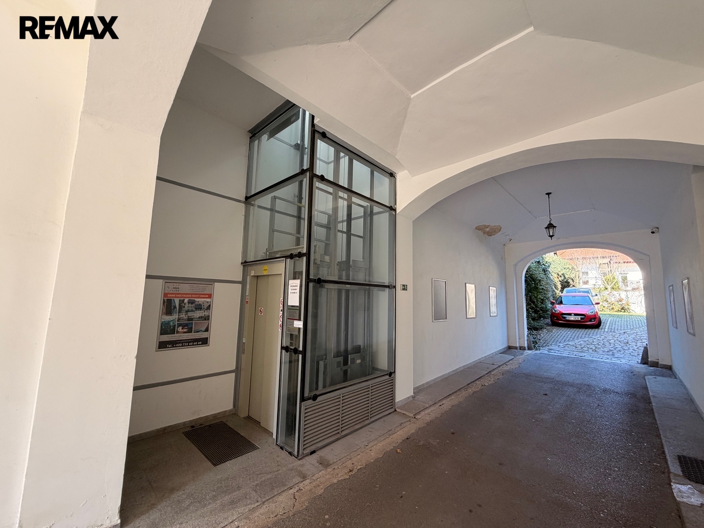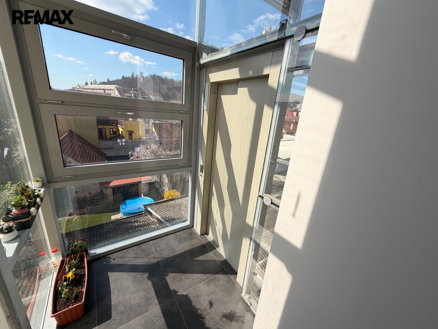 K bytu vede výtah, zároveň je možné použít též schodiště. Možno pronajmout i parkovací místo ve dvoře.