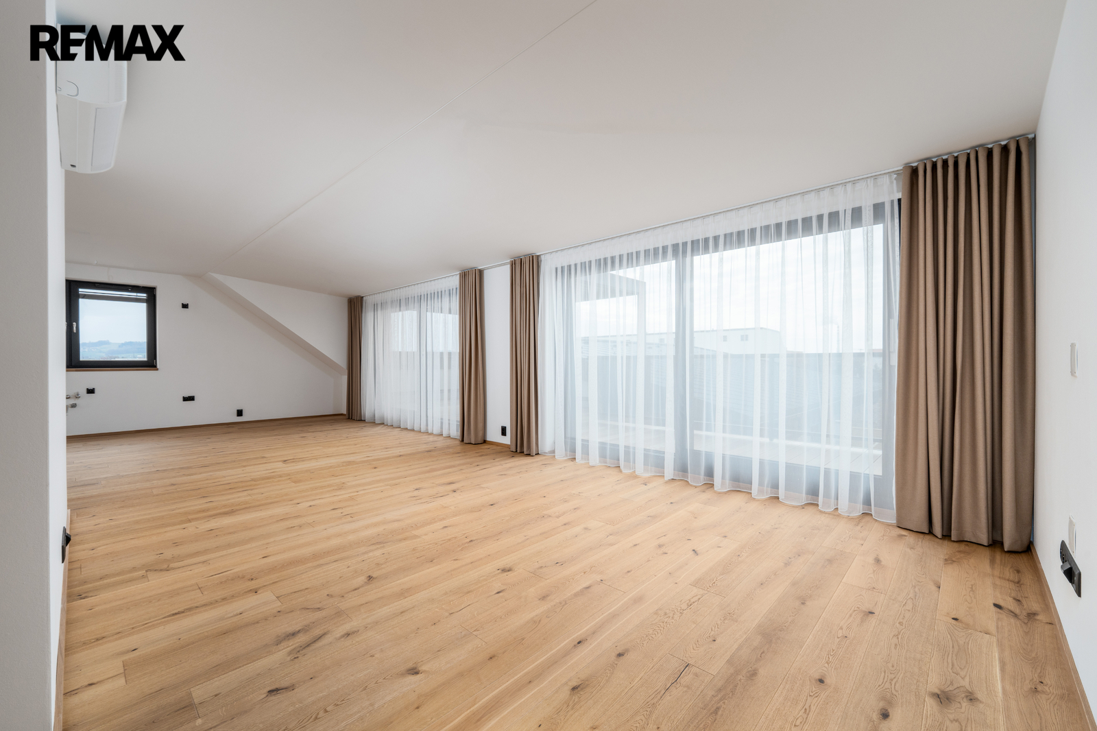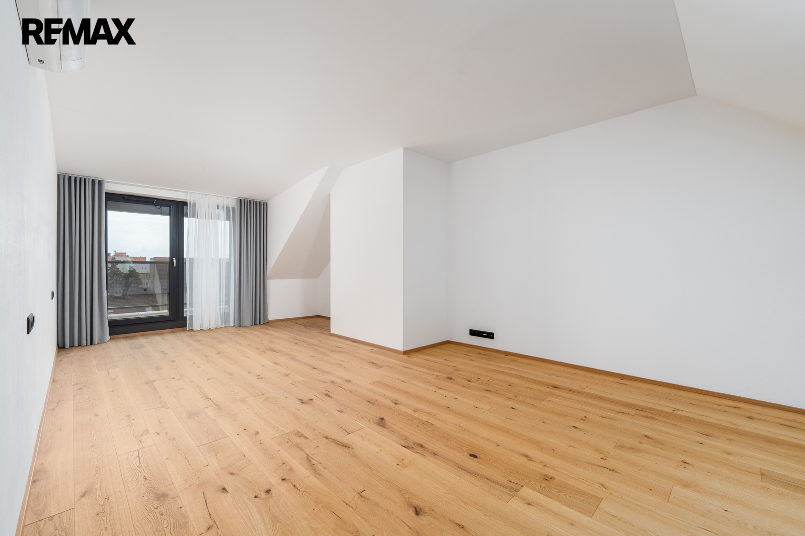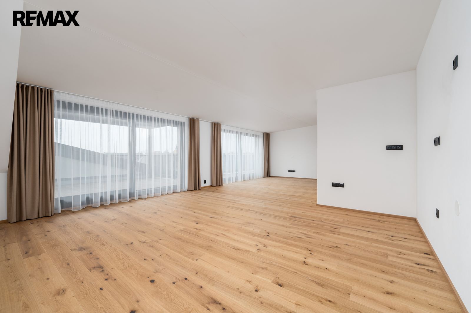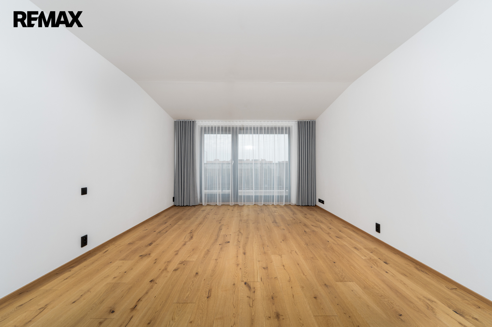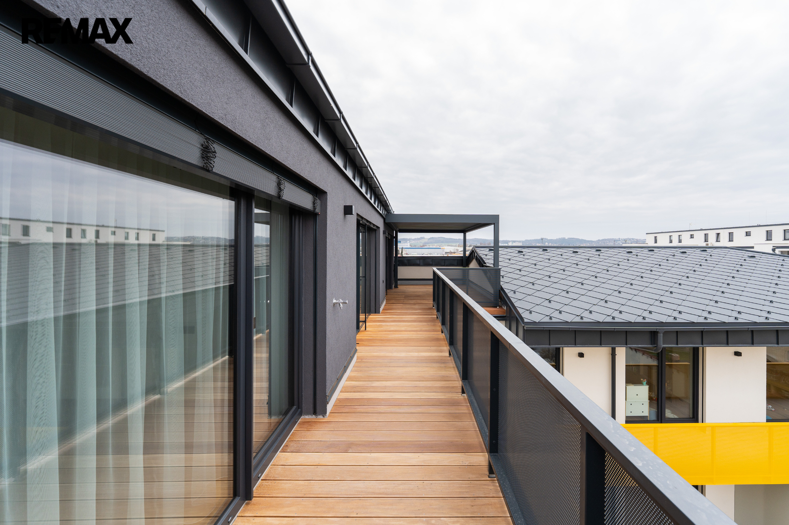 Byt se nachází po celé ploše posledního podlaží nového moderního domu, což zaručuje naprostý klid a soukromí – bez sousedů, bez kompromisů. Už samotný příchod napovídá, že se nejedná o běžné bydlení. Výtah Vás vyveze přímo do bytu, jehož dominantou je velkorysý obytný prostor o rozloze téměř 50 m².
